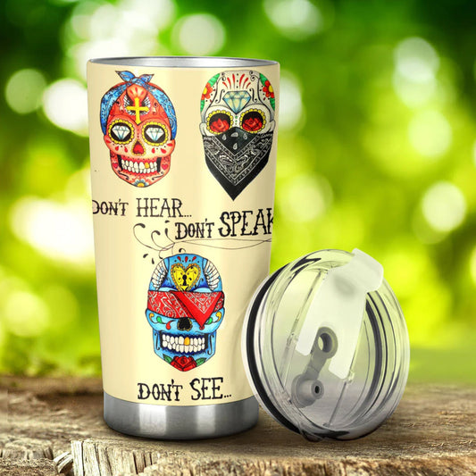 Sugar skull no see no hear no speak tumblr mug cup, Candy skull cup mug tumbler, Day of the dead calaveras skull Halloween mug cup tumbler