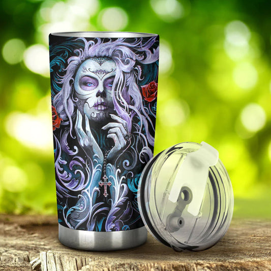 Day of the dead tumbler, sugar skull girl mug tumbler, Dia de los muertos skull tumbler mug cup, candy skull girl gothic mug cup tumblers