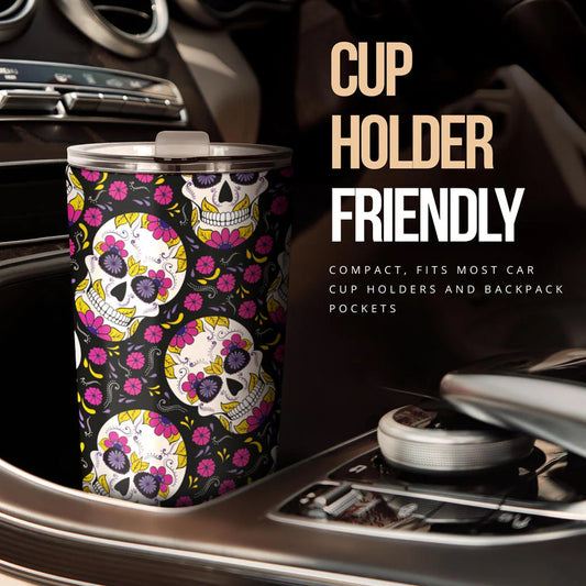 Sugar skull tumbler, Day of the dead cup mug tumbler, Candy skull tumbler, Mexican calaveras reaper tumbler mug cup, skeleton gothic mug cup