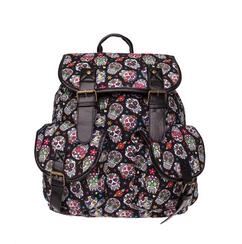 MEXICAN FLOWER SKULL Print leather backpack vintage backpack women