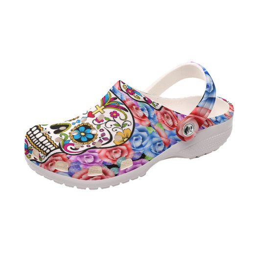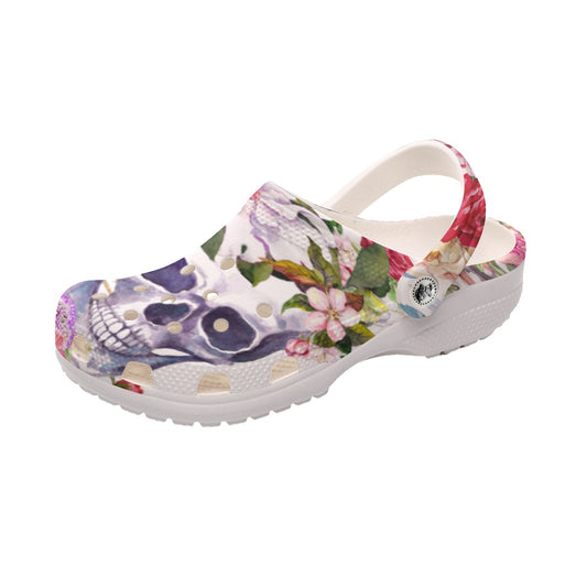 Beautiful rose skull floral skeleton Women's Classic Clogs