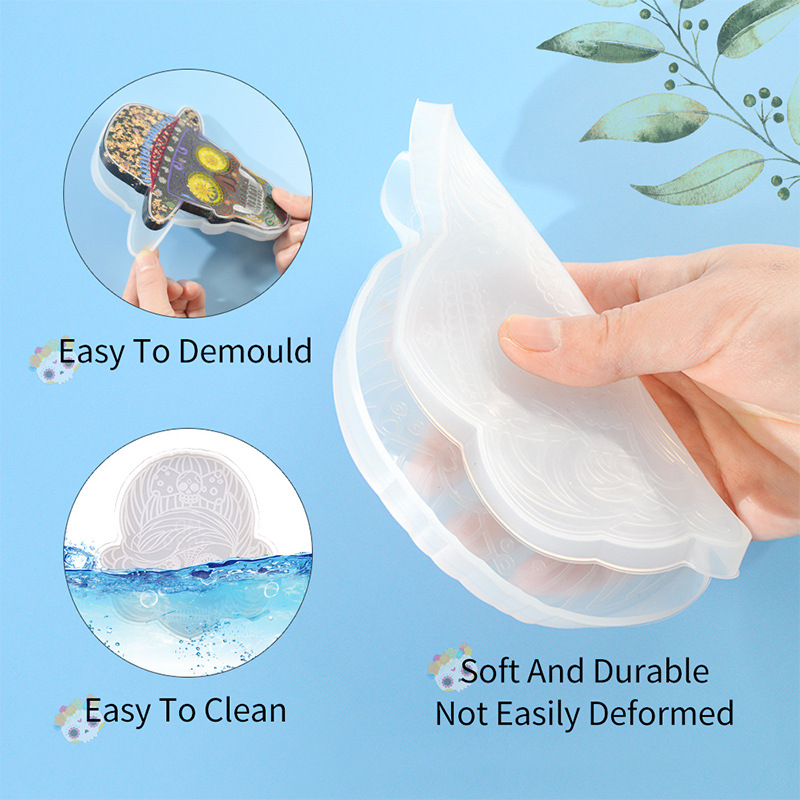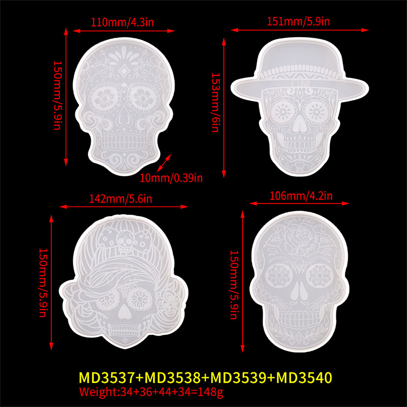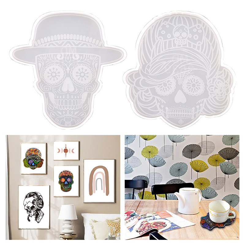 4Pcs/set DIY Skull Shaped Coaster Epoxy Resin Mold Tableware Wall Decor Silicone Mold