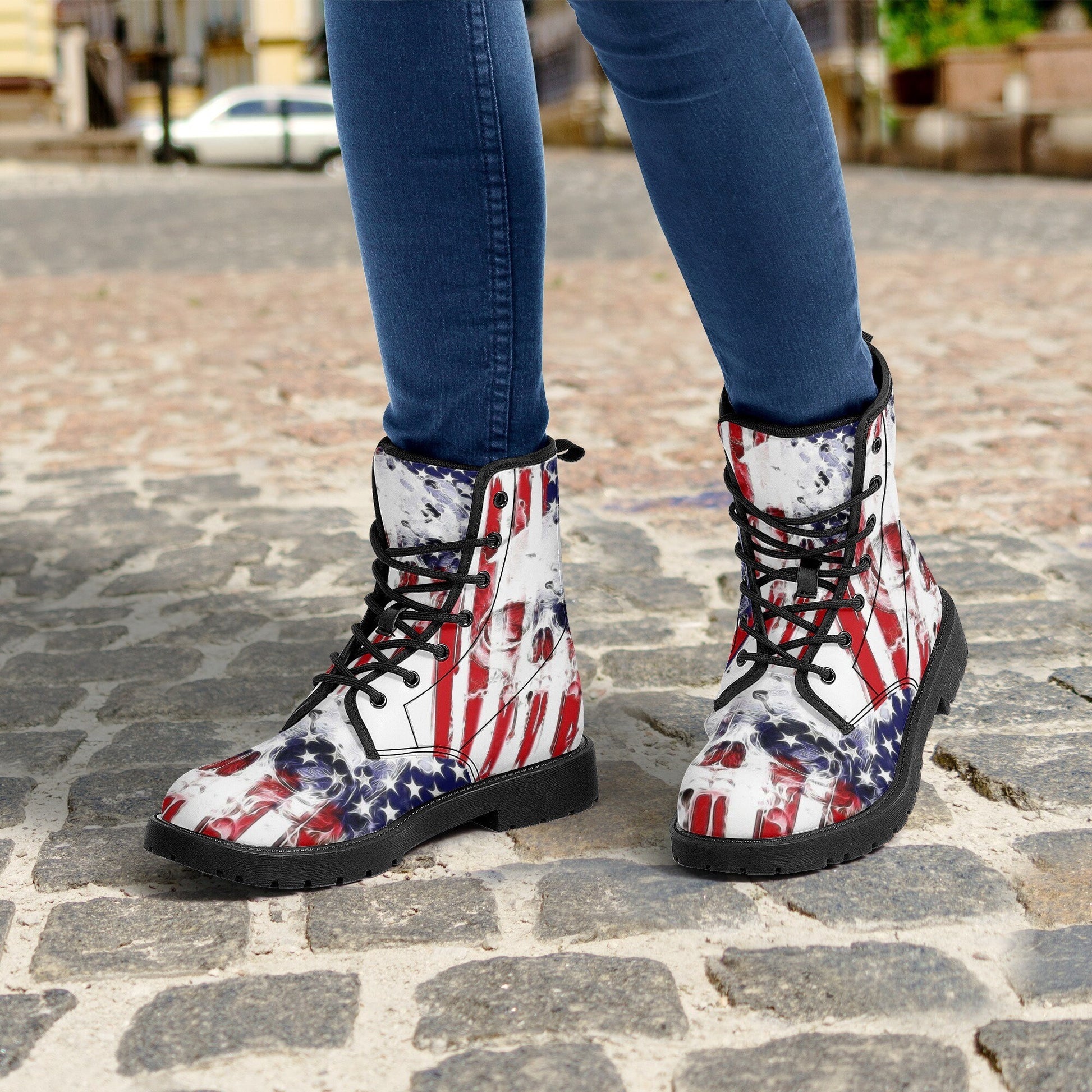 American flag skull leather boots men women, Halloween Skeleton skull boots Gothic boots Floral skull punisher leather boots shoes sneakers