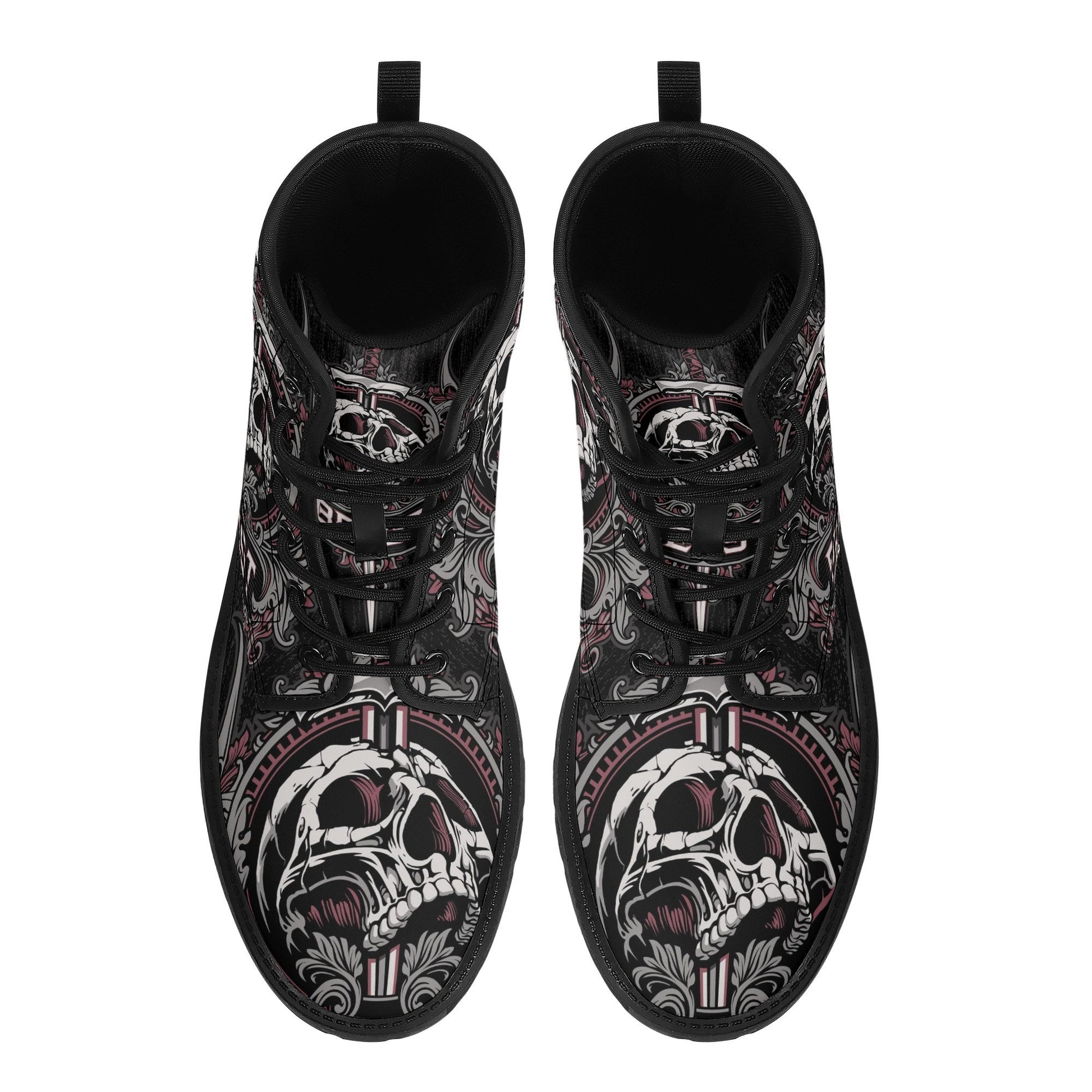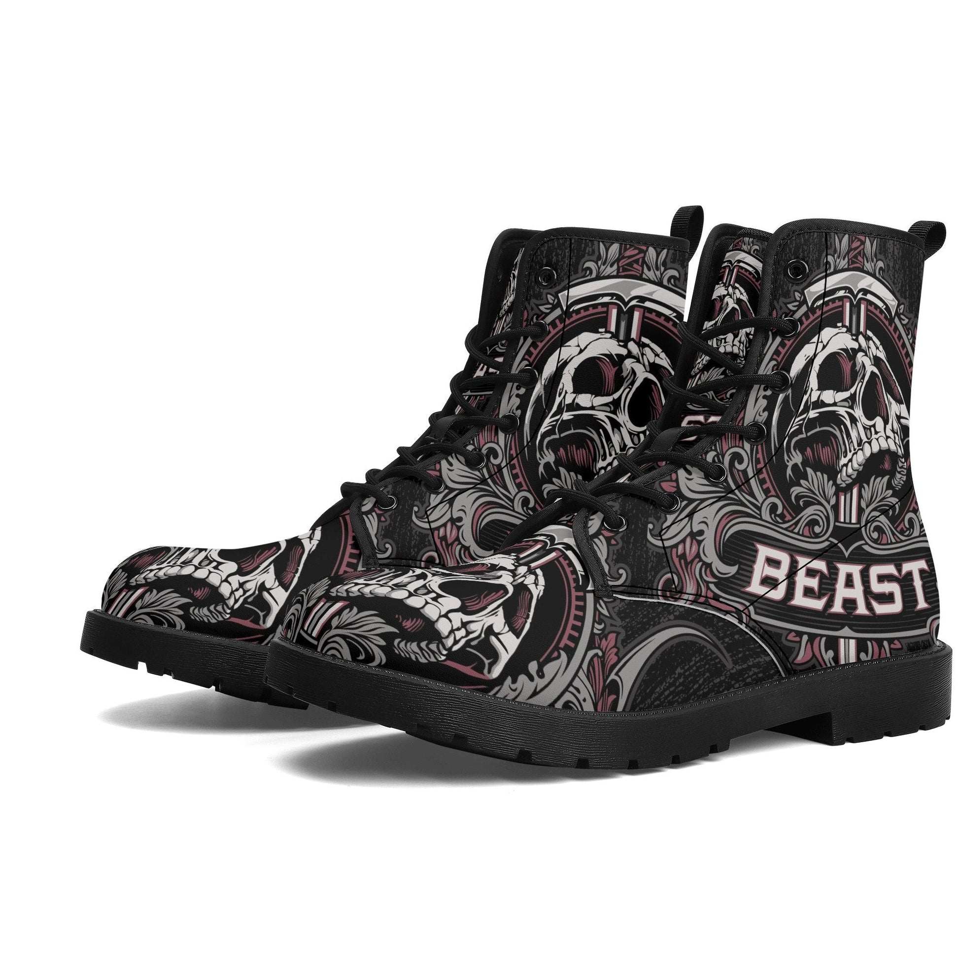 Beast skull leather boots, Skeleton skull boots for men, Grim reaper skull boots for men biker, skull boots horror skeleton men women boots