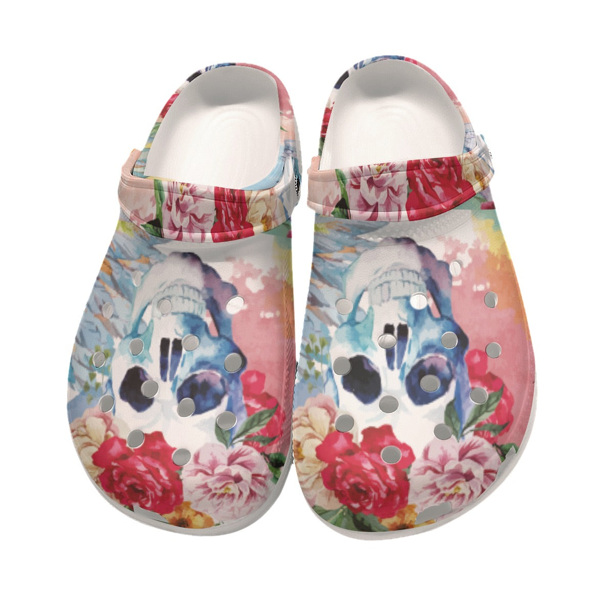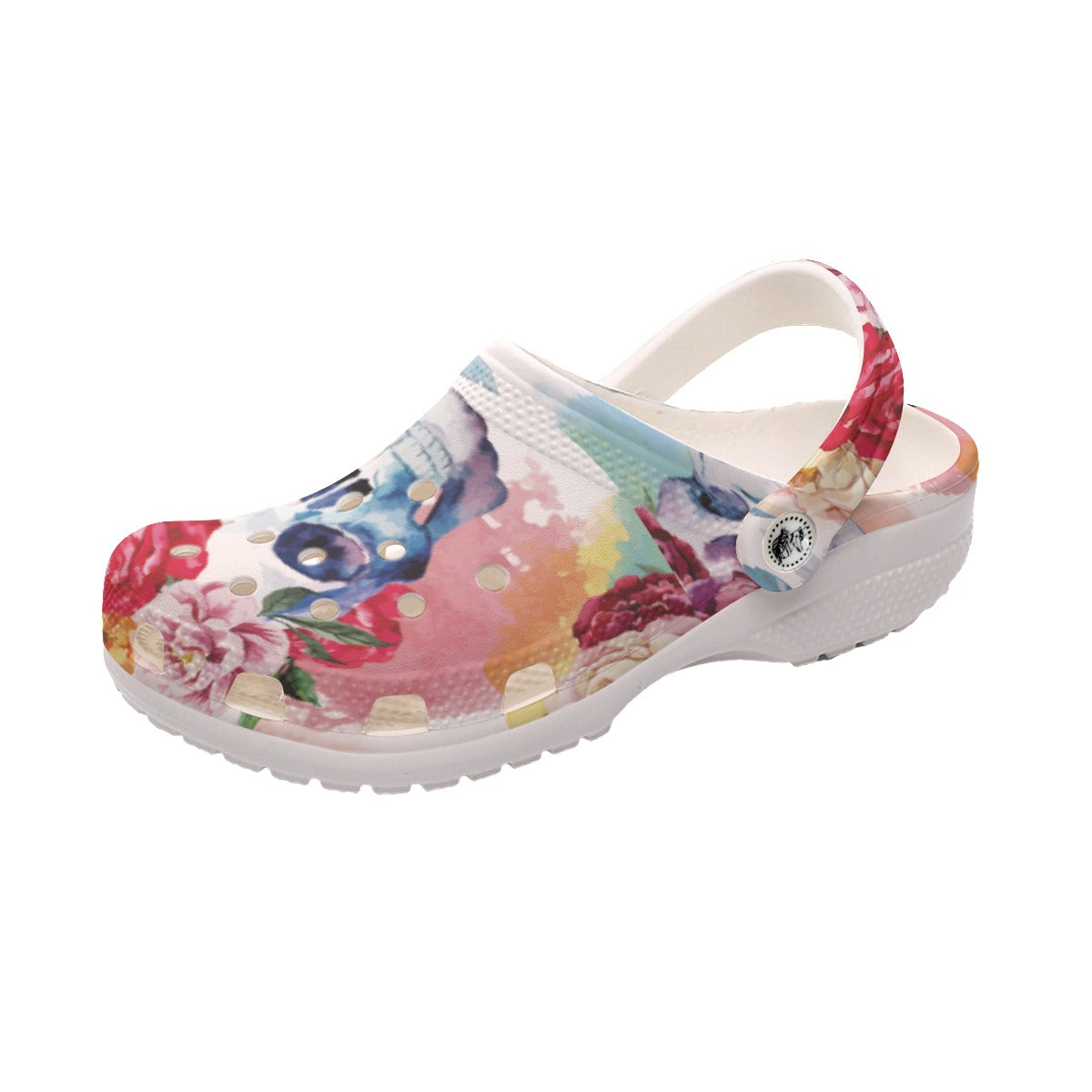 Beautiful rose skull floral skeleton Women's Classic Clogs