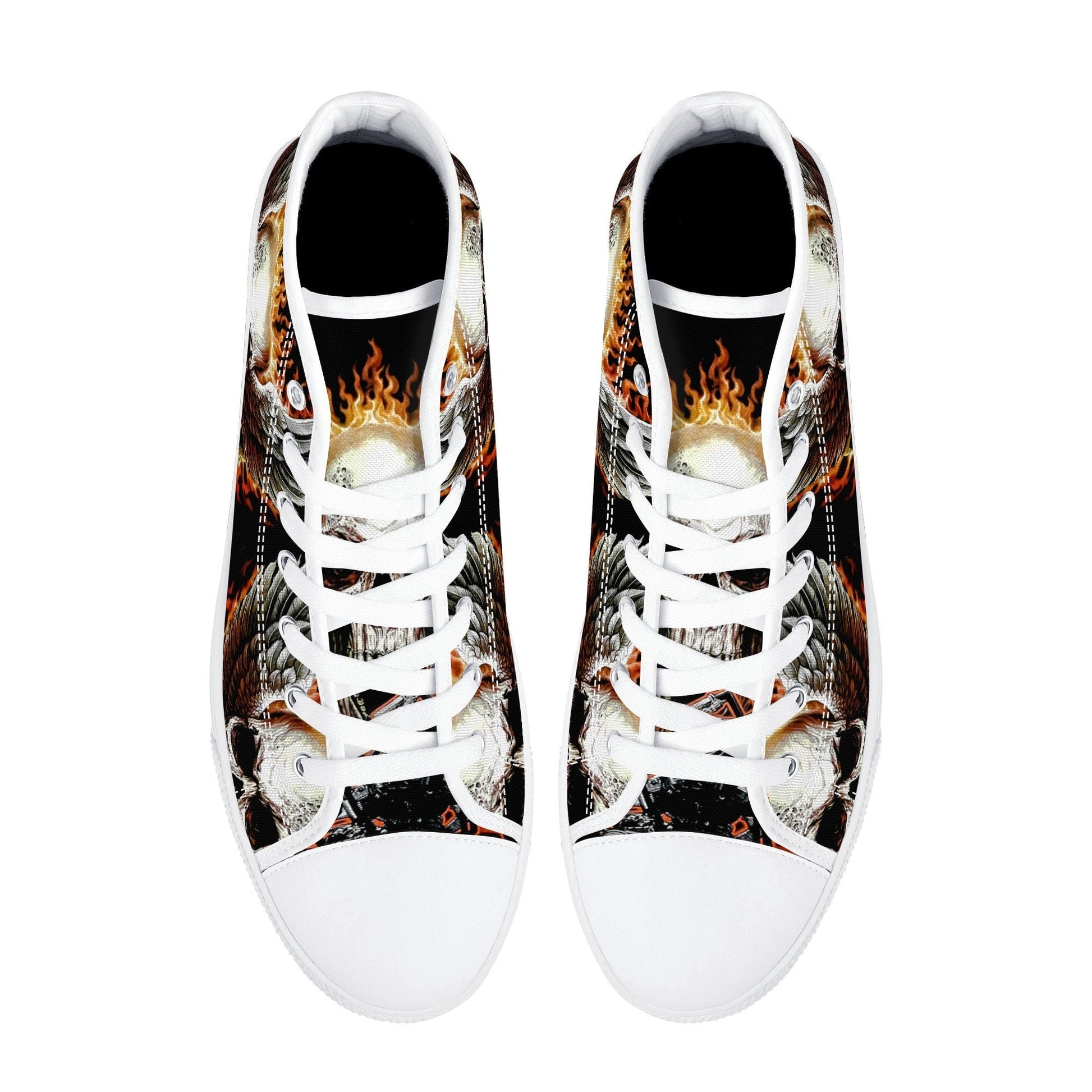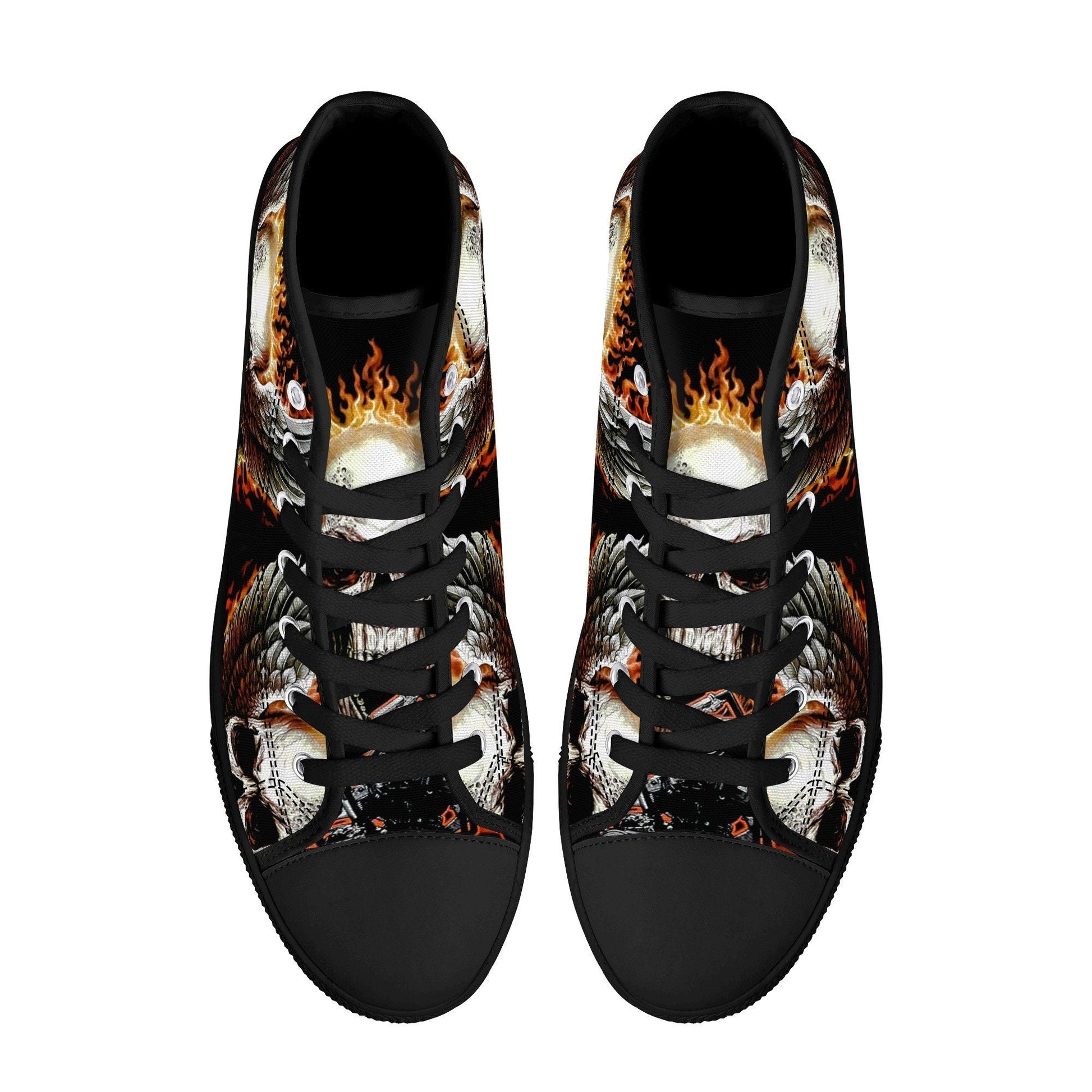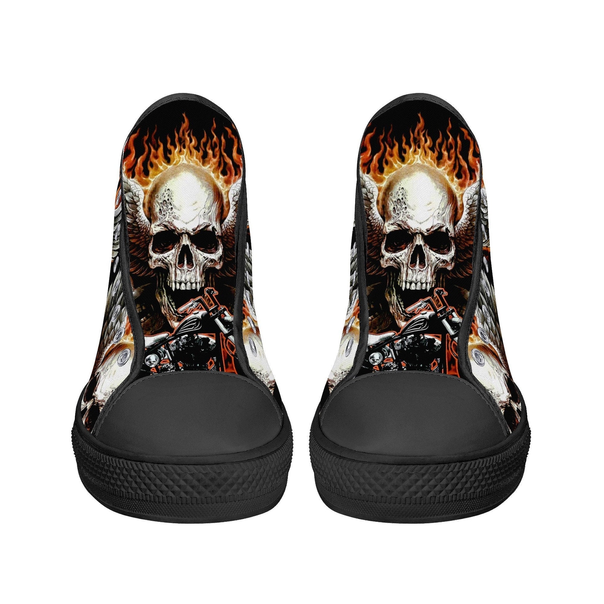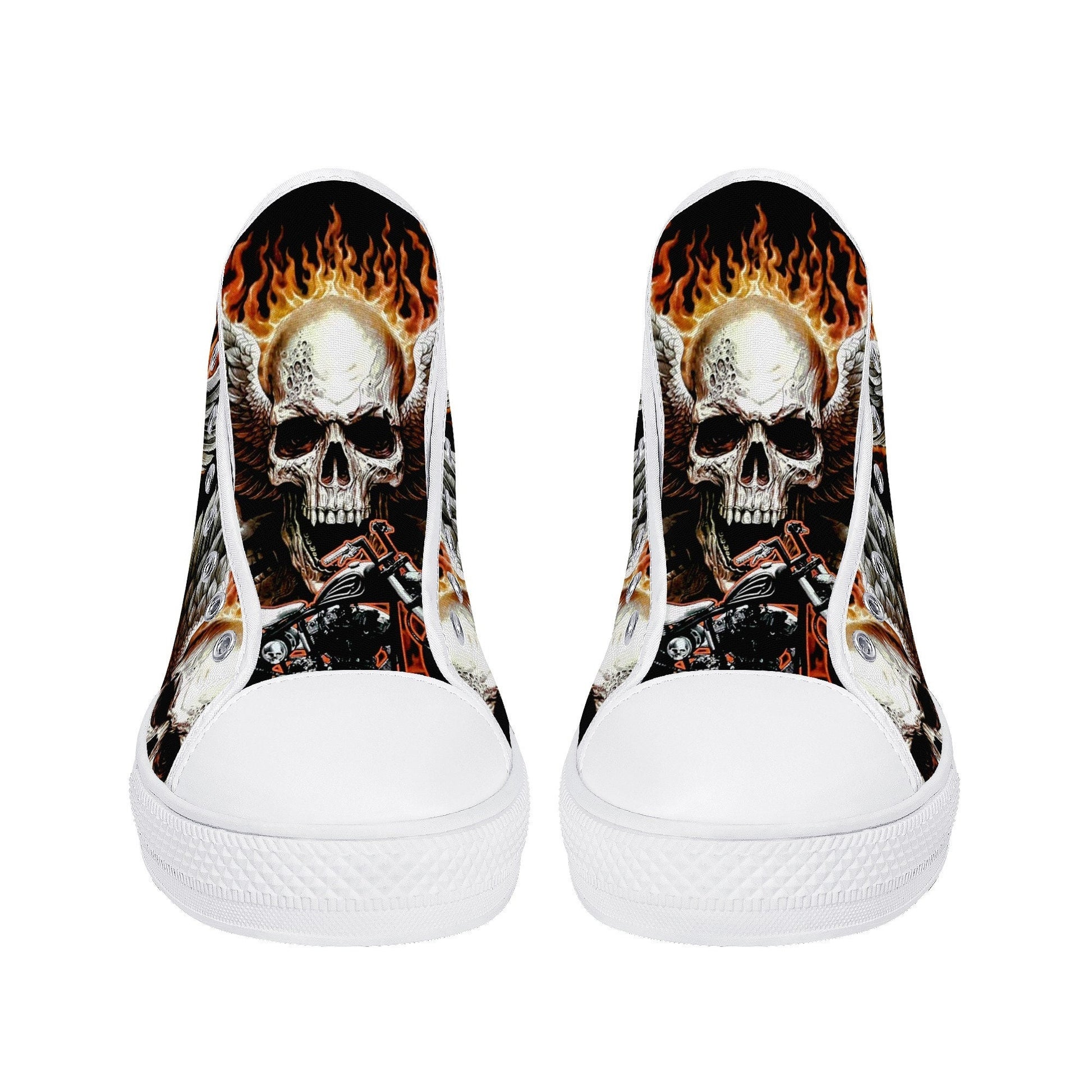Biker skull hight top sneakers, flower skull canvas shoes, evil women shoes, motorcycle skull canvas shoes, Motorcycle women sneakers shoes