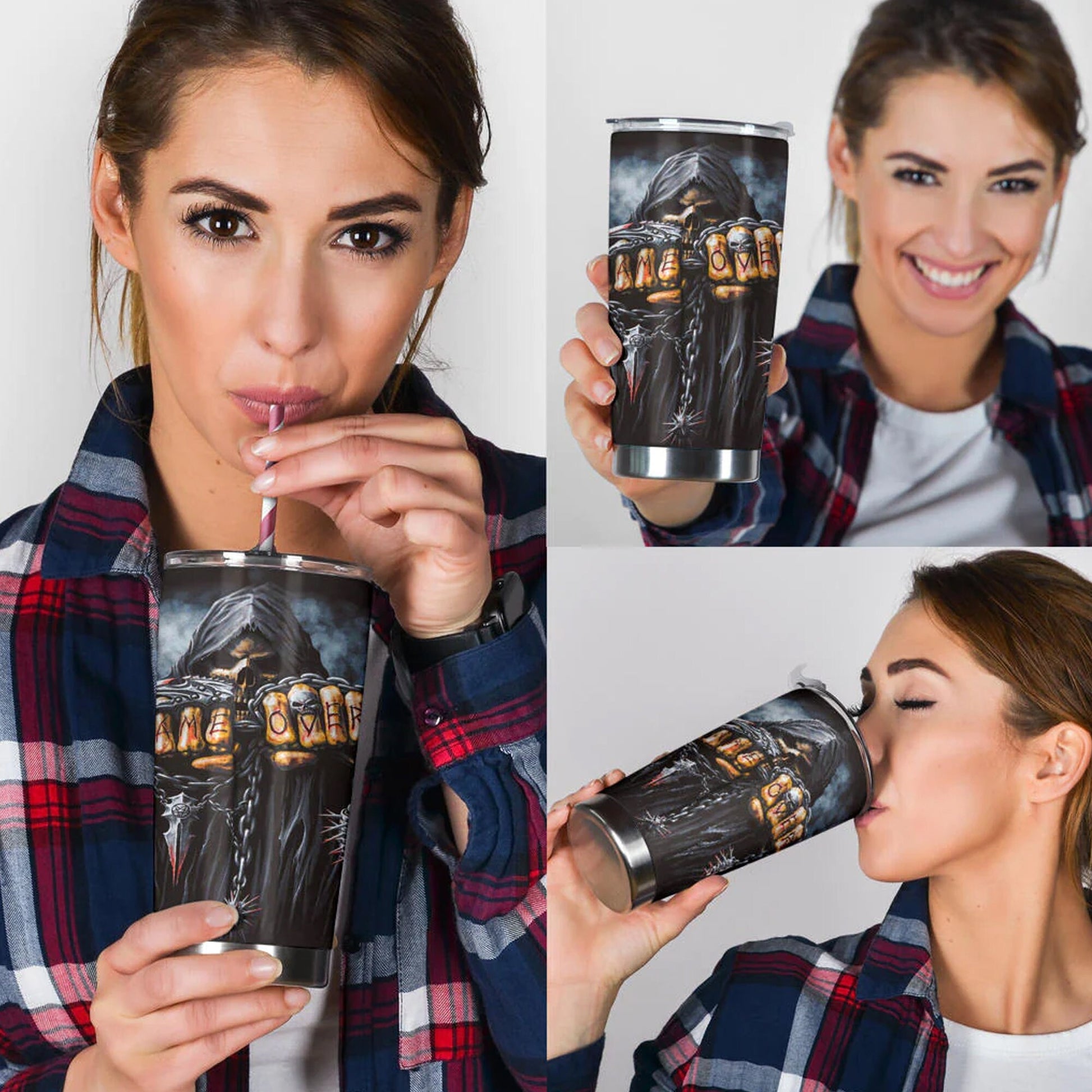 Biker skull tumbler, biker skull mug, gothic tumbler, biker skull travel mug, Grim reaper skull travel mug, goth cup, motorcycle skull mug
