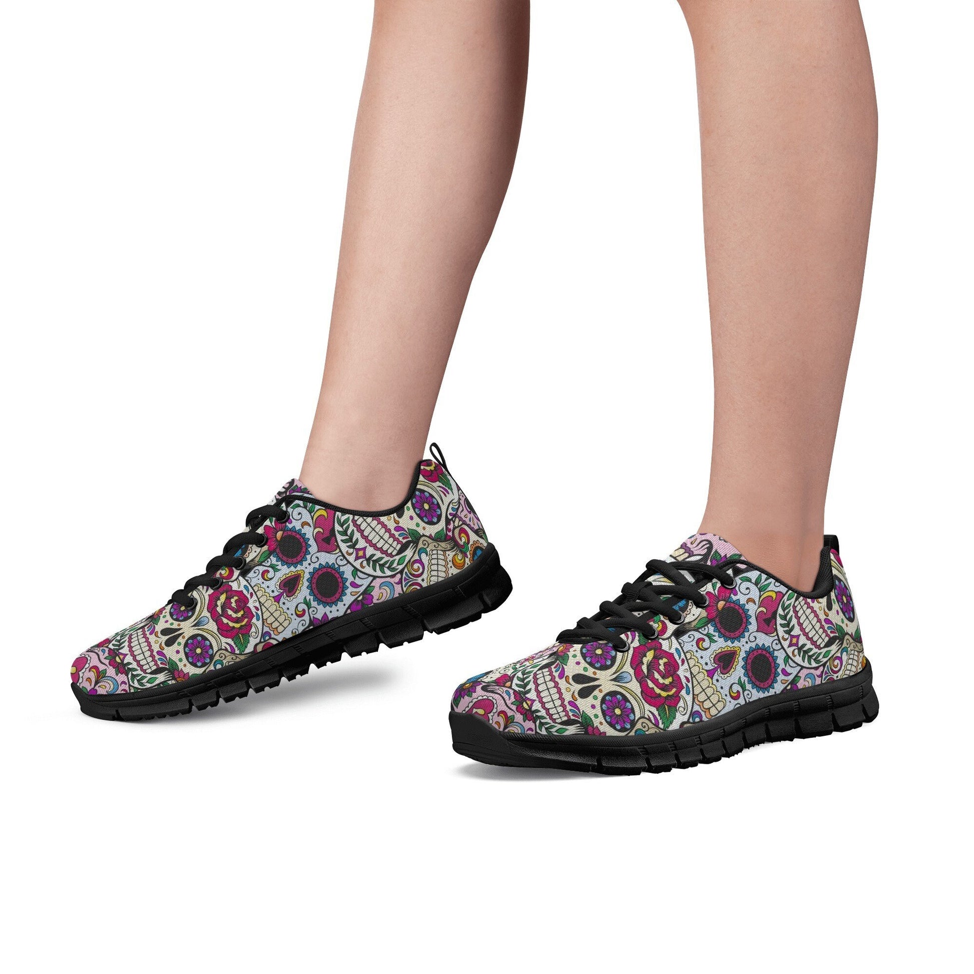 Candy skull athletic shoes, sugar skull unisex sneakers, dia de los muertos skull running sneakers, day of the dead unisex sneakers shoes