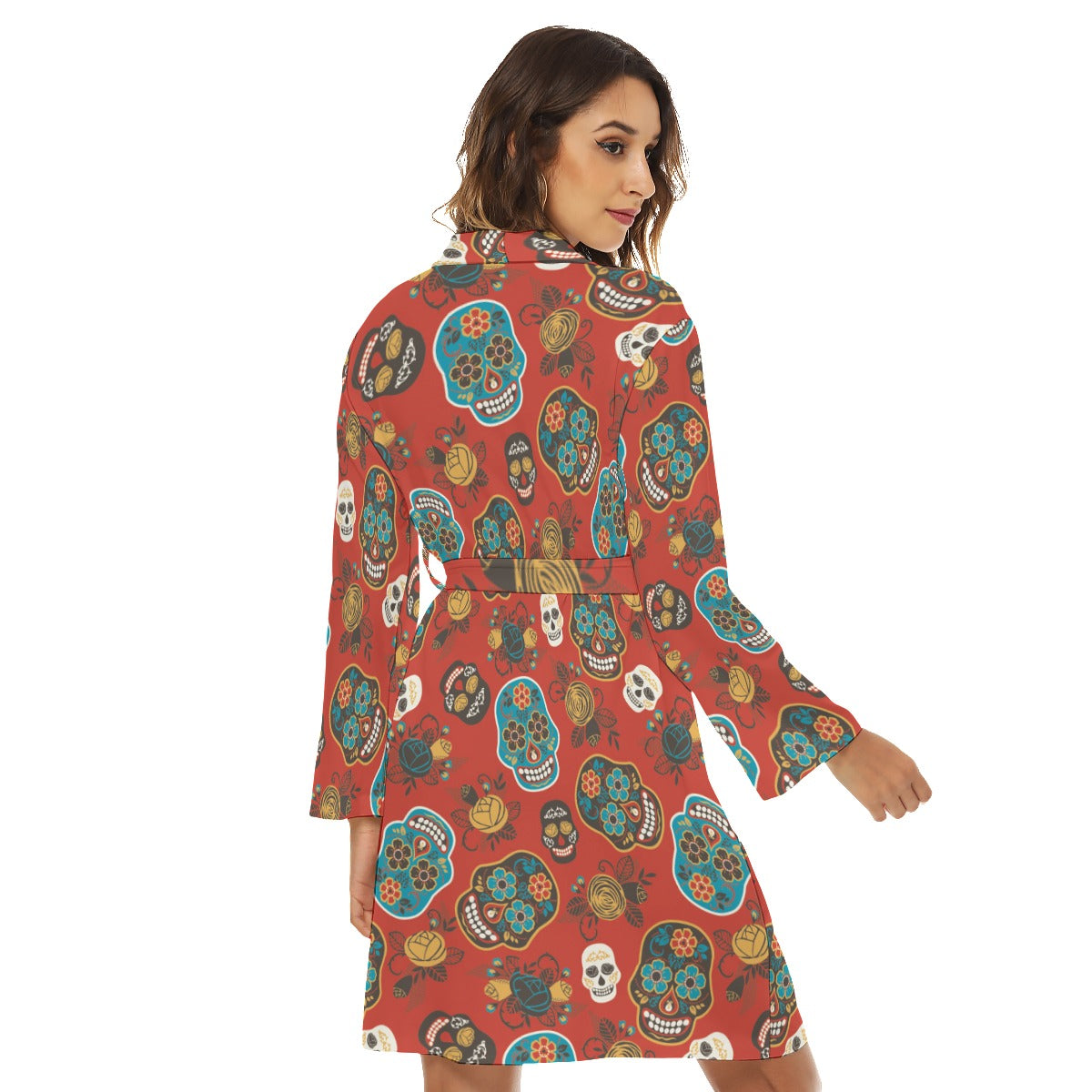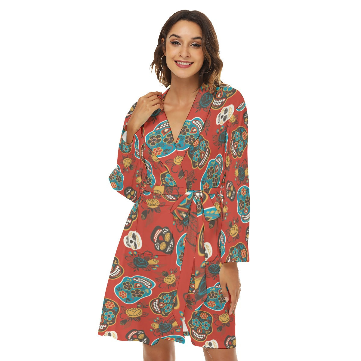 Candy skull dia de los muertos Women's Robe, Floral sugar skull Women's Robe