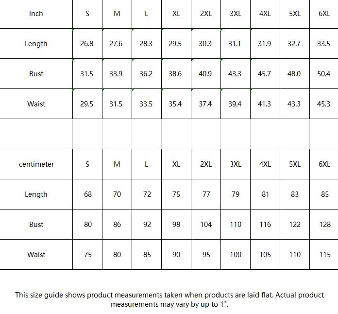 | inch | Length | Bust | Waist |