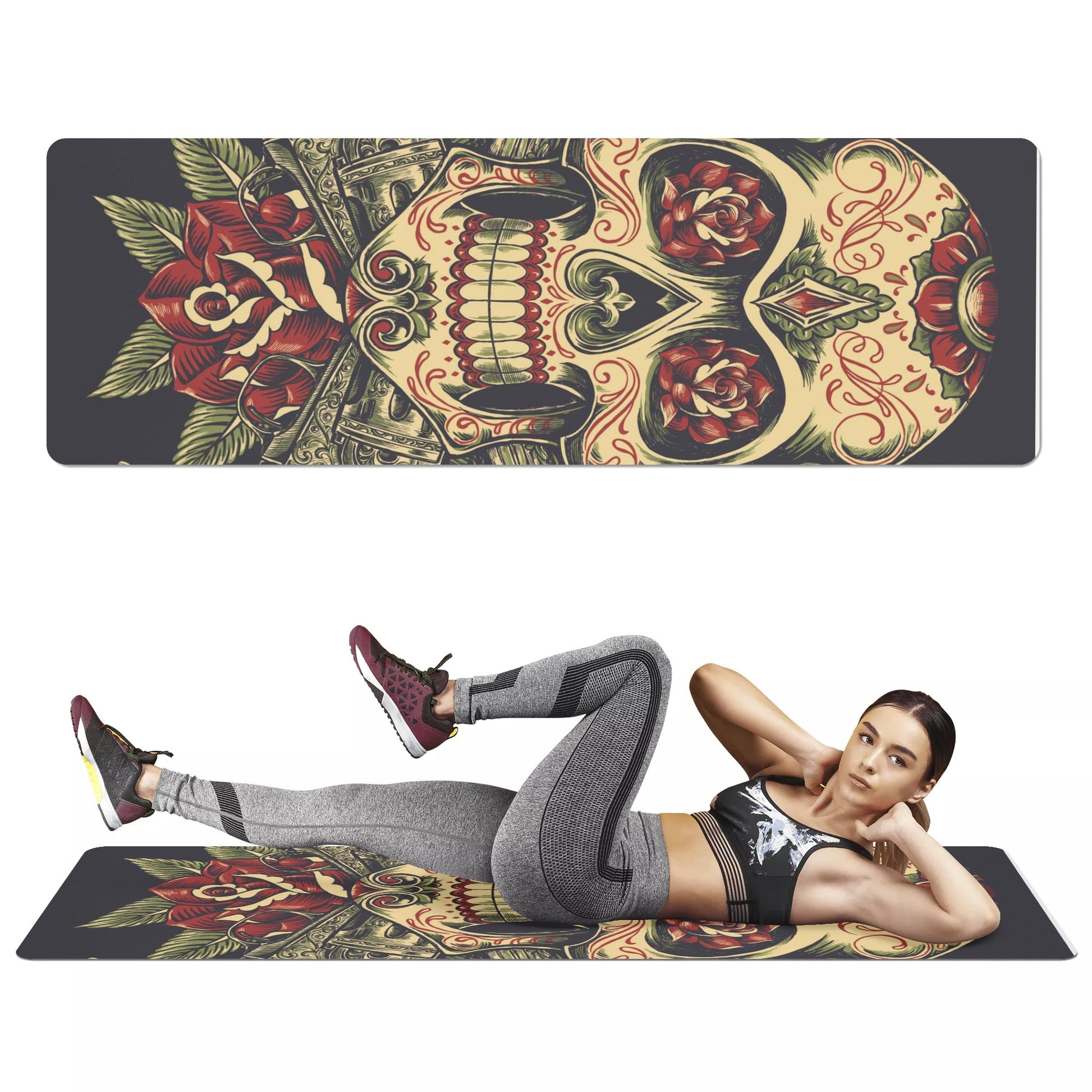 Sugar skull day of the dead Yoga mat, Gothic skull Dia de los muertos yoga mat, skeleton Halloween yoga mat, sugar skull fitness mat, skull workout mat