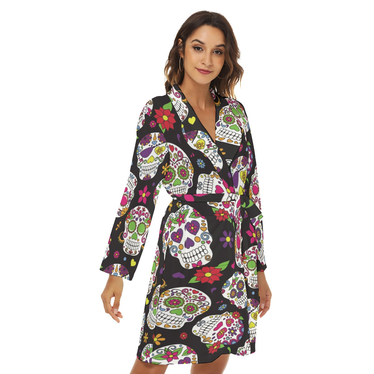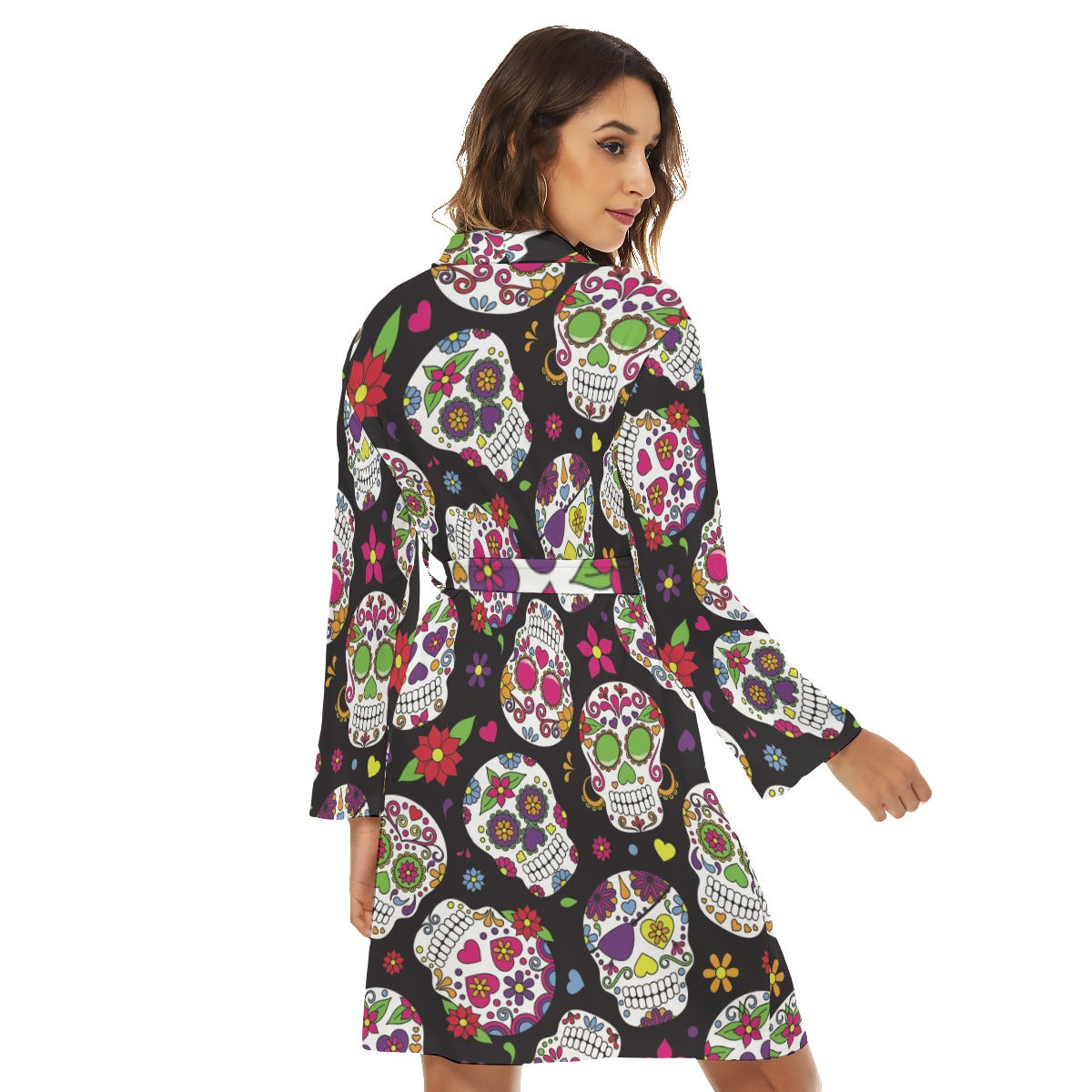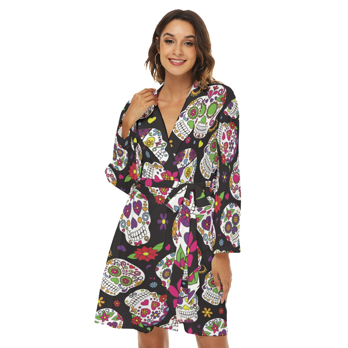 Dia de los muertos sugar skull Women's Robe, Gothic skull Halloween bath robe pijamas