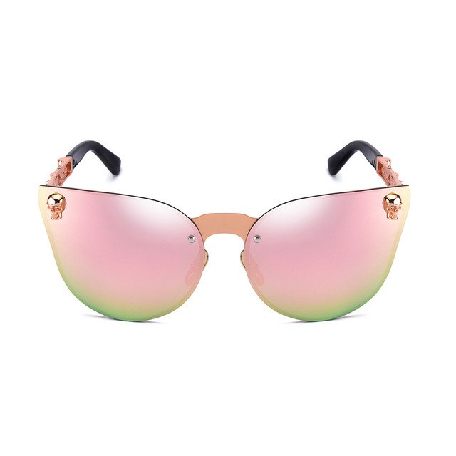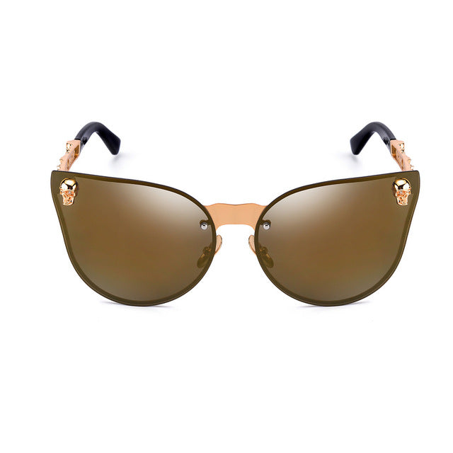 Fashion Women Gothic Cat eye Sunglasses Skull Frame Metal Temple Gold Sun glasses Oculos De Sol Feminino Luxury for women