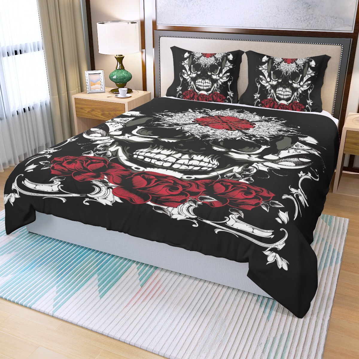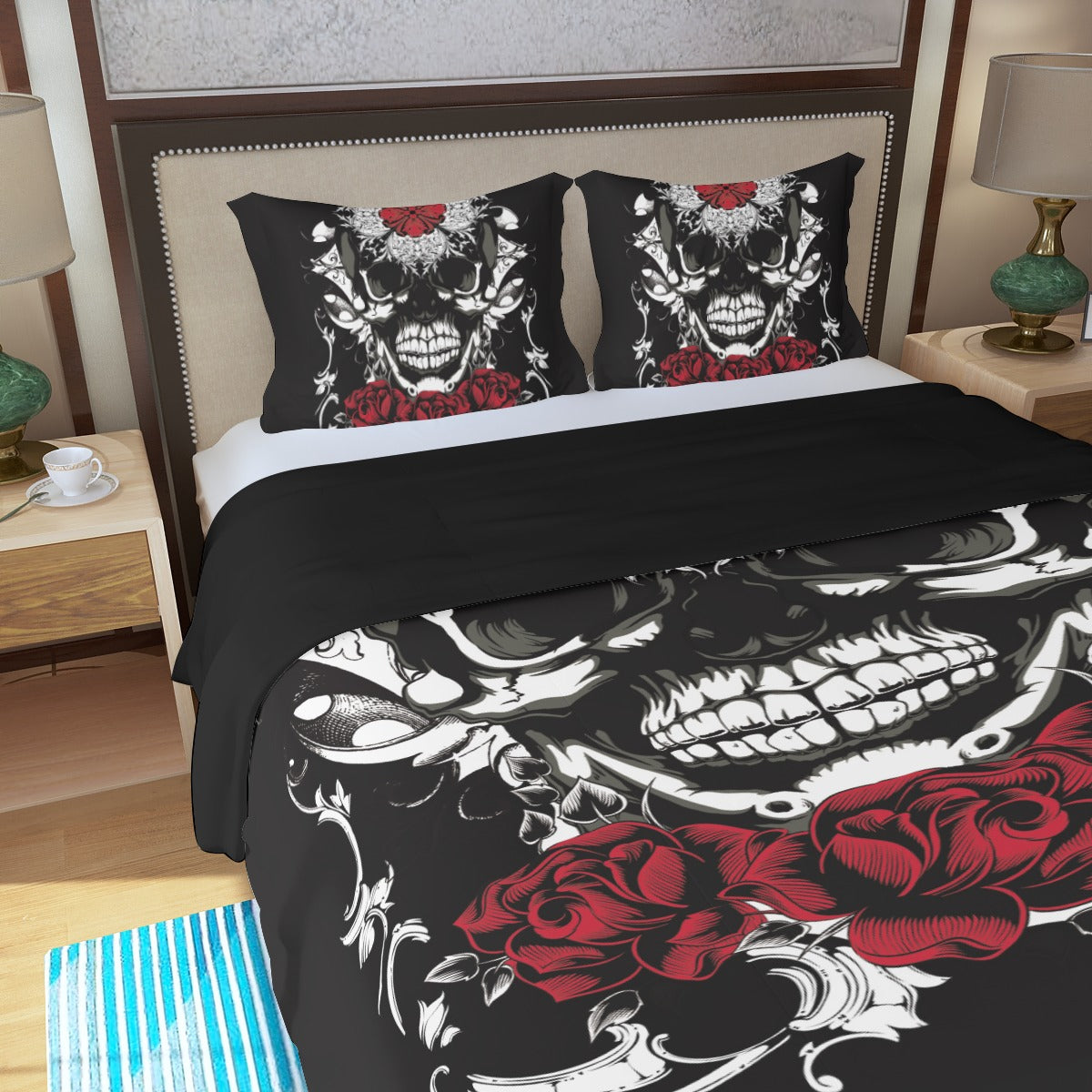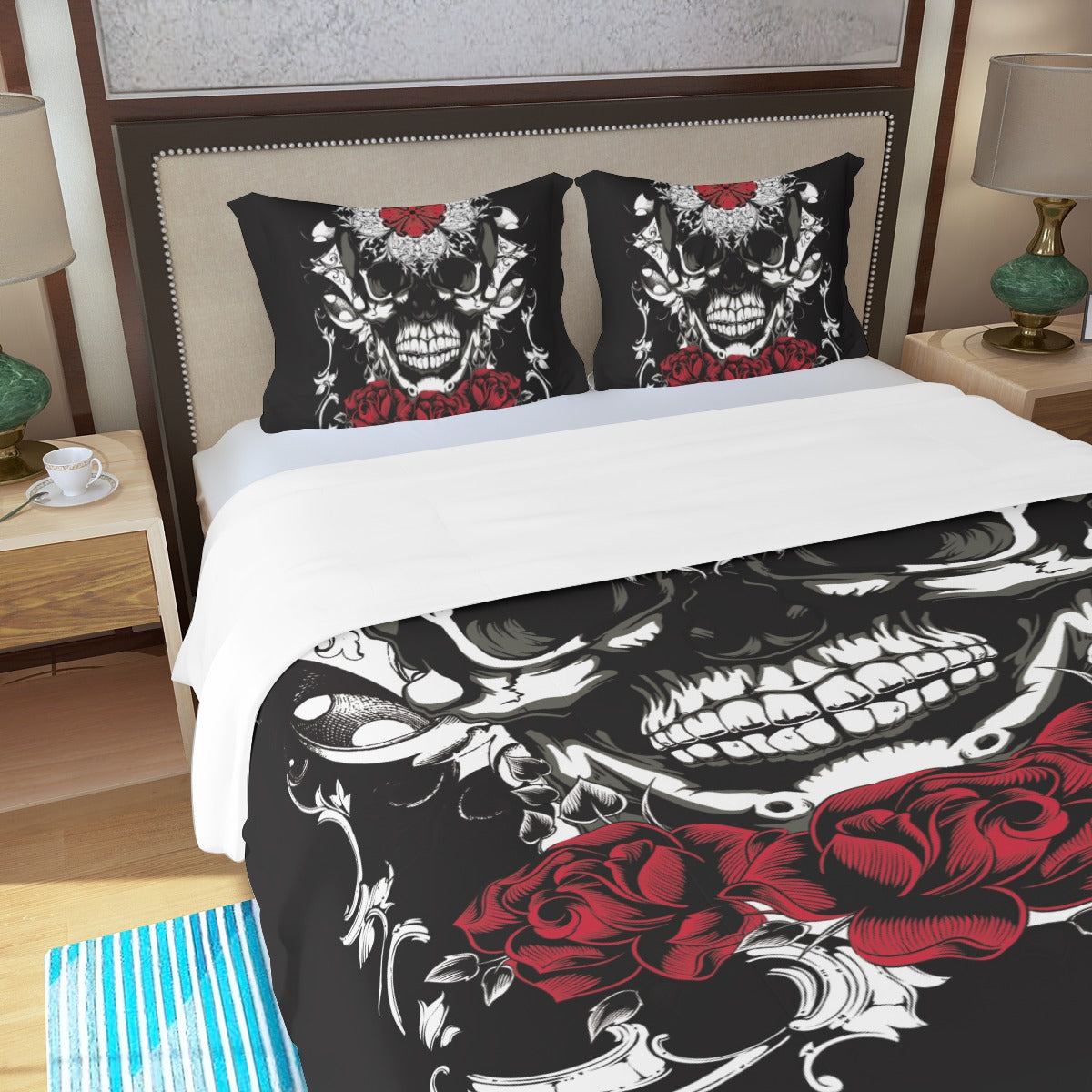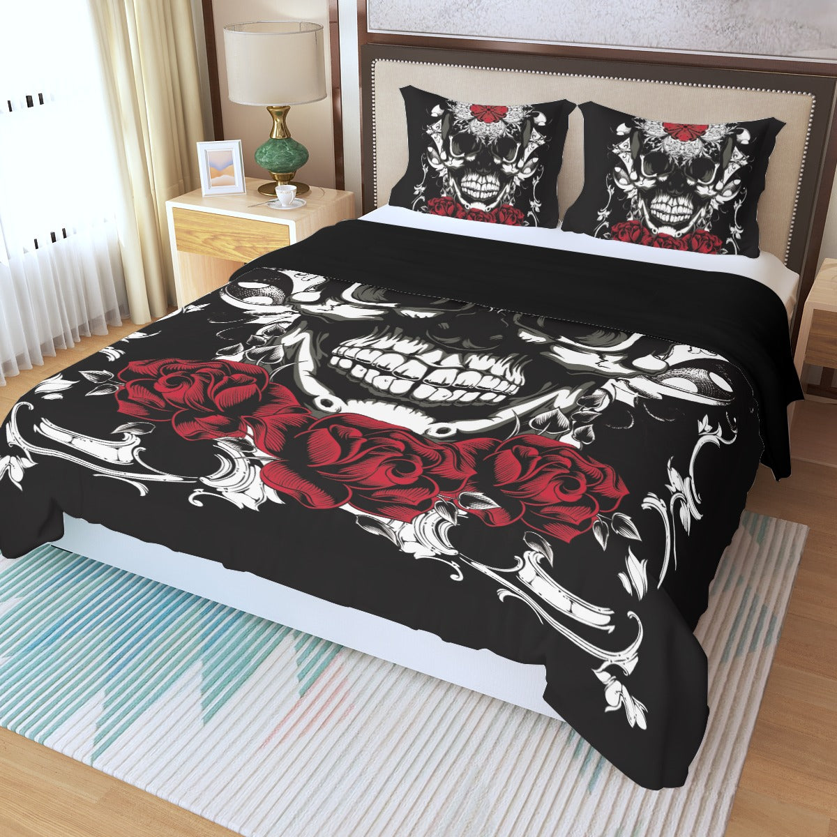 Floral rose skull Three Piece Duvet Cover Set