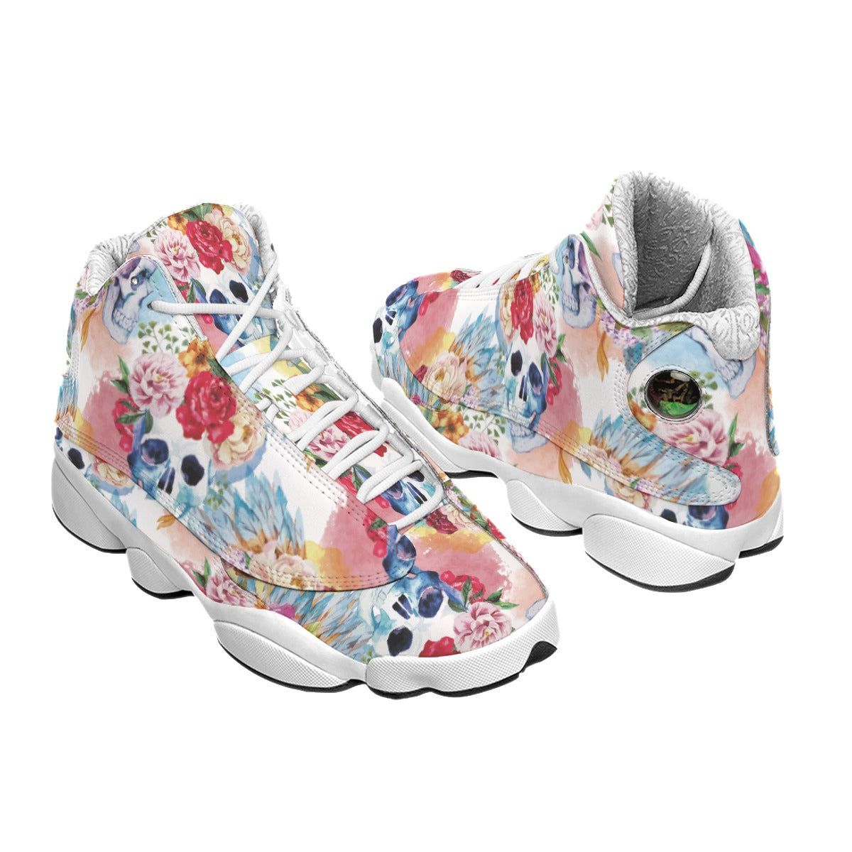Floral skull sugar skull Women's Curved Basketball Shoes With Thick Soles