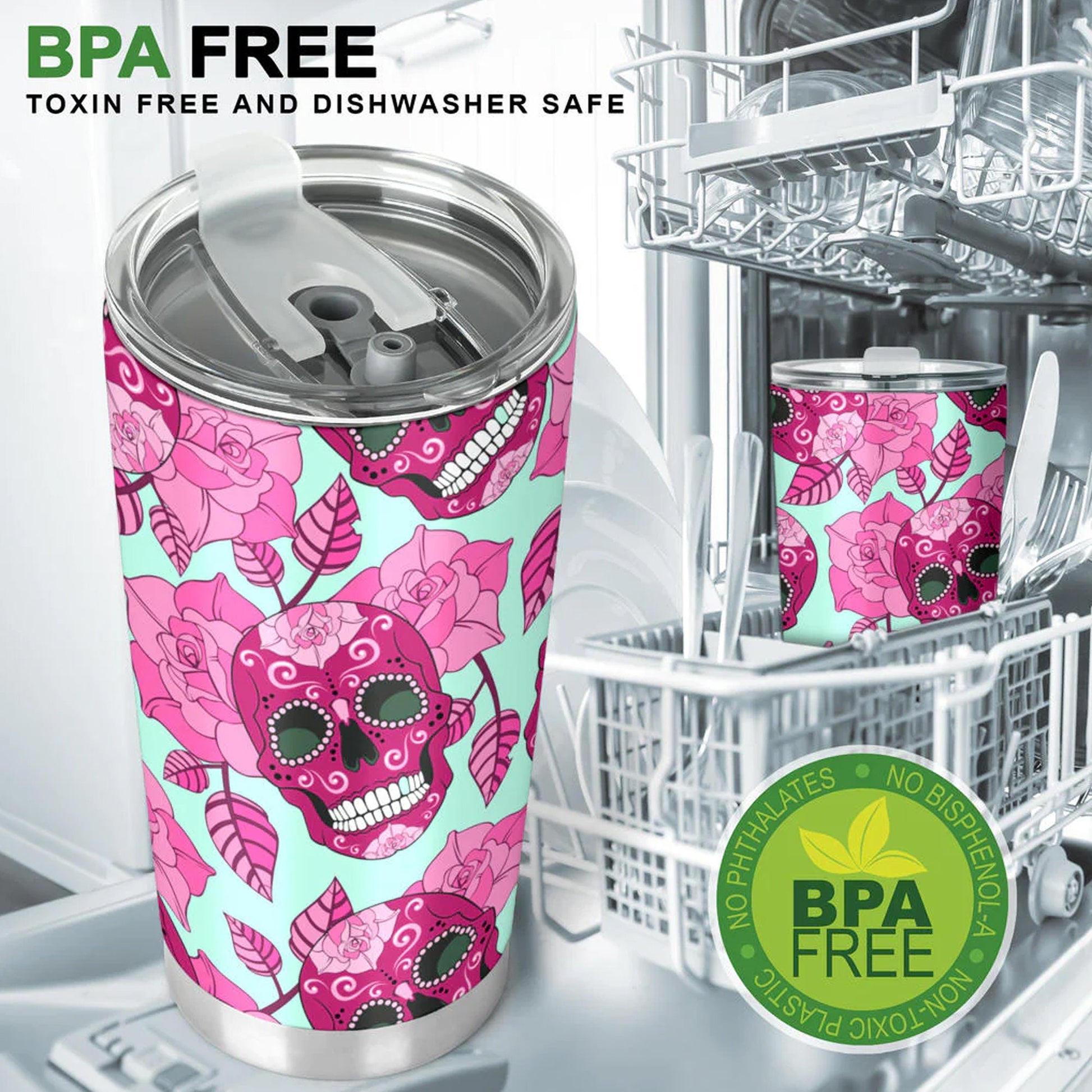 Floral skull tumbler, sugar skull cup mug tumbler, Dia de los muertos skull tumblr, skull tumbler mug cup, Day of the dead mug cup tumbler All of our Tumblers are custom-made-to-order and handcrafted to the highest quality standards. Add style and personality to your drinkware collection with a custom printed tumbler! Constructed with medical-grade stainless steel and double-walled vacuum insulation to keep your beverages hot or cold all day. Features an ergonomically designed leak-proof lid that can be opened or closed with a single press for easy use with only one hand. BPA-free materials make this tumbler dishwasher safe for easy cleaning at home. Size: 20 OZ, 30 OZ ======== All products in our store are only manufactured upon receiving an order from the customer. Please carefully review the product description and dimensions in the illustrative images before placing an order. The following cases are not eligible for return/exchange: 1. The product you receive matches the description. 2. The product dimensions (with illustrative images describing the dimensions) you receive match the description. 3. The product has been customized as per your request (e.g., printed with your name/image).