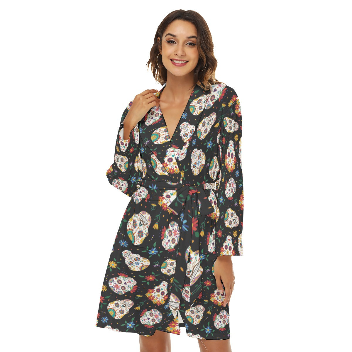 Floral sugar skull day of the dead Women's Robe, Floral sugar skull Women's Robe