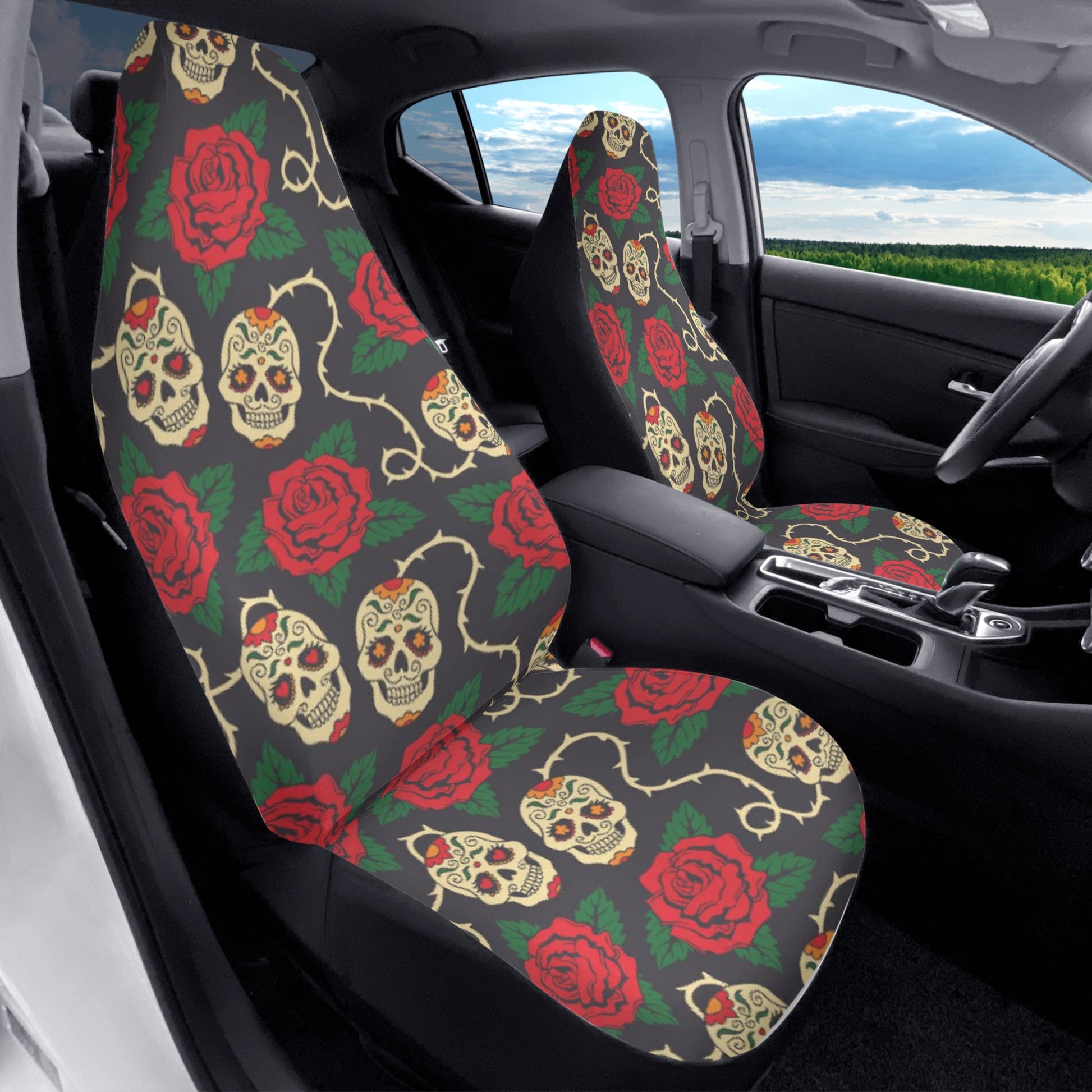 Floral sugar skull dia de los muertos Car Seat Covers (2 Pcs)