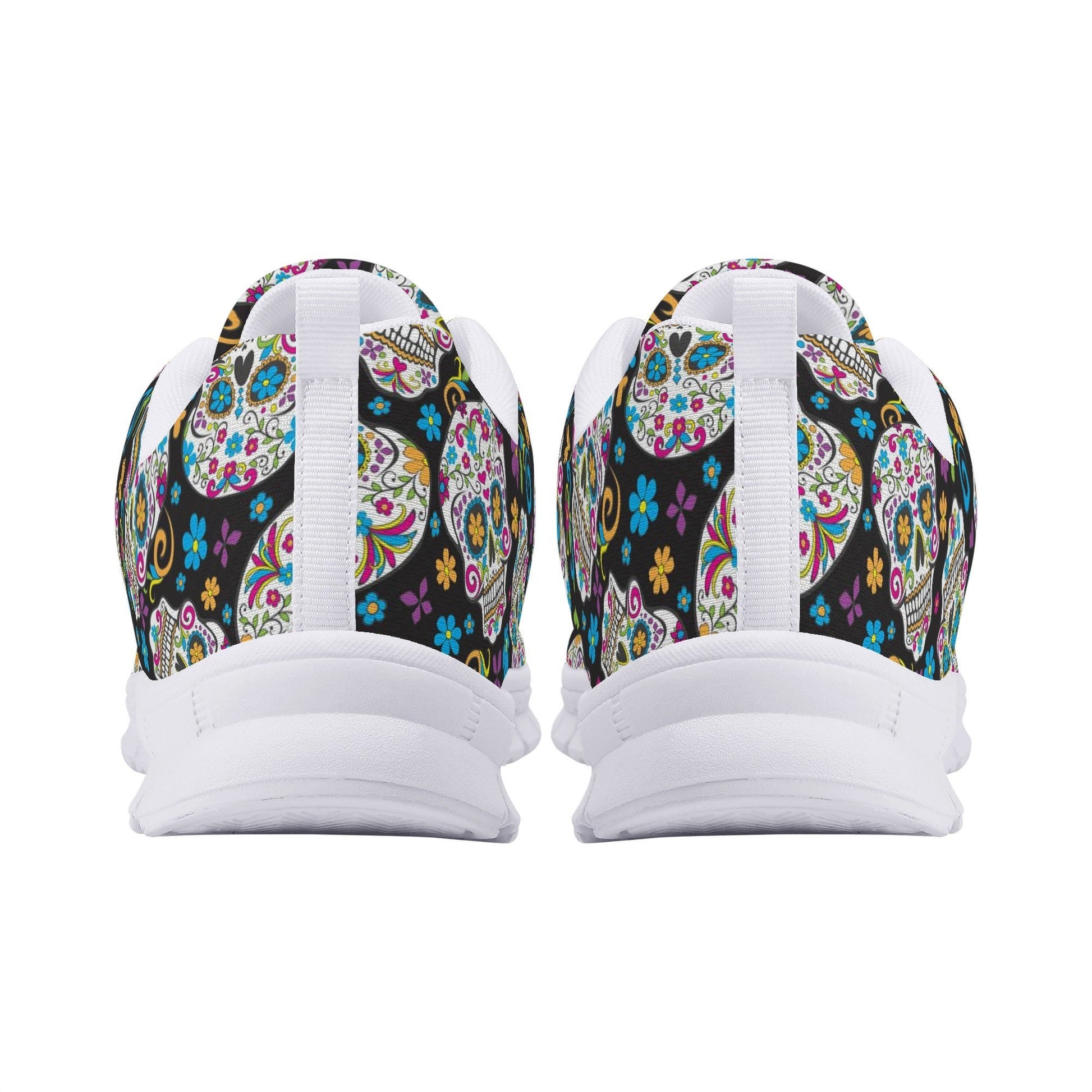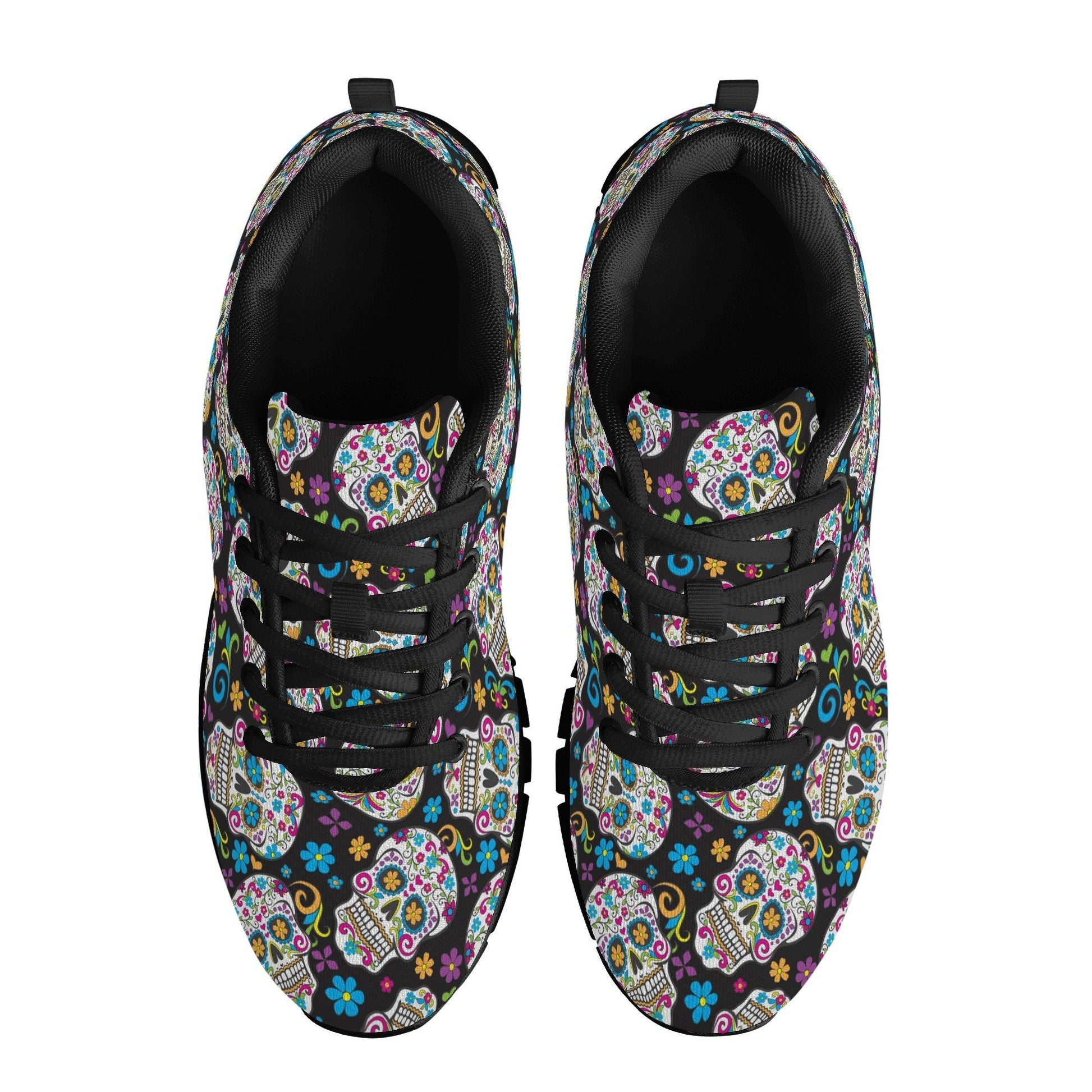 Floral sugar skull unisex sneakers, dia de los muertos skull lifestyle footwear, floral skull lifestyle footwear, floral sugar skull shoes