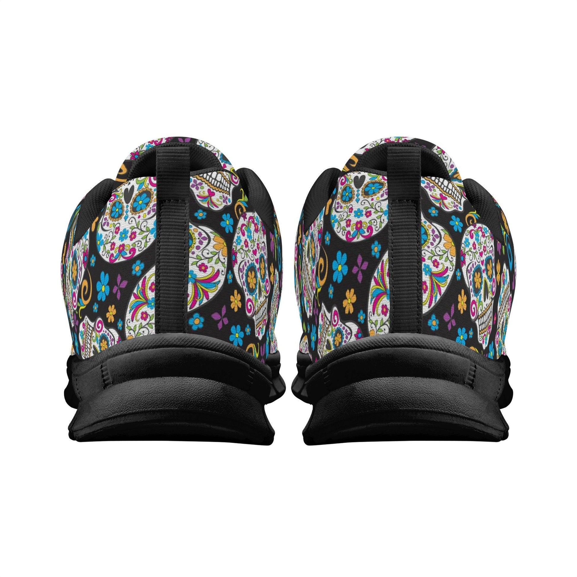 Calaveras skull shoes, calaveras skull lighweight running shoes, floral sugar skull running sneakers, dia de los muertos skull breathable sneakers, dia de los muertos skull athletic sneakers, floral sugar skull breathable sneakers, mexico shoes WOMEN SIZE Size______Foot Length (cm) US5_______23.3cm US5.5_____24cm US6_______24.6cm US7_______25.3cm US8_______26cm US9_______26.7cm US10______27.3cm US11______28cm US11.5____28.7cm US12______29.3cm MEN SIZE Size______Foot Length (cm) US5_______25.3cm US6_______26cm US7_______26.7cm US7.5_____27.3cm US8.5_____28cm US9.5_____28.7cm US10_______29.3cm US11______30cm US12_____30.7cm US13______31.3cm US14______32cm Breathable mesh upper;Woven with flying technology;Soft fabric The upper is made of mesh,and the sole is made of EVA Feature: Anti-Slippery, shockproof Season: Autumn, Spring, Summer, Winter Occasion: Outdoor, Daily Gender:Women Care Instruction: Spot clean only This product is made on demand. No minimums Multiple shipping options available, and cost varies on time efficiency. Soft and lightweight EVA material soles for trainer shoes Cushioning EVA insoles provides sustained comfort and support Breathable mesh material tongue and non-woven fabric lining Lace up closure serving those sporty yet effortless vibes Minimalist features make for increased flexibility and classic Daily style or outside exercise and hand or machina washable ======== All products in our store are only manufactured upon receiving an order from the customer. Please carefully review the product description and dimensions in the illustrative images before placing an order. The following cases are not eligible for return/exchange: 1. The product you receive matches the description. 2. The product dimensions (with illustrative images describing the dimensions) you receive match the description. 3. The product has been customized as per your request (e.g., printed with your name/image).