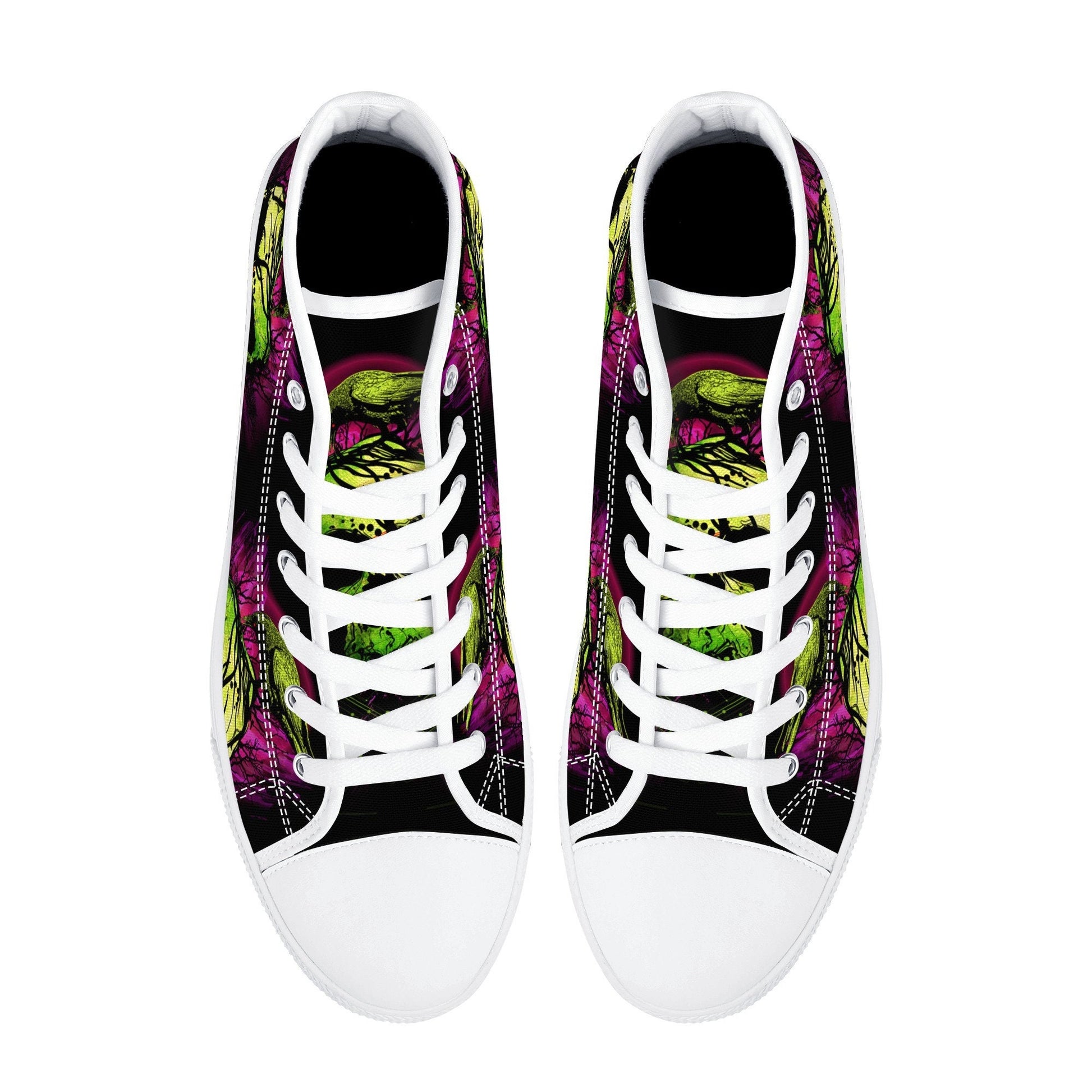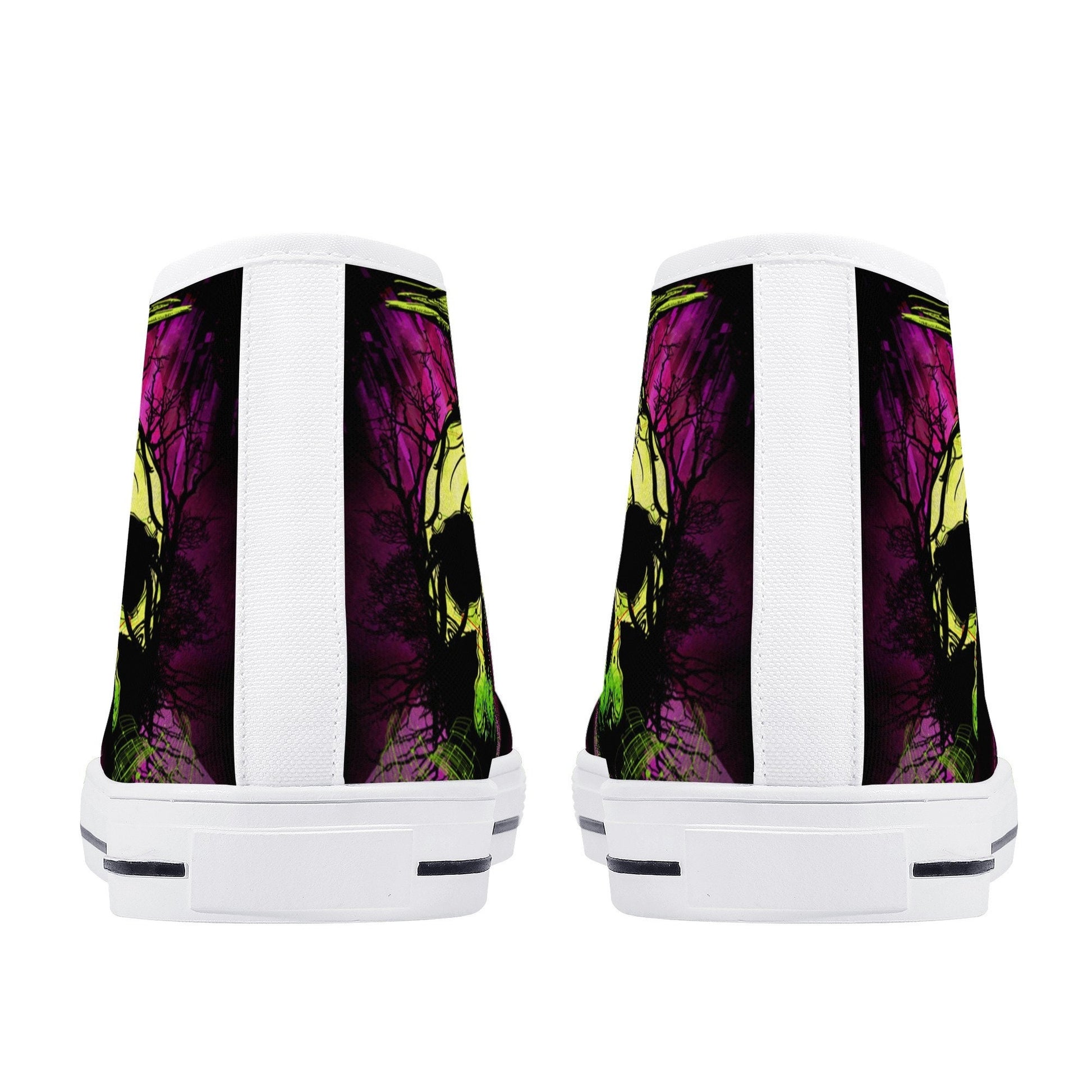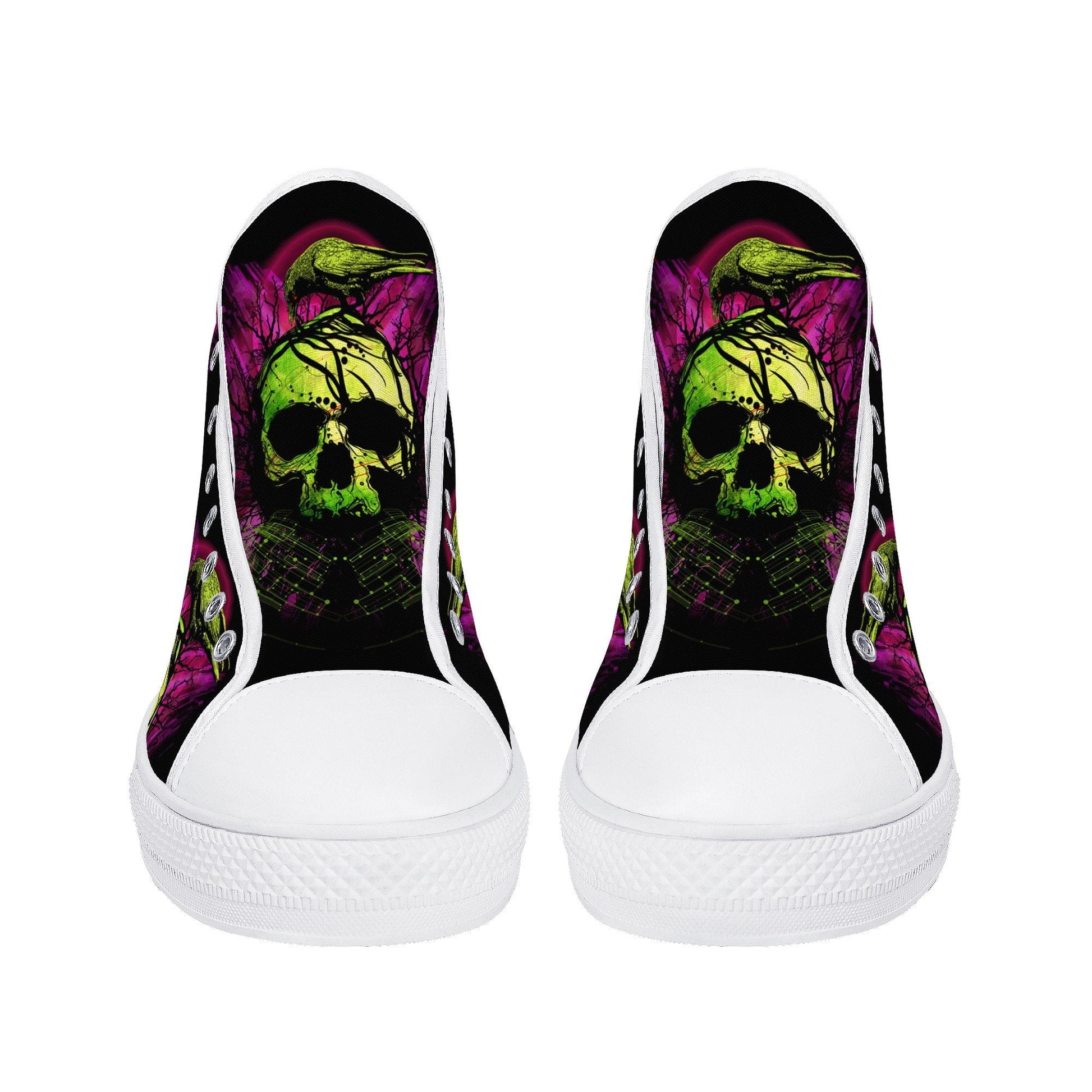Motorcycle skull women sneakers, evil hight top sneakers, grim reaper causual shoes, halloween shoes gift, flower skull shoes gift, death skull shoes for her, horror shoes for her, skull sneakers gift, flame skull causual sneakers, horror skull shoes sneakers WOMEN SIZE Size______Foot Length (cm) US5_______23.3cm US5.5_____24cm US6_______24.6cm US7_______25.3cm US8_______26cm US9_______26.7cm US10______27.3cm US11______28cm US11.5____28.7cm US12______29.3cm MEN SIZE Size______Foot Length (cm) US5_______25.3cm US6_______26cm US7_______26.7cm US7.5_____27.3cm US8.5_____28cm US9.5_____28.7cm US10_______29.3cm US11______30cm US12_____30.7cm US13______31.3cm US14______32cm All of our High-Top Shoes are custom-made-to-order and handcrafted to the highest quality standards. Full canvas double sided print with rounded toe construction. Lace-up closure for a snug fit. Metal eyelets for a classic look Soft textile lining with lightweight construction for maximum comfort. High quality outsole for traction and exceptional durability. Highbury insole make the the shoes comfortable and soft ,and scaly sole increases slip resistance The upper is made of canvas and the sole is made of rubber Feature: Wear-resistant and breathable,Fashion Trend Season: Autumn, Spring, Summer, Winter Occasion: Outdoor, Daily Gender:Men, Womne Care Instruction: Spot clean only Custom area is the upper, for custom areas please refer to yoycol mockup generator for details This product is made on demand. No minimums Multiple shipping options available, and cost varies on time efficiency. ======== All products in our store are only manufactured upon receiving an order from the customer. Please carefully review the product description and dimensions in the illustrative images before placing an order. The following cases are not eligible for return/exchange: 1. The product you receive matches the description. 2. The product dimensions (with illustrative images describing the dimensions) you receive match the description. 3. The product has been customized as per your request (e.g., printed with your name/image).