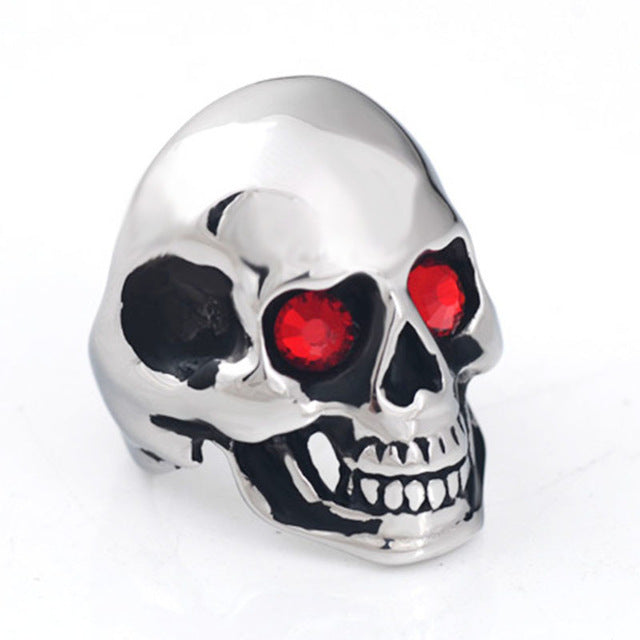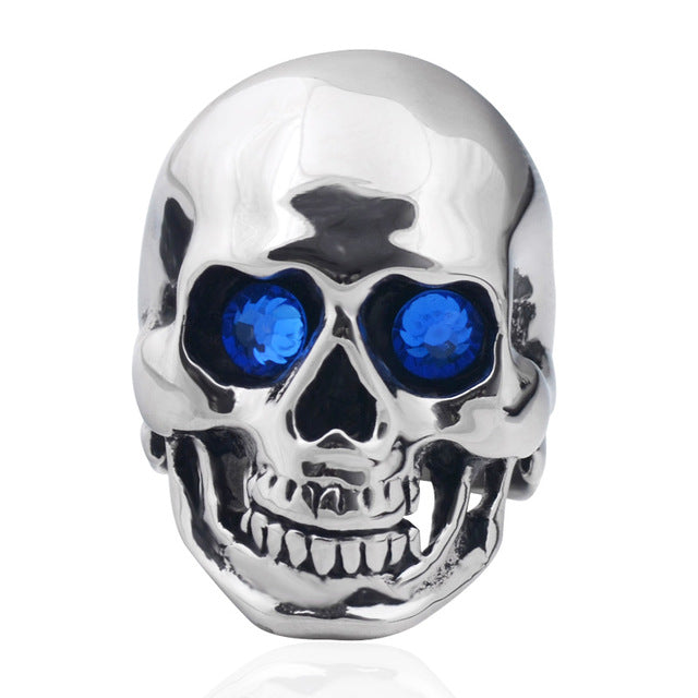 Gothic Punk Biker Rider Red/Blue Eyes Ring Vintage Stainless Steel Skeleton
