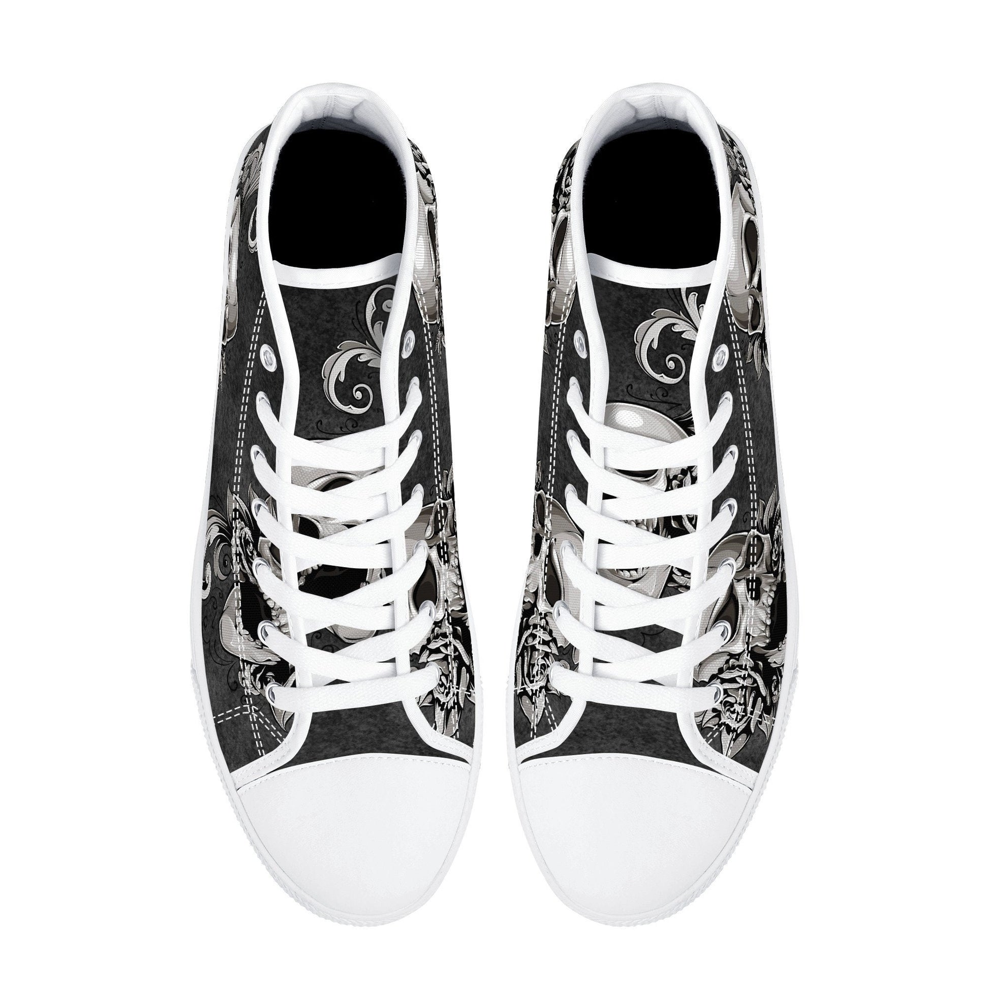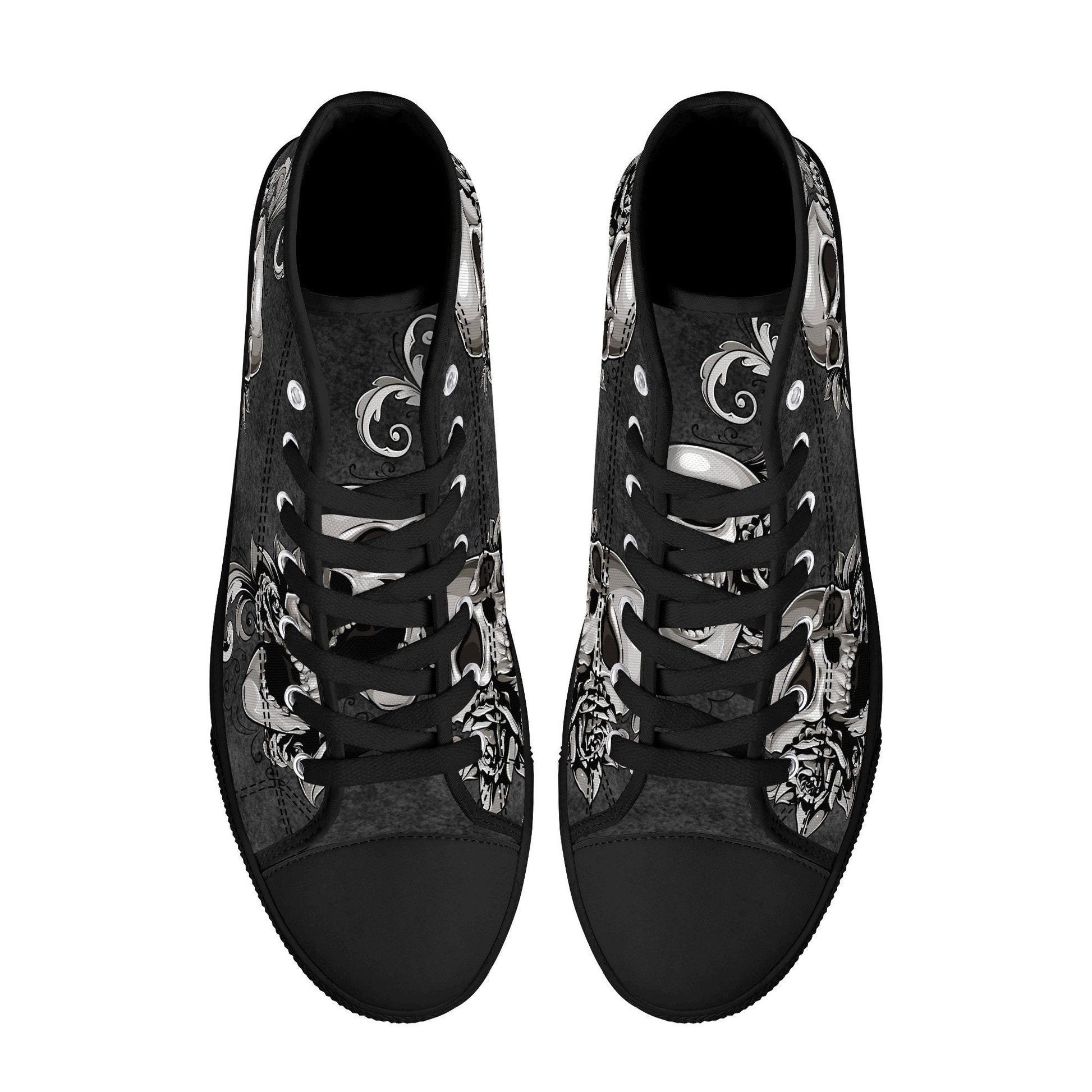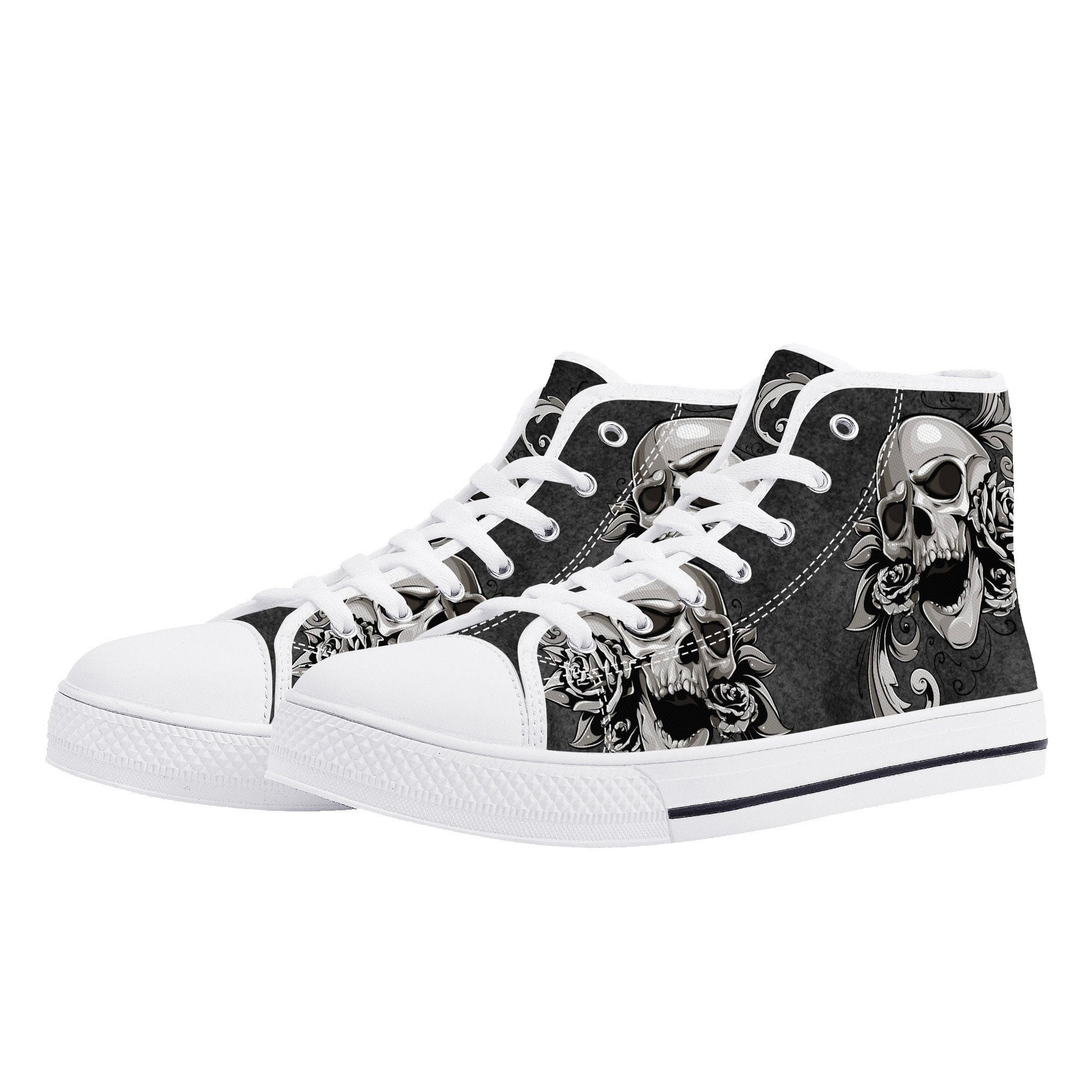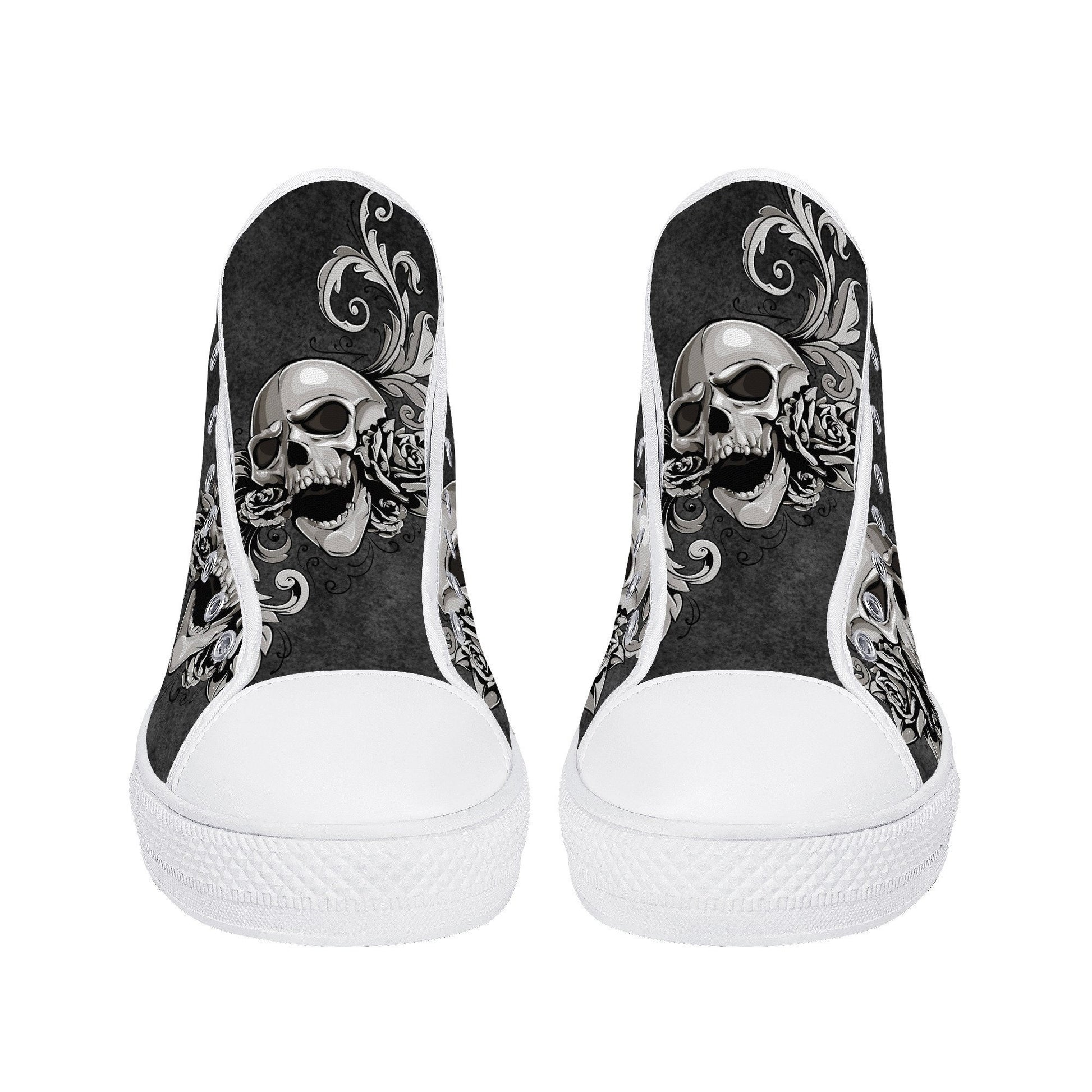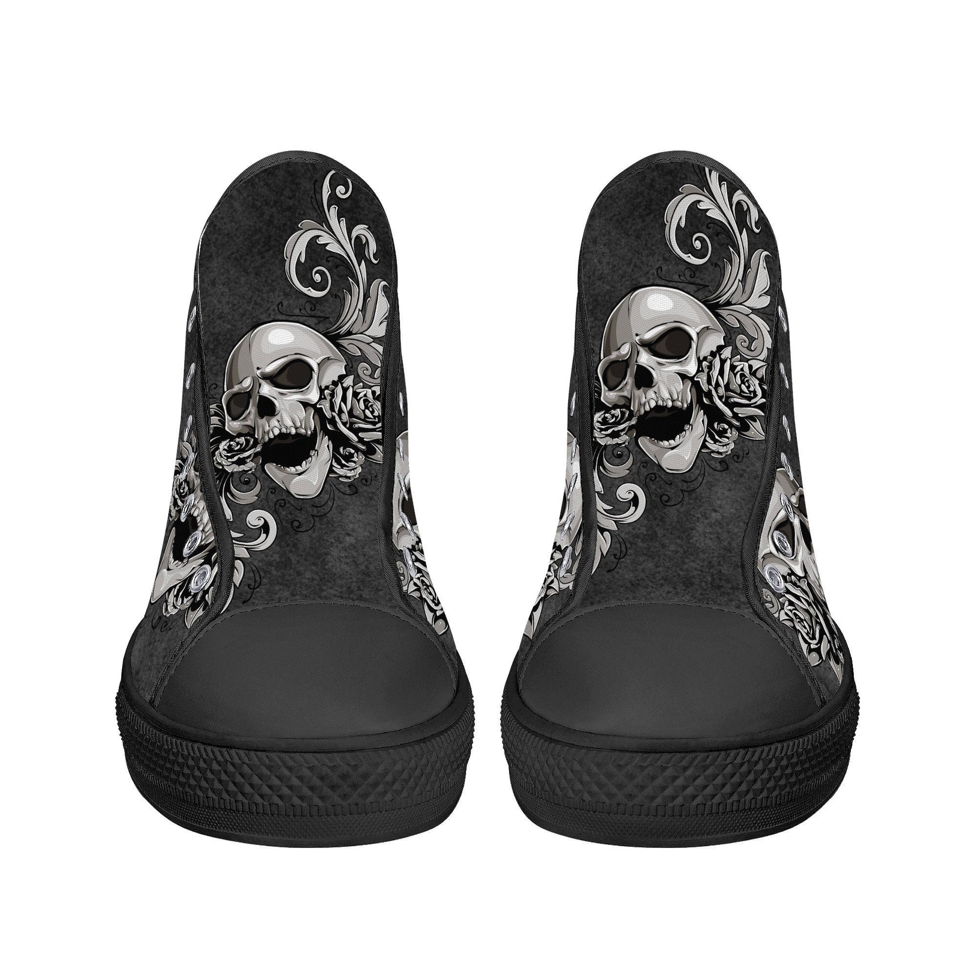 Gothic skull canvas sneakers, gothic skull shoes gift, flower skull women shoes, rose skull canvas shoes, goth canvas shoes, skull hight top