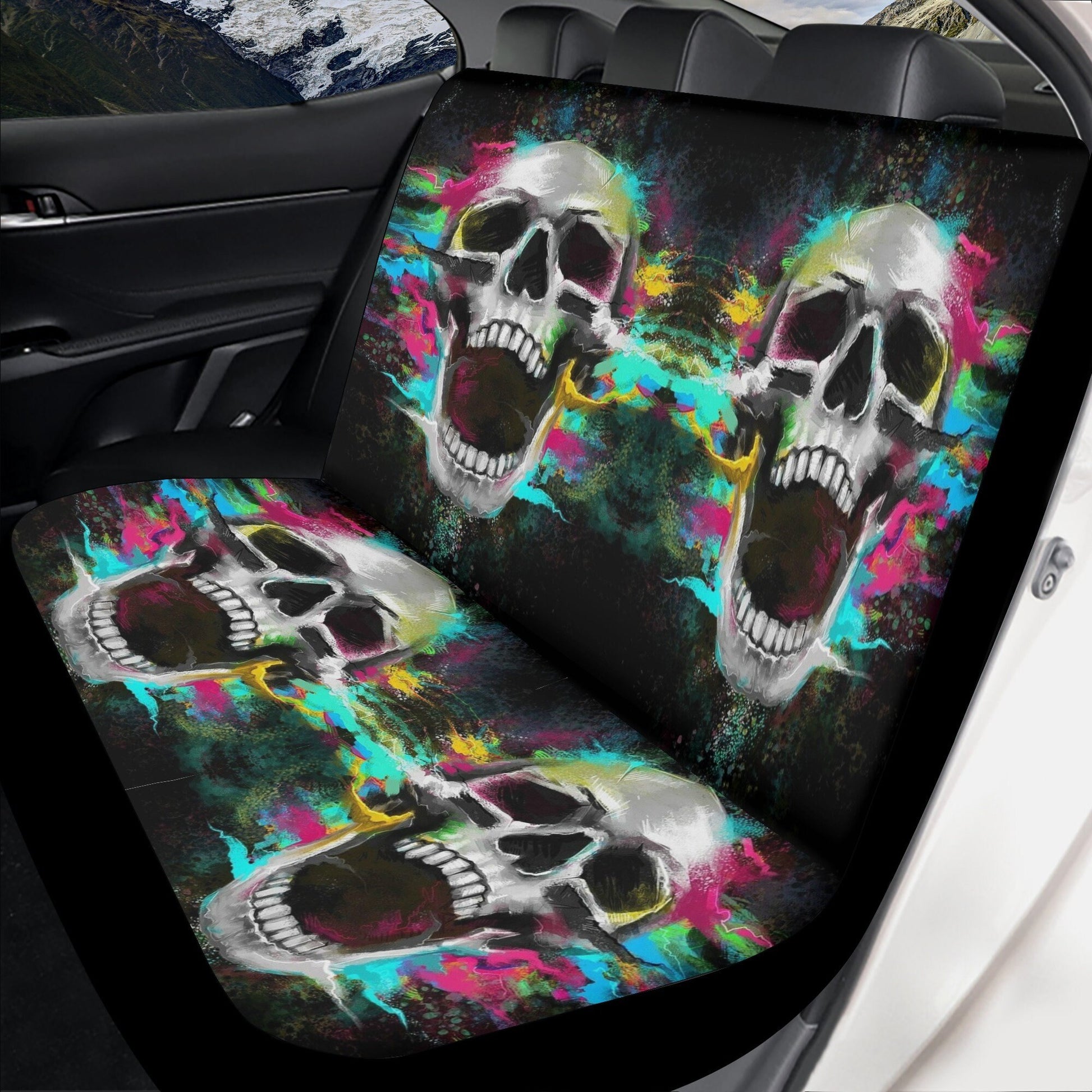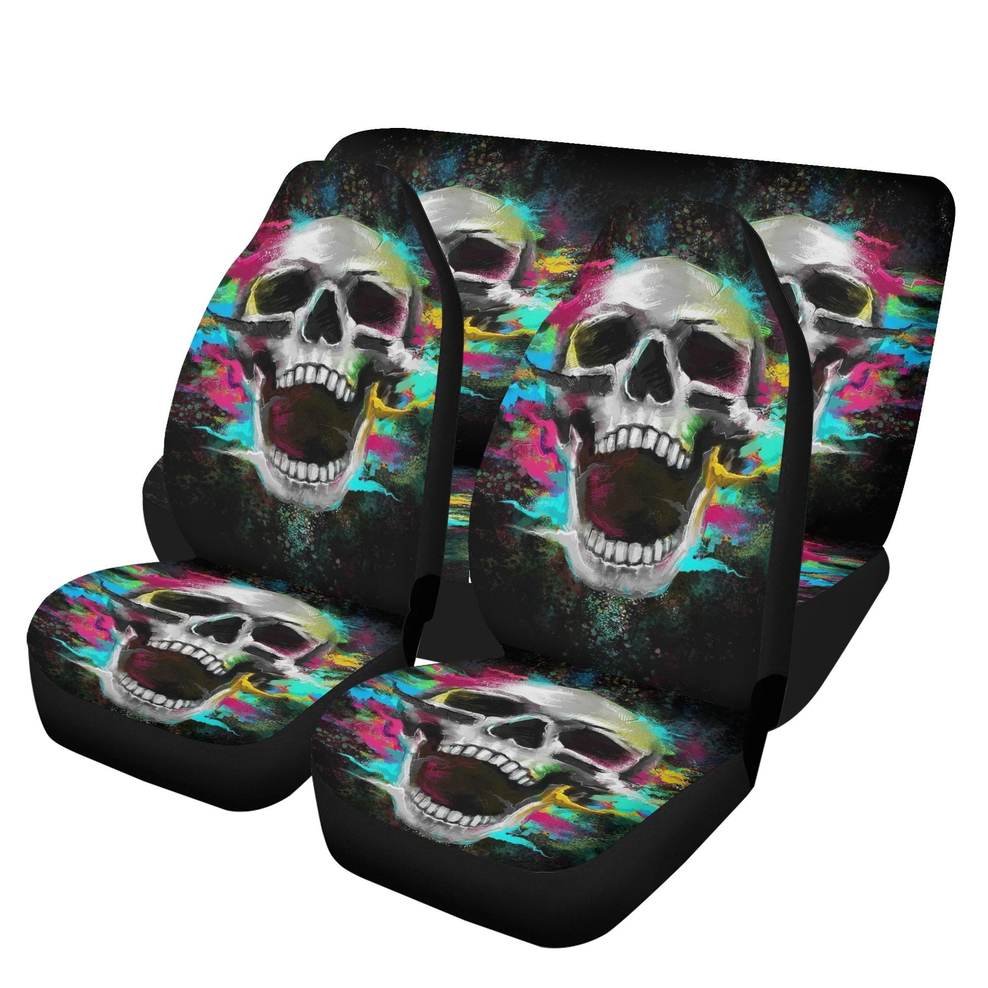 Gothic Skull Car Seat Cover car mat full set, Grim reaper skull seat cover mat for car Flaming skull gothic car seat cover Halloween car mat