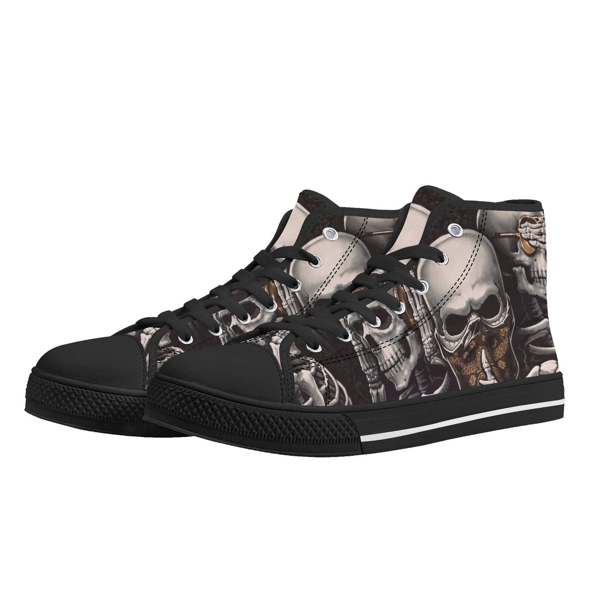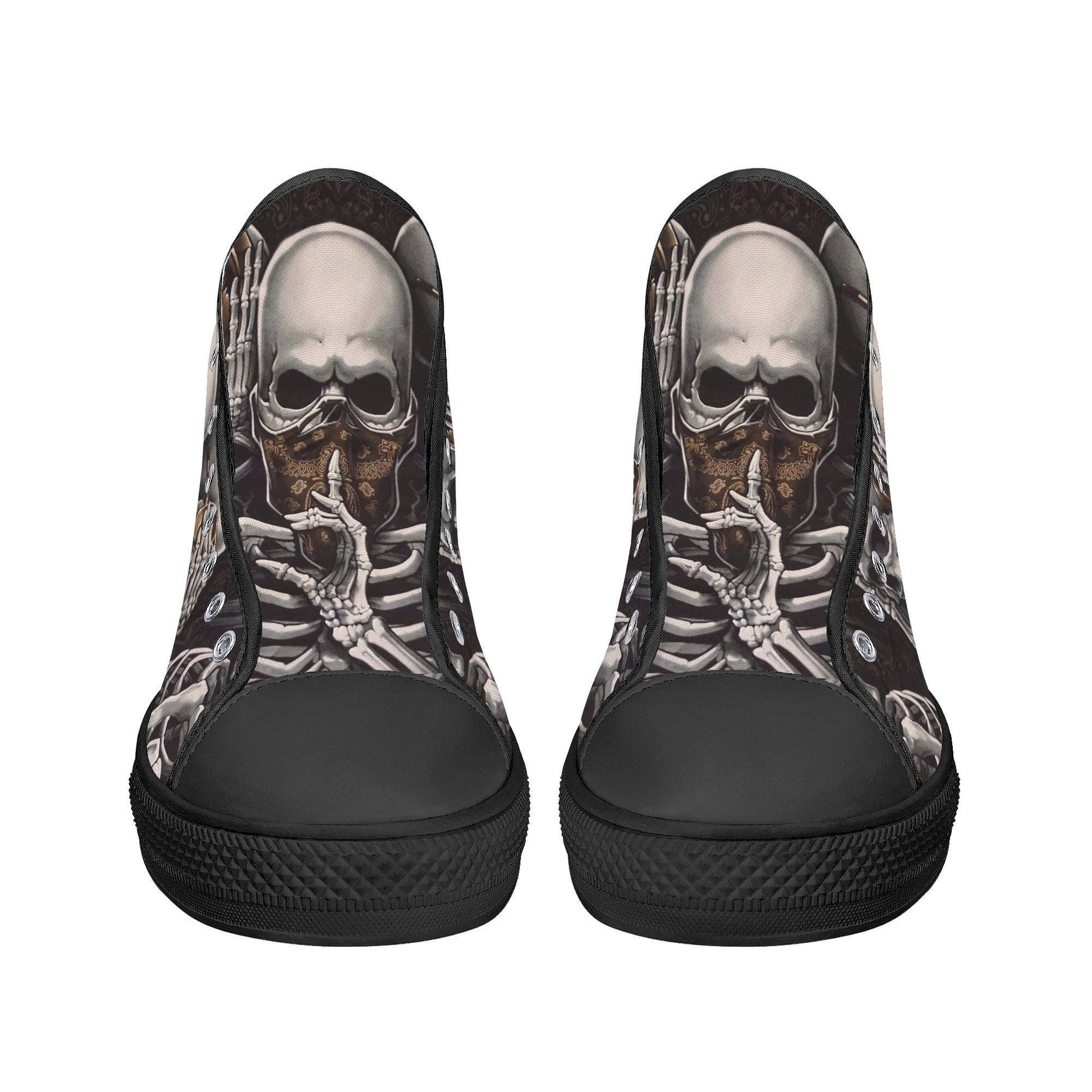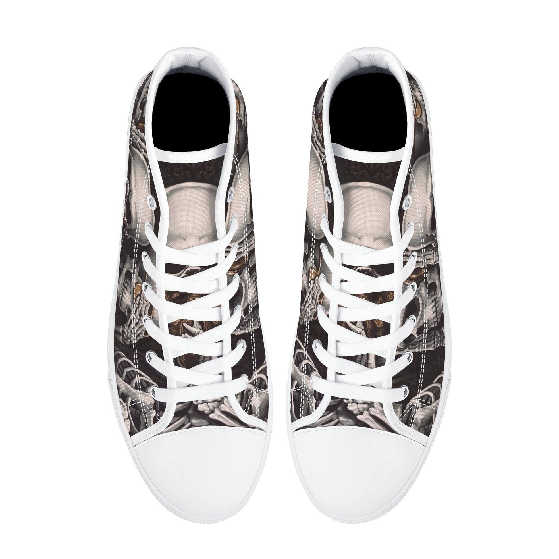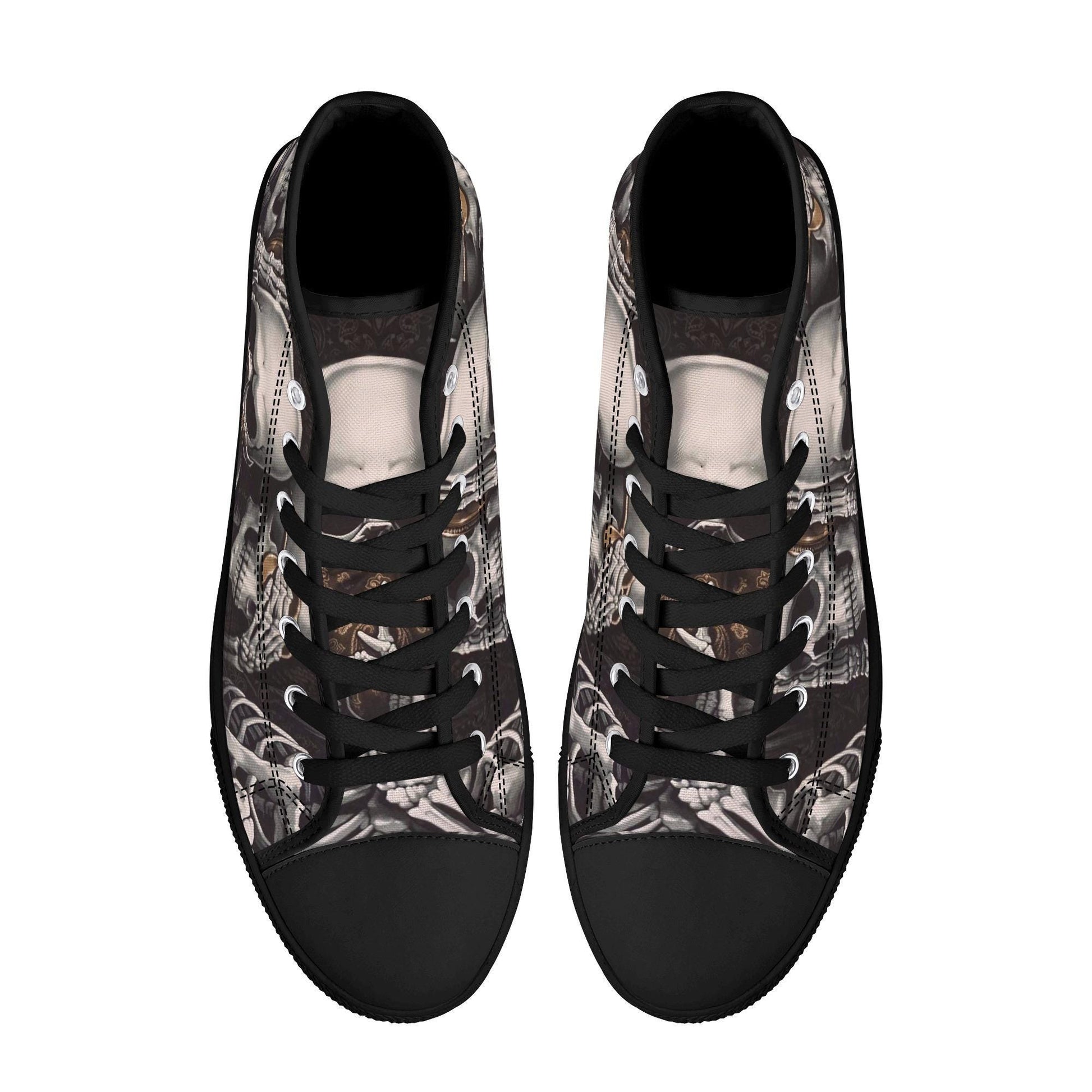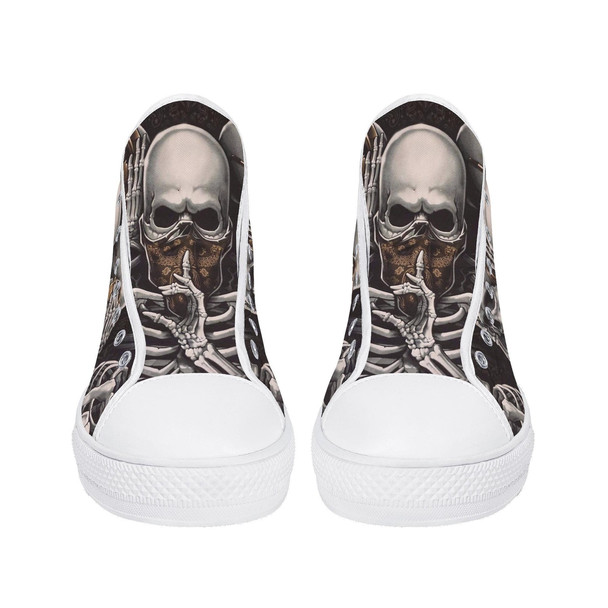 Death skull shoes for her, skeleton men shoes, biker skull hight top sneakers, horror hight top sneakers, rose skull sneakers, rose skull causual sneakers, death skull shoes gift, skeleton men shoes, floral skull shoes for her, punisher skull shoes WOMEN SIZE Size______Foot Length (cm) US5_______23.3cm US5.5_____24cm US6_______24.6cm US7_______25.3cm US8_______26cm US9_______26.7cm US10______27.3cm US11______28cm US11.5____28.7cm US12______29.3cm MEN SIZE Size______Foot Length (cm) US5_______25.3cm US6_______26cm US7_______26.7cm US7.5_____27.3cm US8.5_____28cm US9.5_____28.7cm US10_______29.3cm US11______30cm US12_____30.7cm US13______31.3cm US14______32cm All of our High-Top Shoes are custom-made-to-order and handcrafted to the highest quality standards. Full canvas double sided print with rounded toe construction. Lace-up closure for a snug fit. Metal eyelets for a classic look Soft textile lining with lightweight construction for maximum comfort. High quality outsole for traction and exceptional durability. Highbury insole make the the shoes comfortable and soft ,and scaly sole increases slip resistance The upper is made of canvas and the sole is made of rubber Feature: Wear-resistant and breathable,Fashion Trend Season: Autumn, Spring, Summer, Winter Occasion: Outdoor, Daily Gender:Men, Womne Care Instruction: Spot clean only Custom area is the upper, for custom areas please refer to yoycol mockup generator for details This product is made on demand. No minimums Multiple shipping options available, and cost varies on time efficiency. ======== All products in our store are only manufactured upon receiving an order from the customer. Please carefully review the product description and dimensions in the illustrative images before placing an order. The following cases are not eligible for return/exchange: 1. The product you receive matches the description. 2. The product dimensions (with illustrative images describing the dimensions) you receive match the description. 3. The product has been customized as per your request (e.g., printed with your name/image).