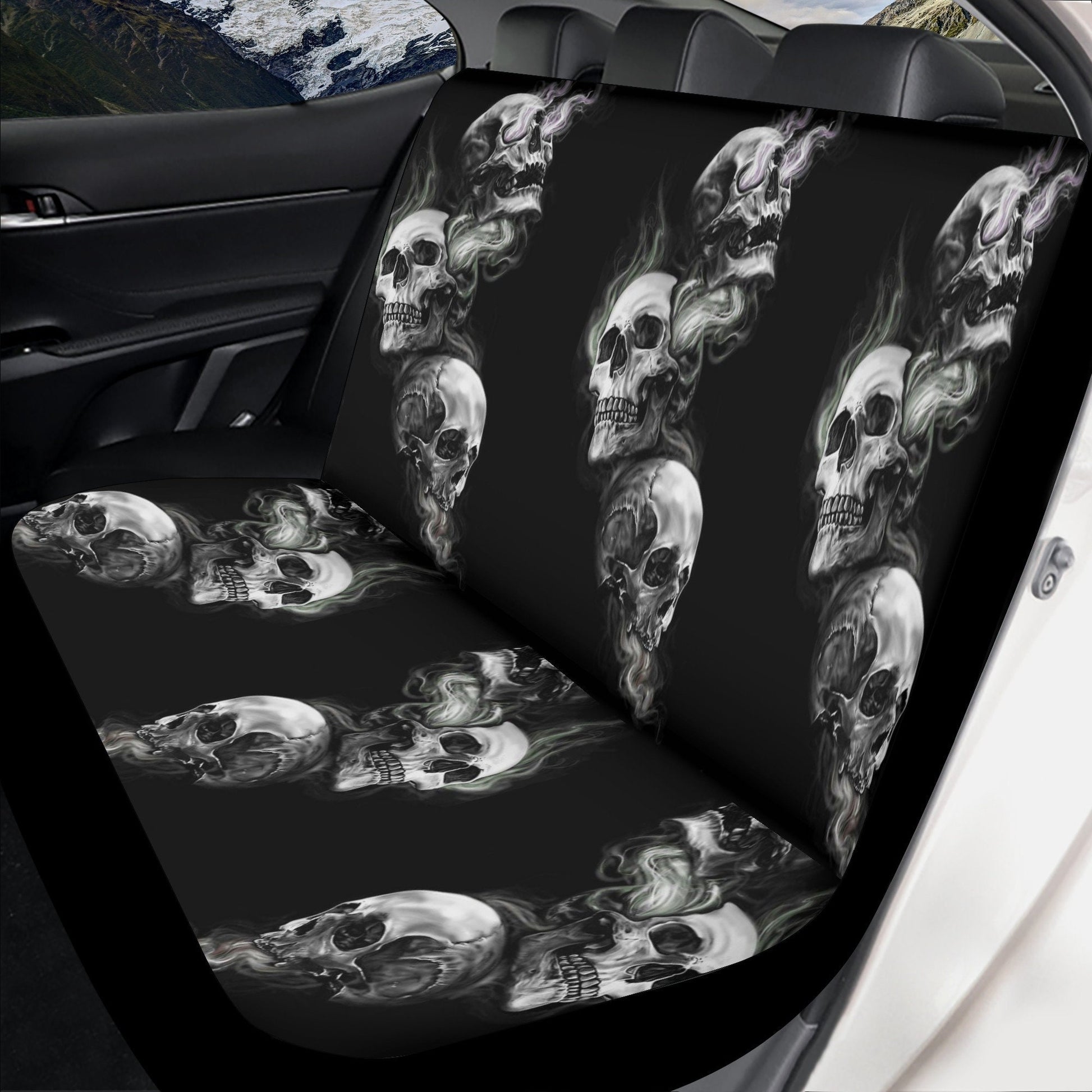 Gothic Skulls Car Seat Cover car mat Skeleton death seat cover mat Flaming skull car seat protector skull mat skeleton car mat seat tool, Skull Car Seat Cover car mat Halloween death seat cover mat ghost car seat protector cover Death skull mat skeleton car mat seat protector Constructed with high quality polyester micro-fiber fabric for maximum durability and comfort. Add style to your seats while protecting them from spills, stains, tearing, fading and more. Designed for quick and easy installation on most car and SUV bucket style seats - no tools required. Elastic backing and fastening system ensures a snug and secure universal fit on most standard car and SUV seats. Not for use on seats with integrated airbags, seatbelts or armrests. Size: Front seat cover: 19 in x 20 in x 31 in x 18 in (please see photo for detail) Back seat cover: 23 in x 30 in x 47 in (please see photo for detail) ==== Car mats All of our Front And Back Car Mats are custom-made-to-order and handcrafted to the highest quality standards. Add style to your car while keeping your floors clean and protected! Features a durable and easy-to-clean custom print constructed from a waterproof polyester material. Rubberized backing with black finished edges ensures a secure grip and skid-free placement. Keep your car floors protected from dirt, spills and daily wear and tear with these stylish custom printed car floor mats! Size: Front mat: 26in x 17in Back mat: 13in x 17 (see detail in product images) ======== All products in our store are only manufactured upon receiving an order from the customer. Please carefully review the product description and dimensions in the illustrative images before placing an order. The following cases are not eligible for return/exchange: 1. The product you receive matches the description. 2. The product dimensions (with illustrative images describing the dimensions) you receive match the description. 3. The product has been customized as per your request (e.g., printed with your name/image).