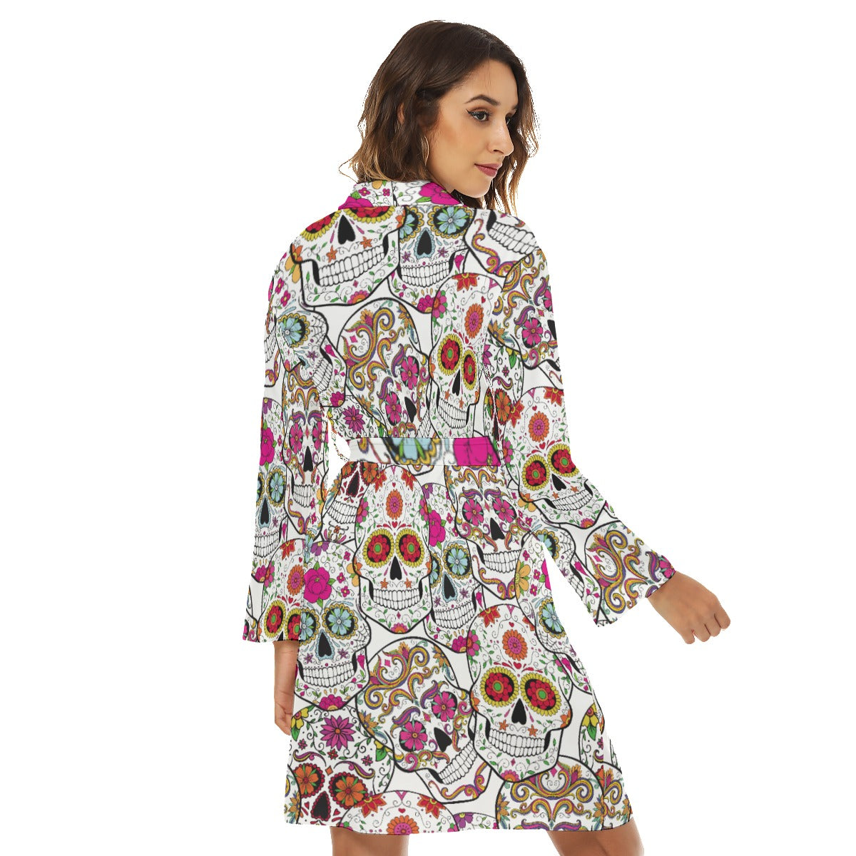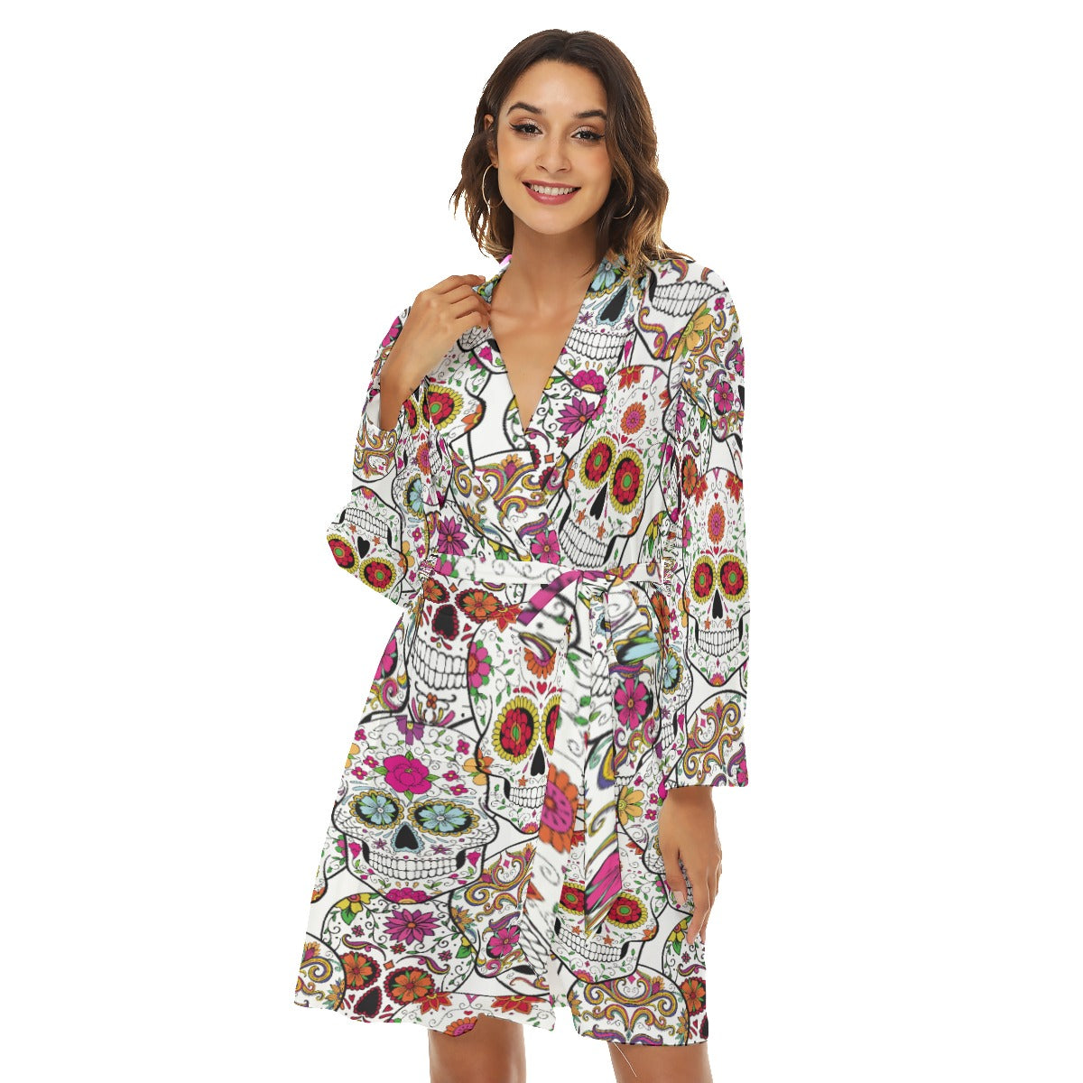 Gothic sugar skull candy skull Women's Robe