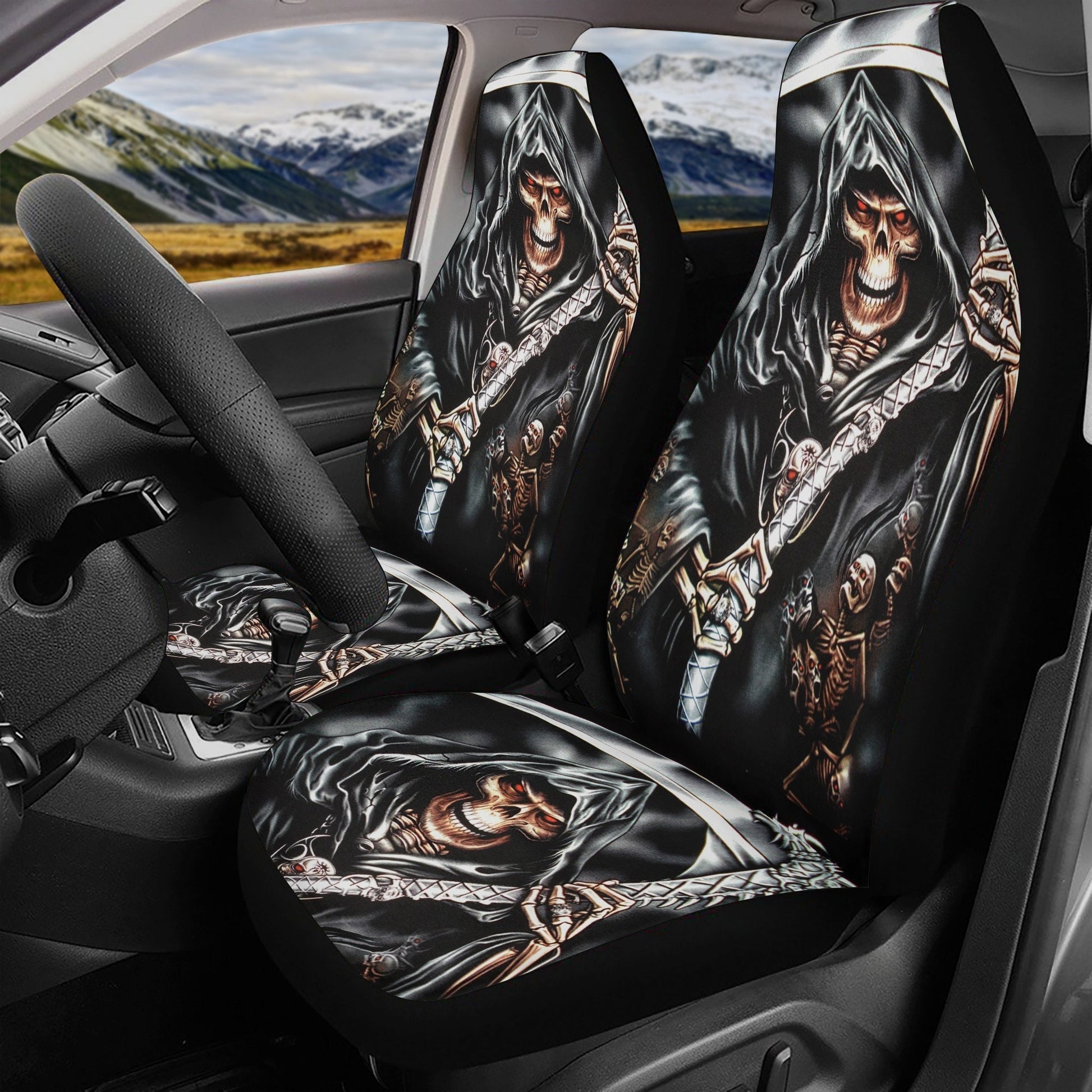 Grim reaper death skull Car Seat Cover car mat, Halloween car seat cover mat gothic skull car seat protector covers mat skeleton car mats