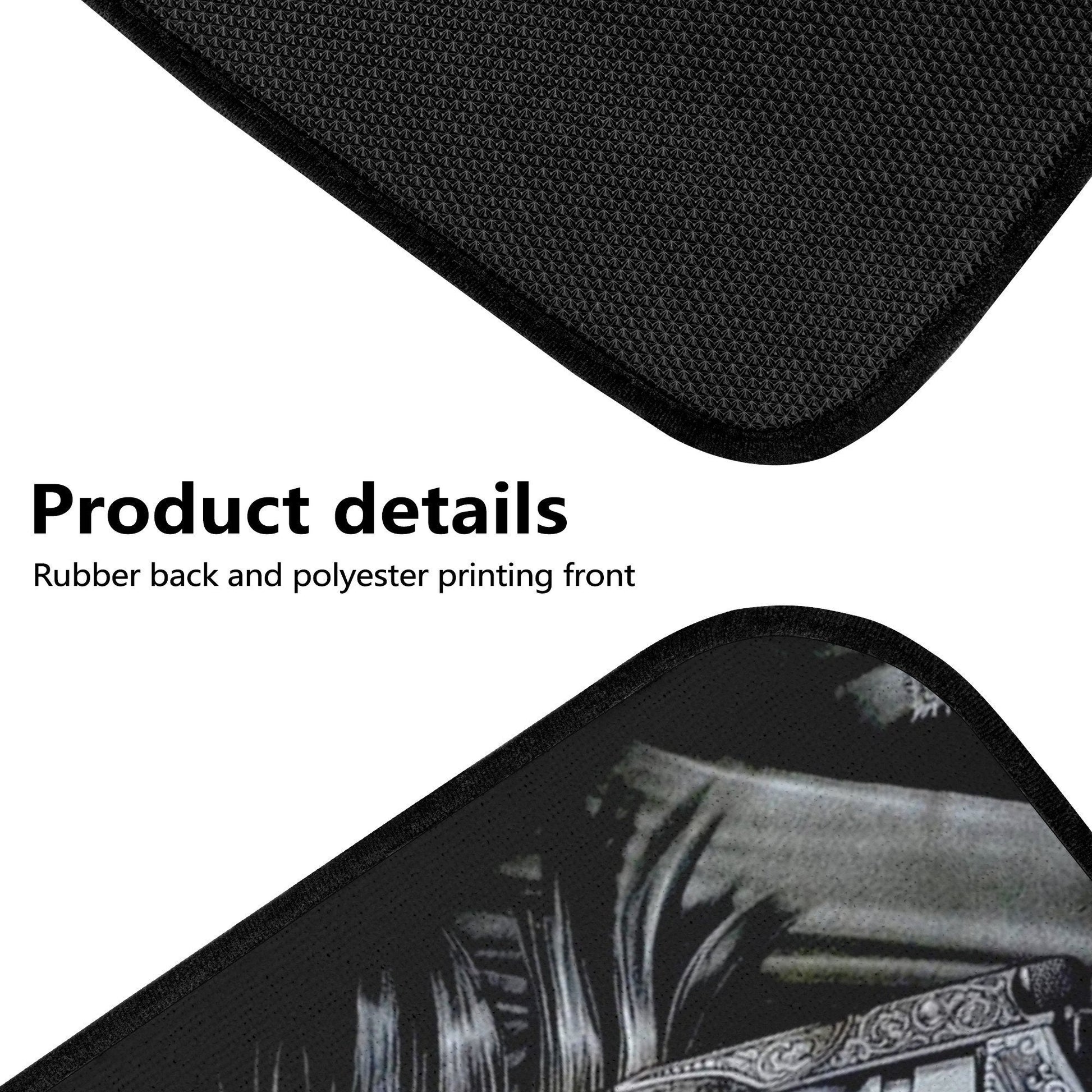 Rubberized backing with black finished edges ensures a secure grip and skid-free placement.