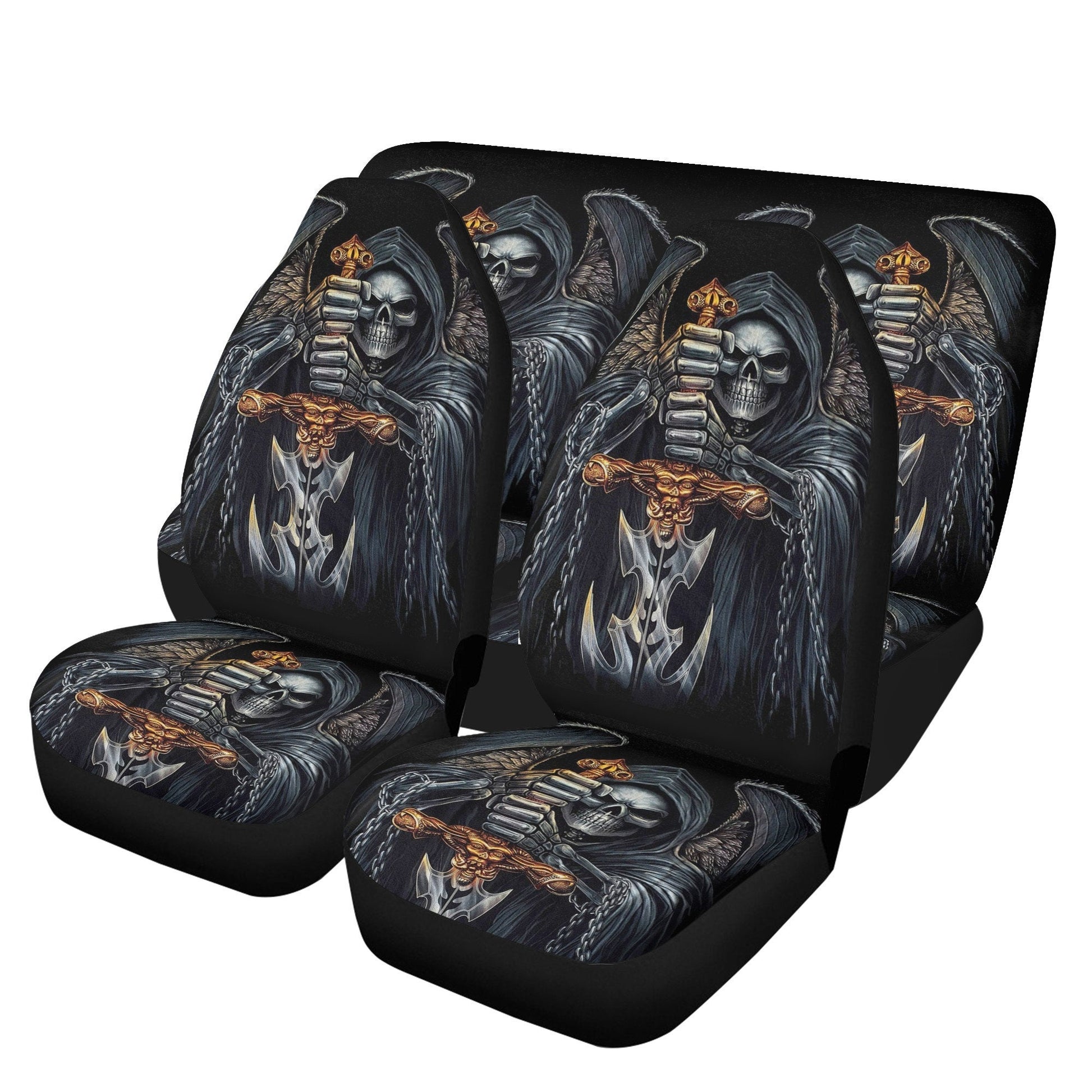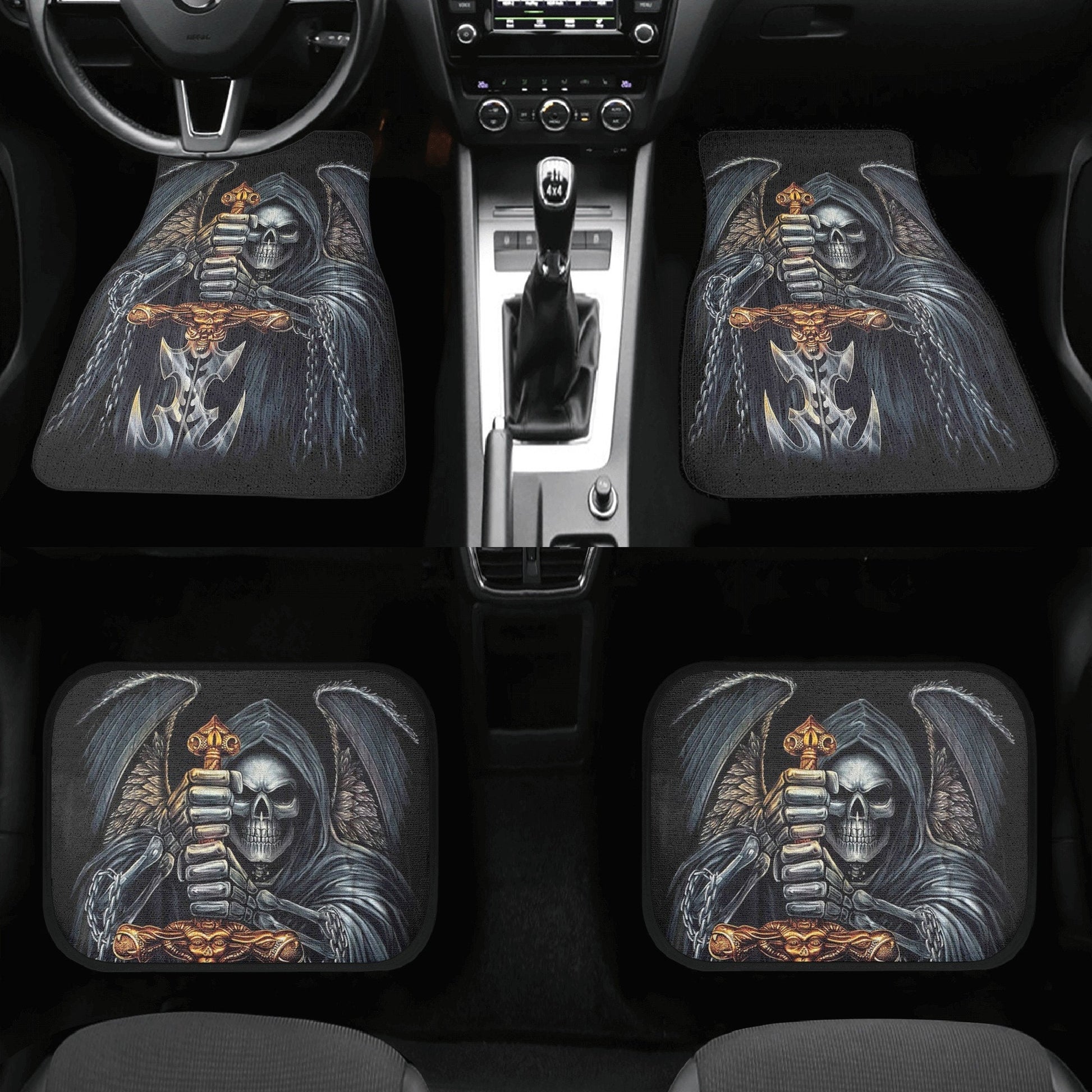 Grim reaper skull car seat cover, skull rug mat for car Halloween gothic car seat cover mat floral skull car seat cover car mat protector