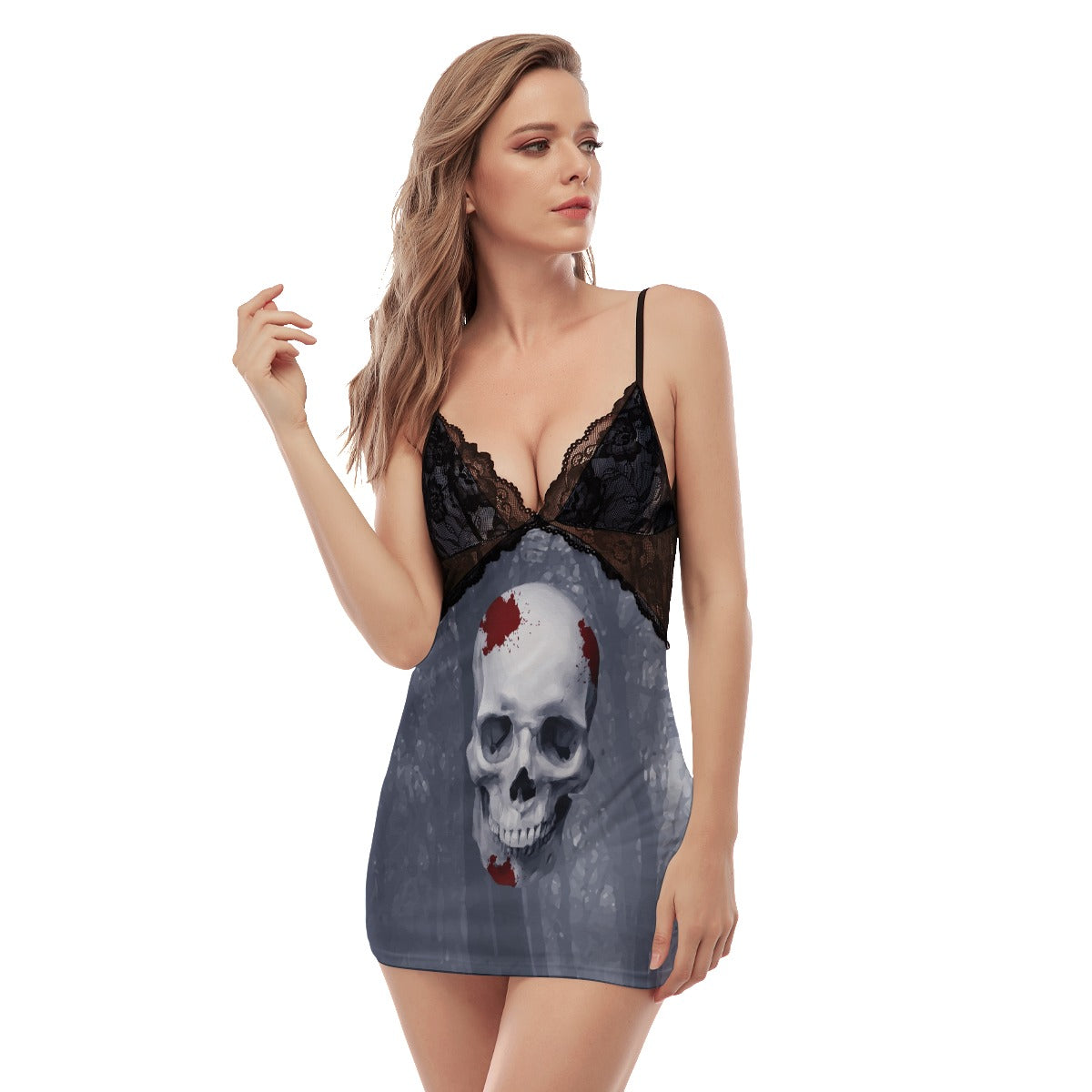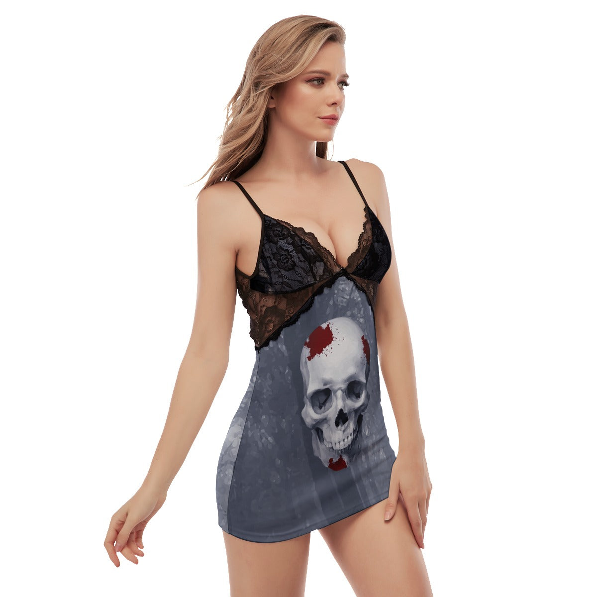 Halloween Mexican skull Calavera Evil Women's Back Straps Cami Dress With Lace