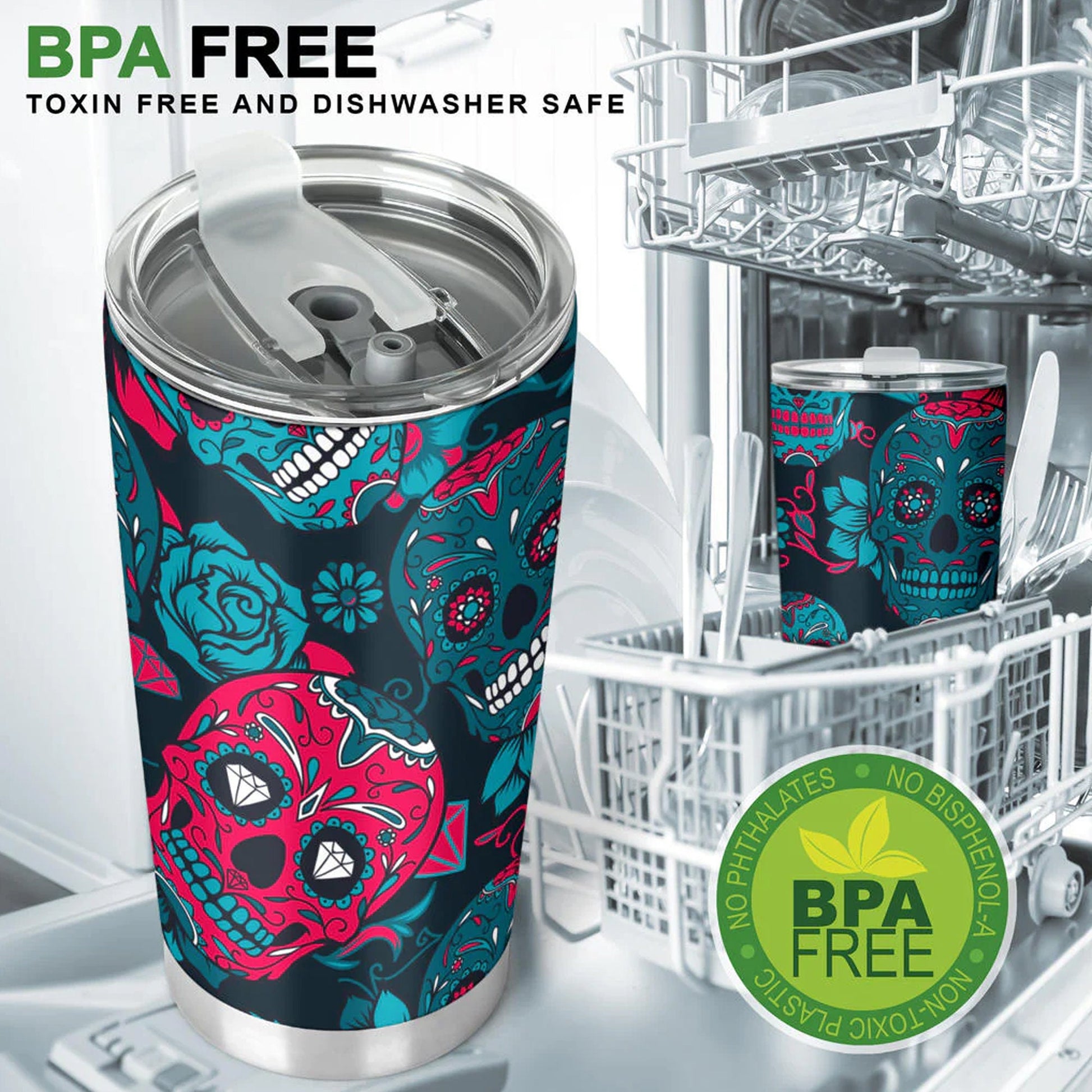 Mexican skull tumbler, sugar skull cup mug tumbler, Day of the dead skull tumbler, skull tumbler mug cup, Candy skull gothic mug cup tumbler