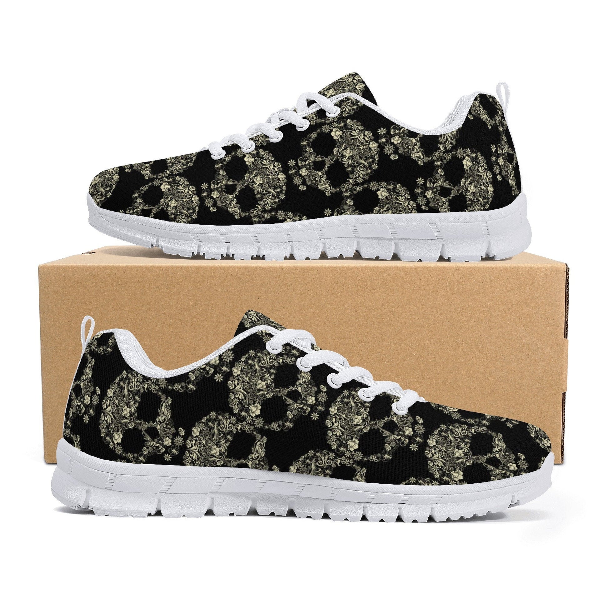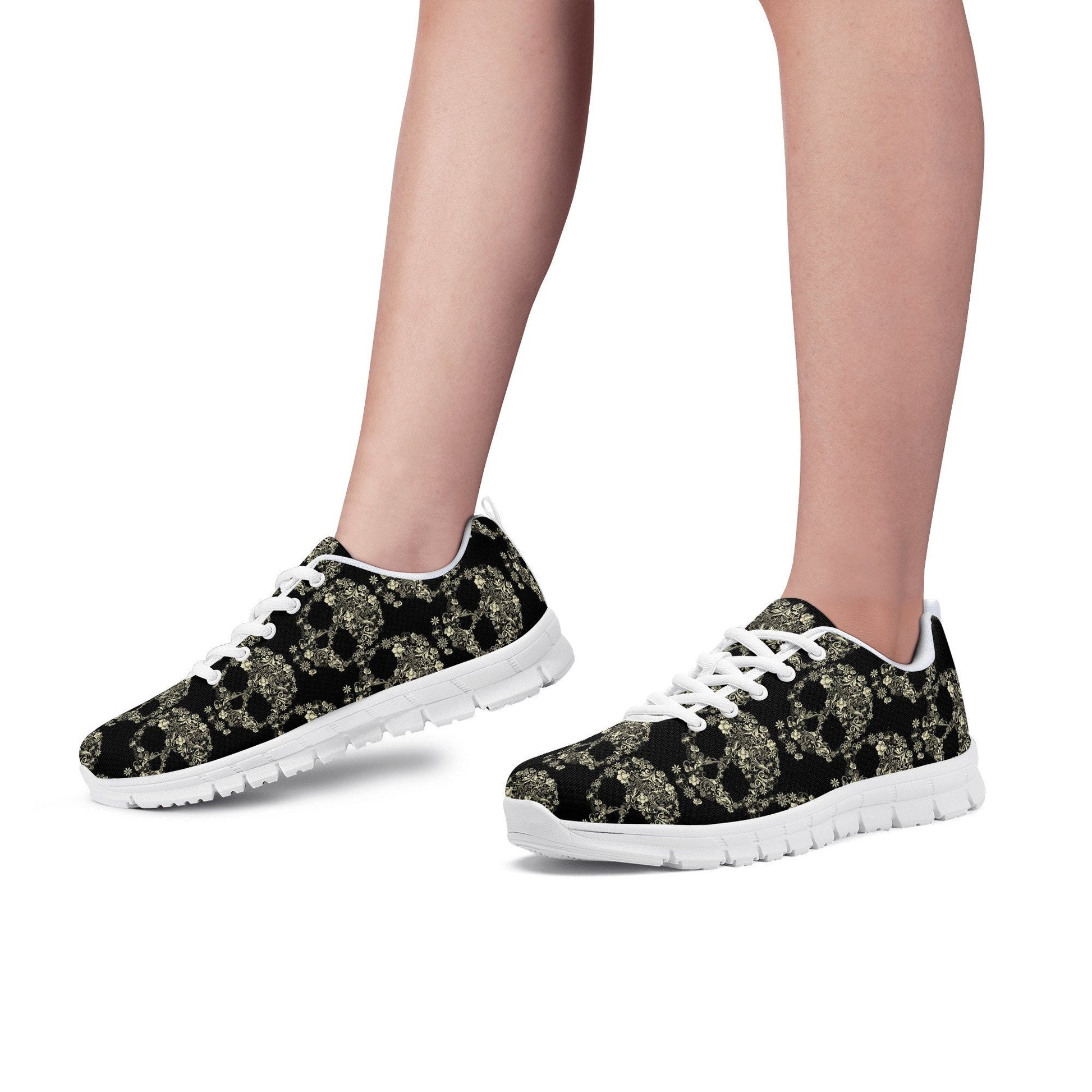 Floral sugar skull lighweight running shoes, day of the dead athletic shoes, sugar skull girl jogging shoes, cinco de mayo skull running shoes, sugar skull jogging shoes, mexican skull casual shoes, calaveras skull running shoes