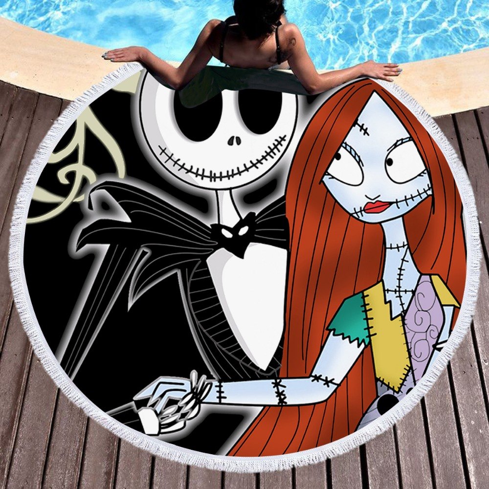 Microfiber Round Large Beach Towel Yoga Mat Tassel Toalla Blanket Nightmare 3d Sugar Skull Printed Big Bath Towel Tapestry