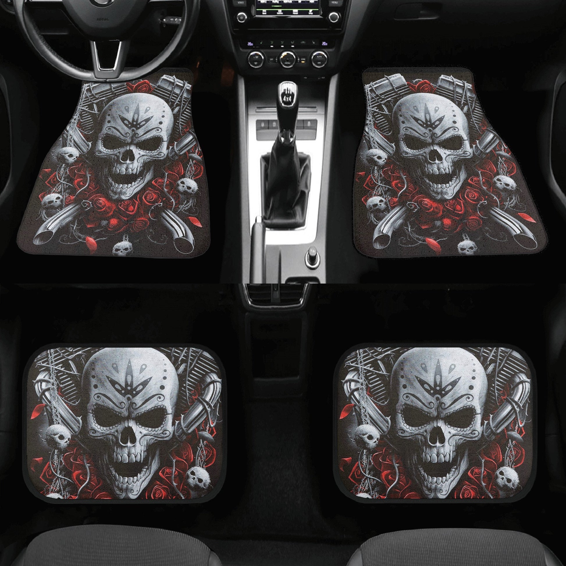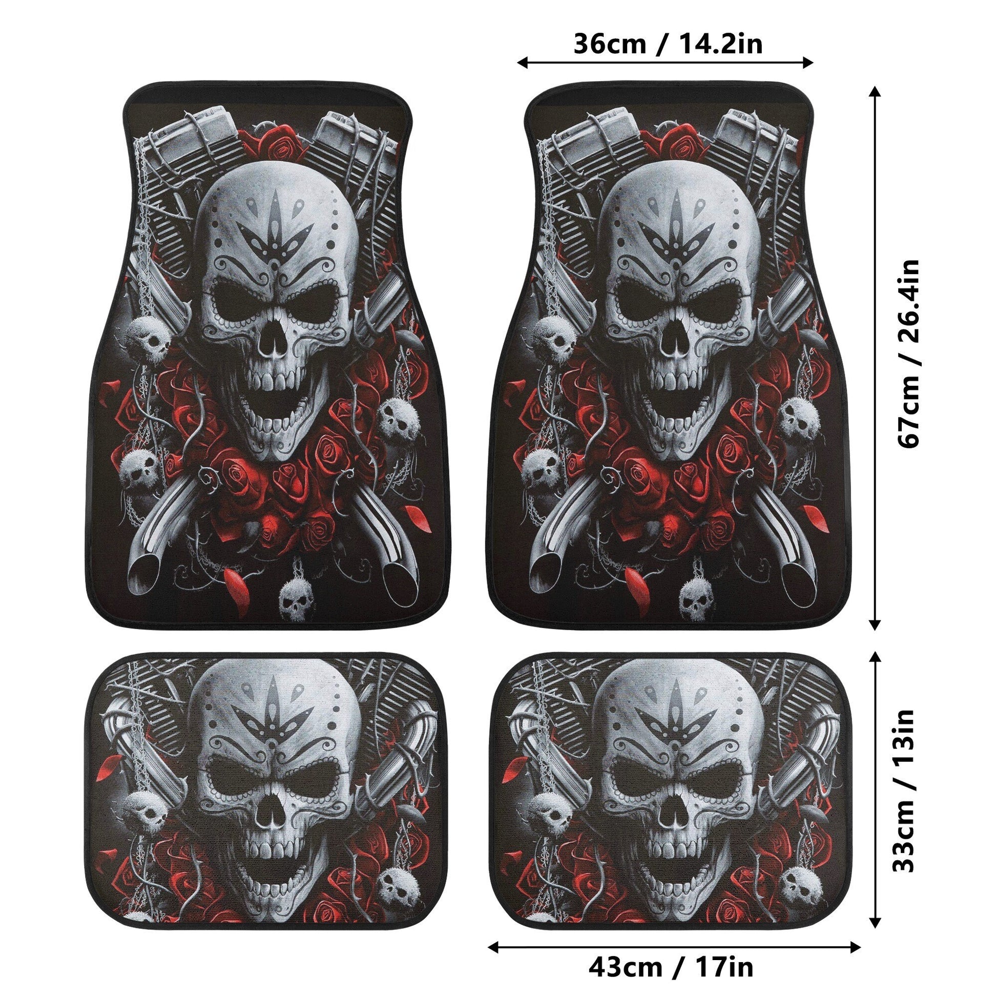 Motorcycle Skull Car Seat Cover car mat, Grim reaper skull seat cover mat for car Biker gothic skull gothic car seat cover Halloween car mat Skull Car Seat Cover car mat full set, skull seat cover mat for car, skull car mat, gothic skull mat seat cover for car Constructed with high quality polyester micro-fiber fabric for maximum durability and comfort. Add style to your seats while protecting them from spills, stains, tearing, fading and more. Designed for quick and easy installation on most car and SUV bucket style seats - no tools required. Elastic backing and fastening system ensures a snug and secure universal fit on most standard car and SUV seats. Not for use on seats with integrated airbags, seatbelts or armrests. Size: Front seat cover: 19 in x 20 in x 31 in x 18 in (please see photo for detail) Back seat cover: 23 in x 30 in x 47 in (please see photo for detail) ==== Car mats All of our Front And Back Car Mats are custom-made-to-order and handcrafted to the highest quality standards. Add style to your car while keeping your floors clean and protected! Features a durable and easy-to-clean custom print constructed from a waterproof polyester material. Rubberized backing with black finished edges ensures a secure grip and skid-free placement. Keep your car floors protected from dirt, spills and daily wear and tear with these stylish custom printed car floor mats! Size: Front mat: 26in x 17in Back mat: 13in x 17 (see detail in product images) ======== All products in our store are only manufactured upon receiving an order from the customer. Please carefully review the product description and dimensions in the illustrative images before placing an order. The following cases are not eligible for return/exchange: 1. The product you receive matches the description. 2. The product dimensions (with illustrative images describing the dimensions) you receive match the description. 3. The product has been customized as per your request (e.g., printed with your name/image).