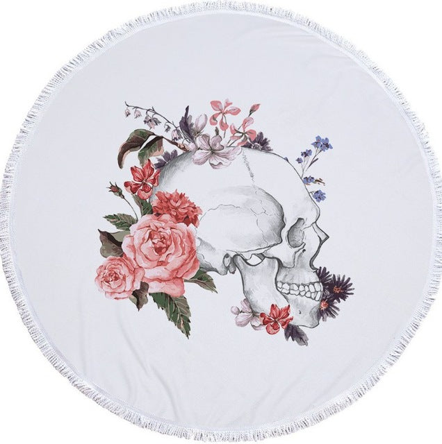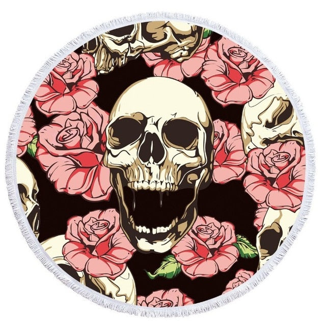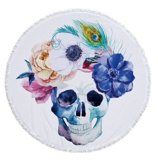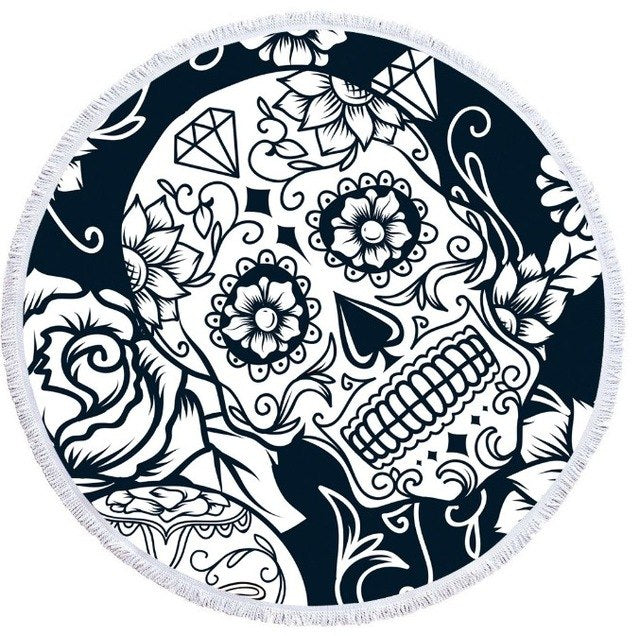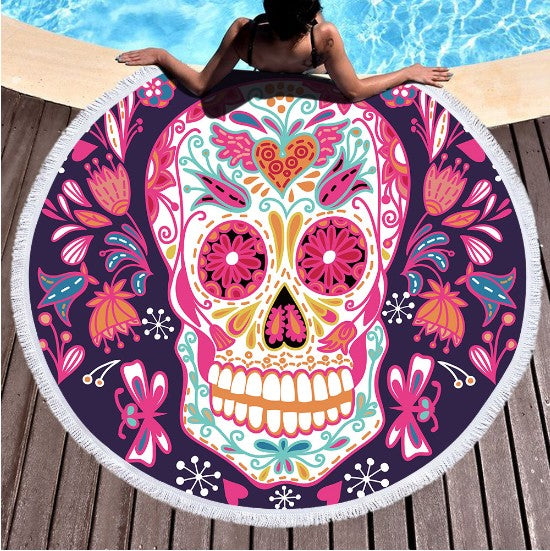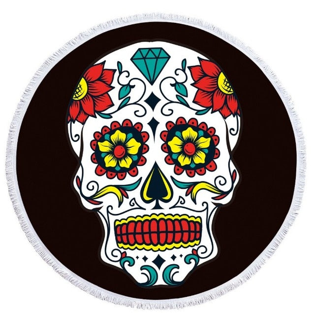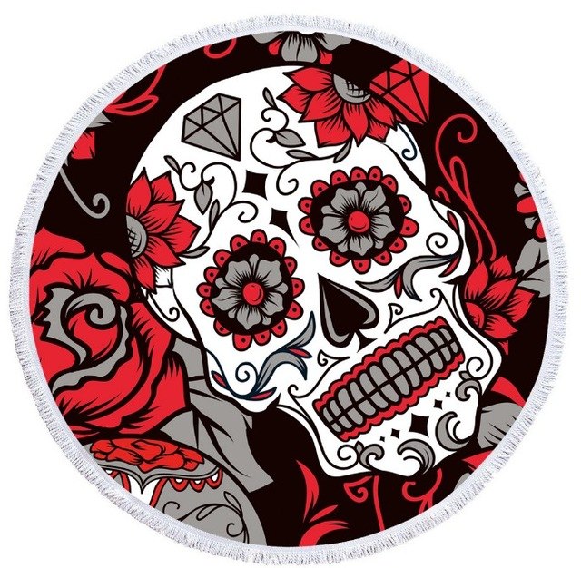 New Popular Sugar Skull Printed Large Round Beach Towel for Adults Microfiber Summer Towel Yoga Mat 150cm Beach Blanket