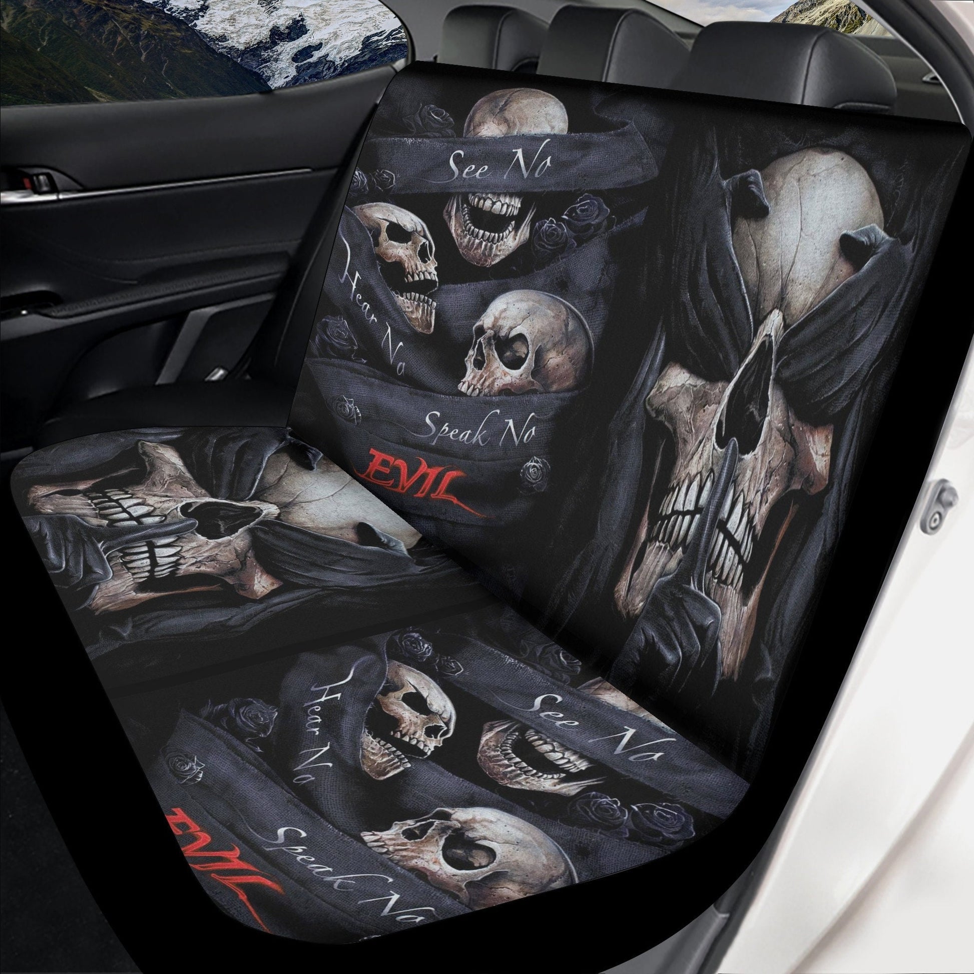 No see no hear no speak evils skull car seat cover car mat, gothic skull car seat cover mats, Halloween evils skull car protector cover mat