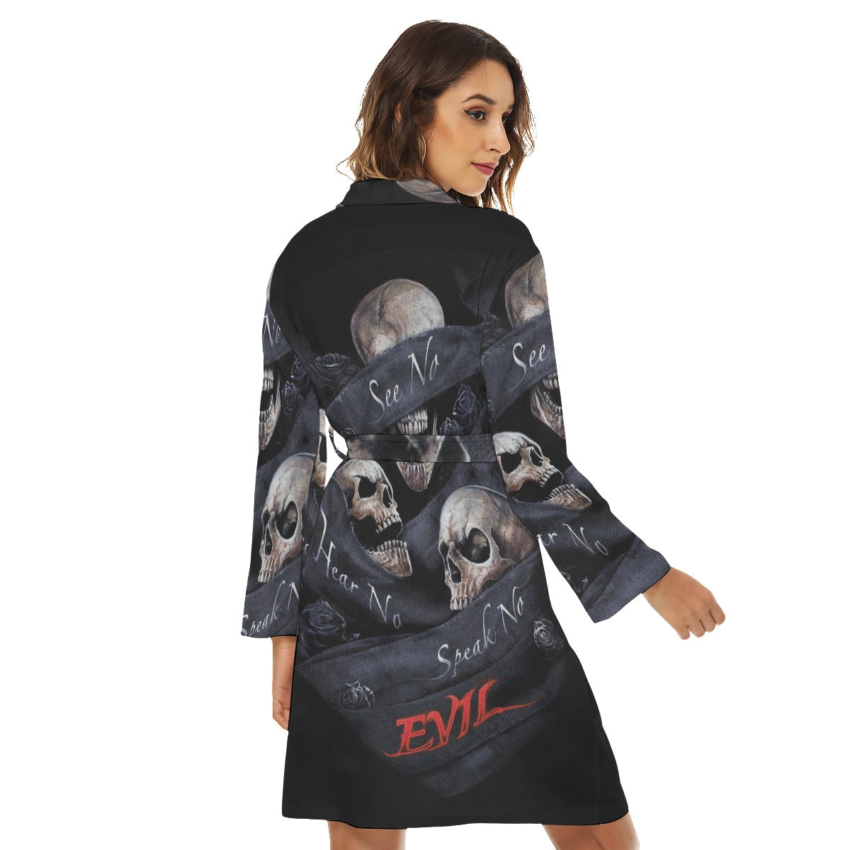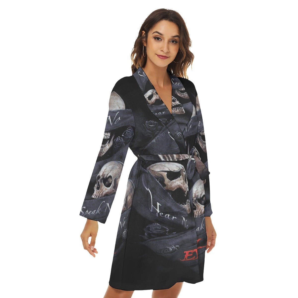 No see no hear no speak evils Women's Robe, Gothic skull bath robe pijama, skull sleep cloth