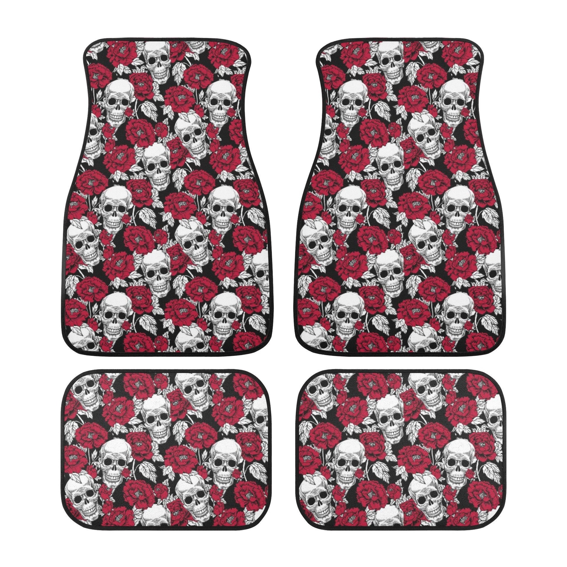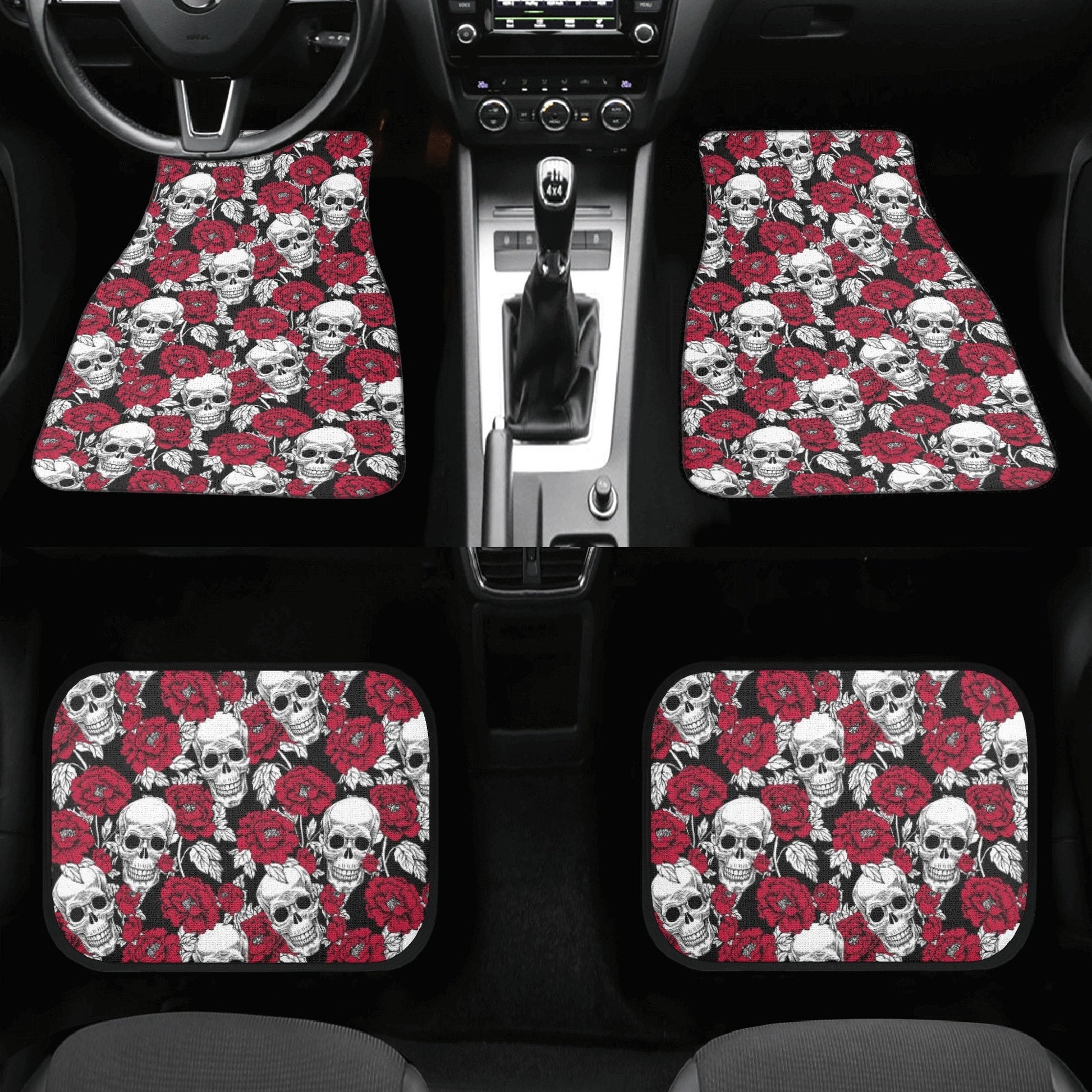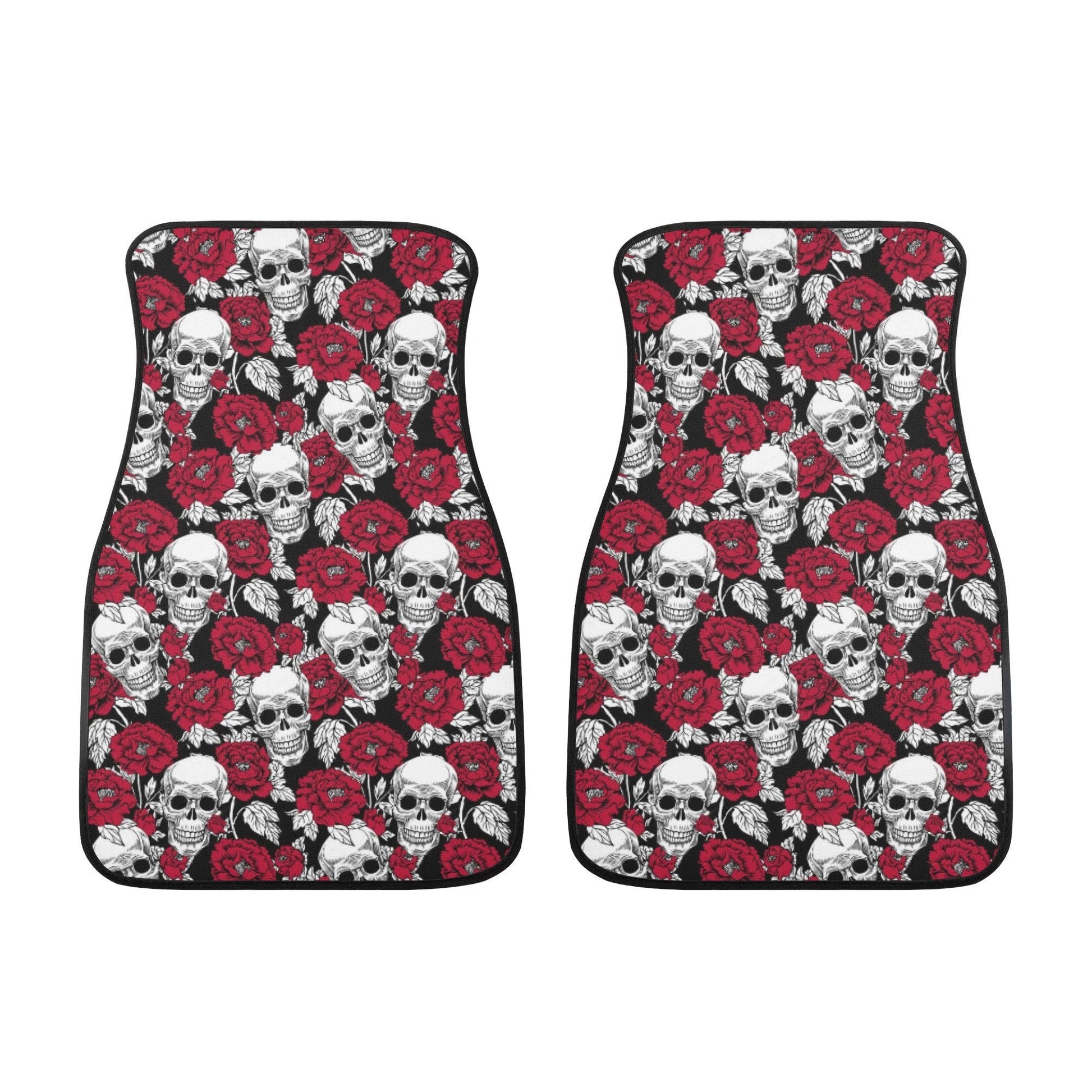 Floral skull car seat cushion cover, horror car accessories, death skull seat cover for truck, goth car mat flooring, christmas skull cover cushion accessories for Cars, goth car accessories, horror car rug, flower skull rug for car, flame skull car truck seat cover car mat