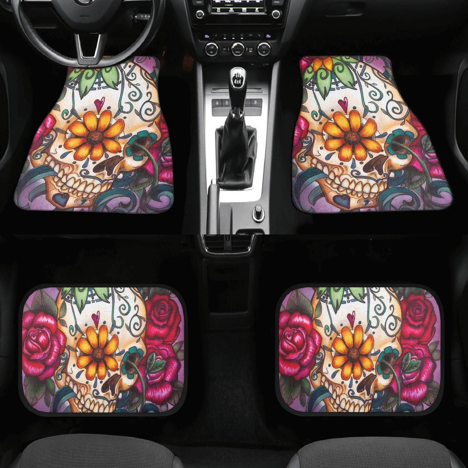 Rose Sugar skull Car Seat Covers car mat flower skull car seat protector Floral Mexican skull car mat candy skull car accessories seat cover Constructed with high quality polyester micro-fiber fabric for maximum durability and comfort. Add style to your seats while protecting them from spills, stains, tearing, fading and more. Designed for quick and easy installation on most car and SUV bucket style seats - no tools required. Elastic backing and fastening system ensures a snug and secure universal fit on most standard car and SUV seats. Not for use on seats with integrated airbags, seatbelts or armrests. Size: 19 in x 20 in x 31 in x 18 in (please see photo for detail) ==== Car mats All of our Front And Back Car Mats are custom-made-to-order and handcrafted to the highest quality standards. Add style to your car while keeping your floors clean and protected! Features a durable and easy-to-clean custom print constructed from a waterproof polyester material. Rubberized backing with black finished edges ensures a secure grip and skid-free placement. Keep your car floors protected from dirt, spills and daily wear and tear with these stylish custom printed car floor mats! Size: Front mat: 26in x 17in Back mat: 13in x 17 (see detail in product images) ======== All products in our store are only manufactured upon receiving an order from the customer. Please carefully review the product description and dimensions in the illustrative images before placing an order. The following cases are not eligible for return/exchange: 1. The product you receive matches the description. 2. The product dimensions (with illustrative images describing the dimensions) you receive match the description. 3. The product has been customized as per your request (e.g., printed with your name/image).