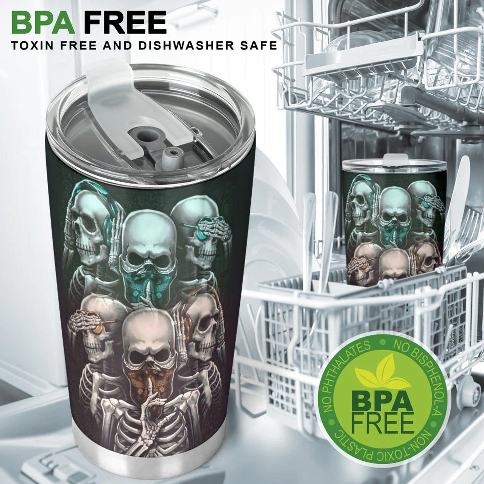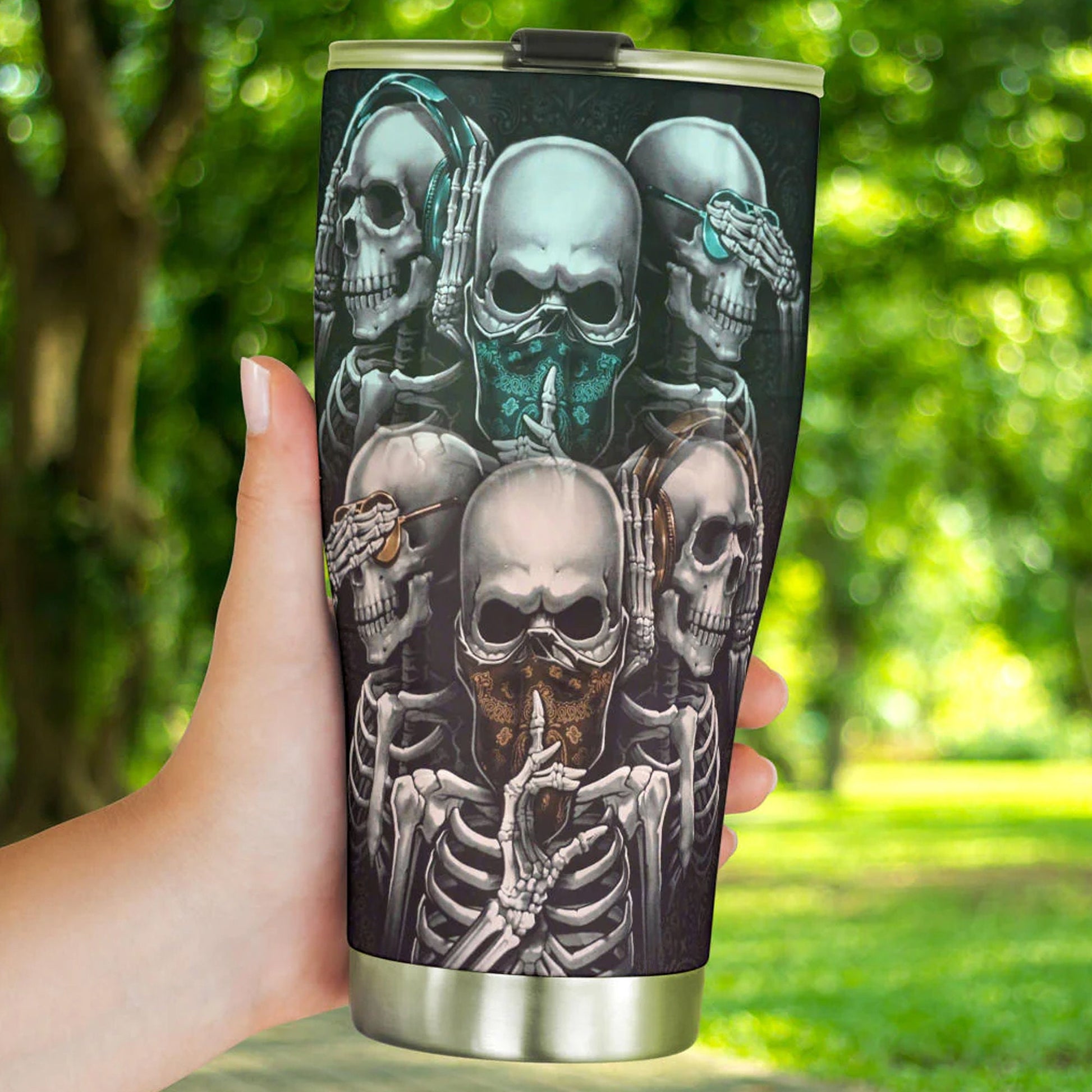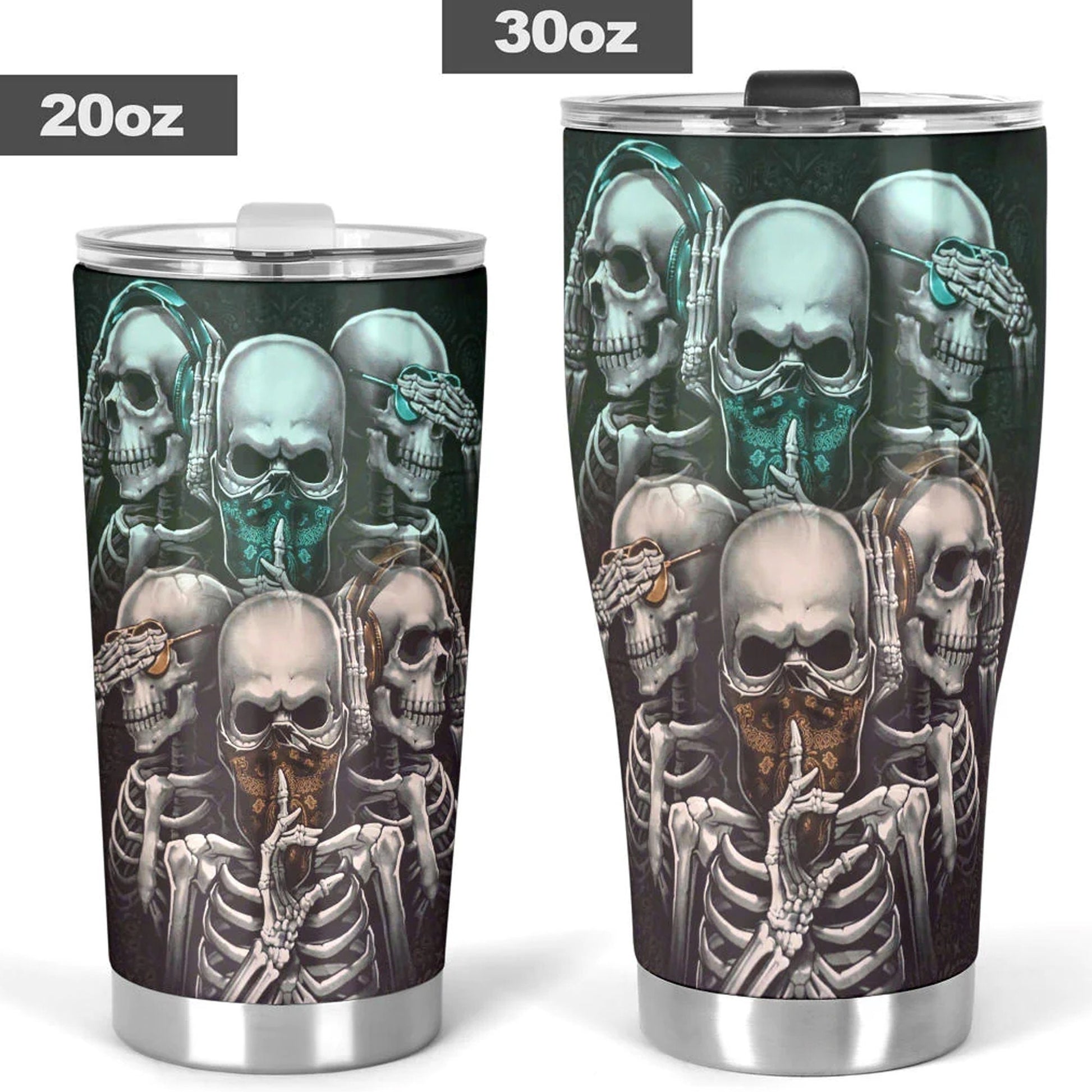 See no hear no speak no skull, Gothic skull cup mug tumblr, skull travel tumbler, skull mug grim reaper gothic mug cup to travel, skull mug