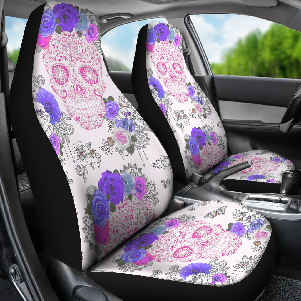 Set 2 pcs Floral sugar skull day of the dead skull car seat covers