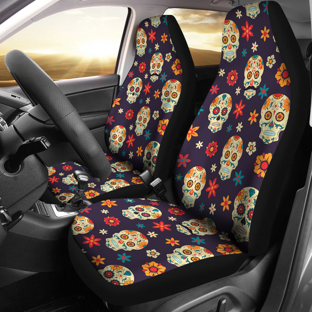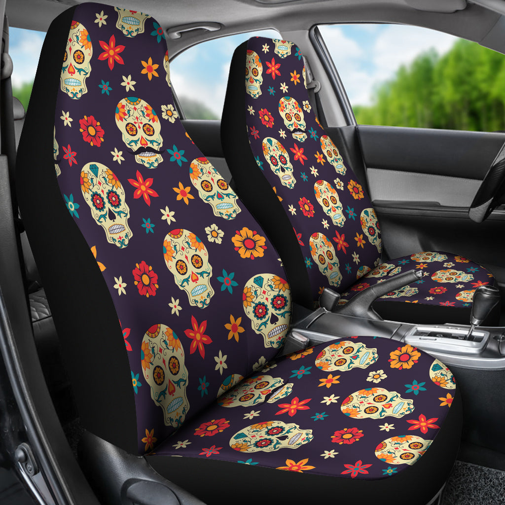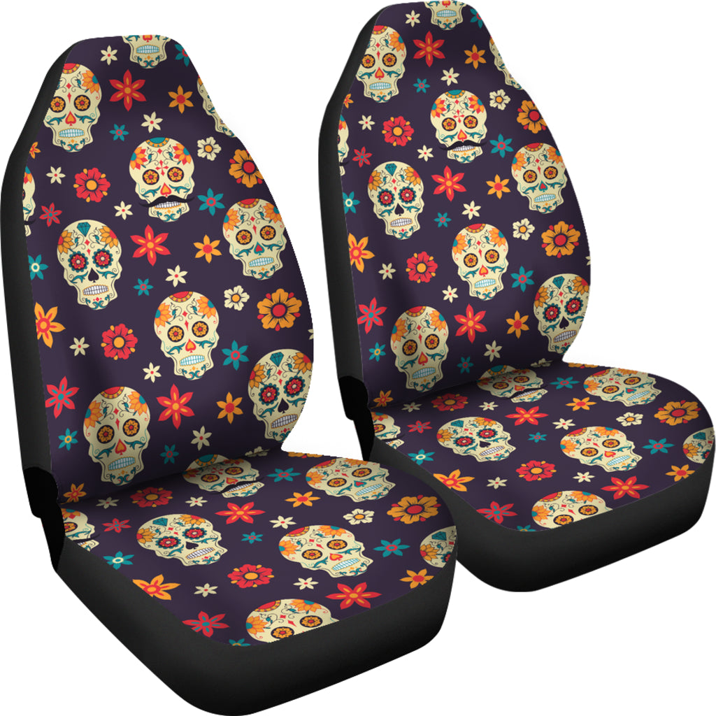 Set of 2 pcs Day of the dead sugar skull seat covers