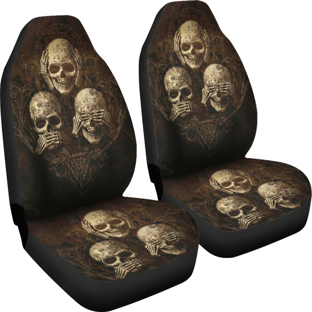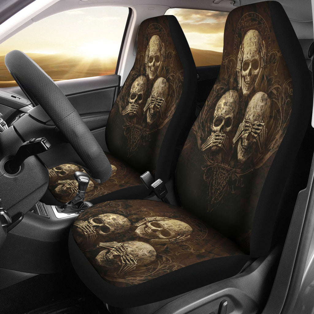 Set of 2 pcs - No hear no see no speak skull car seat covers