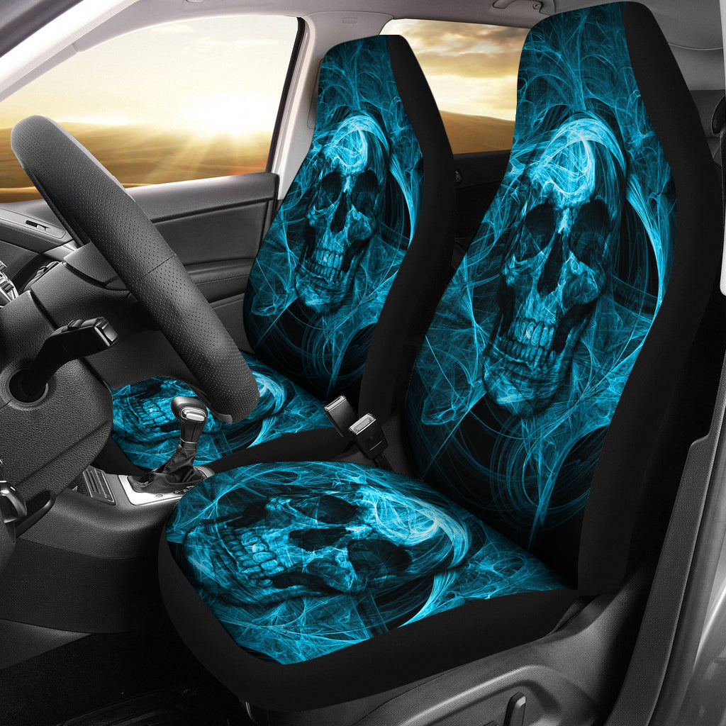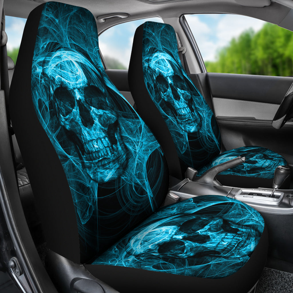 Set of 2 pcs seat cover flaming skull gothic car seat cover