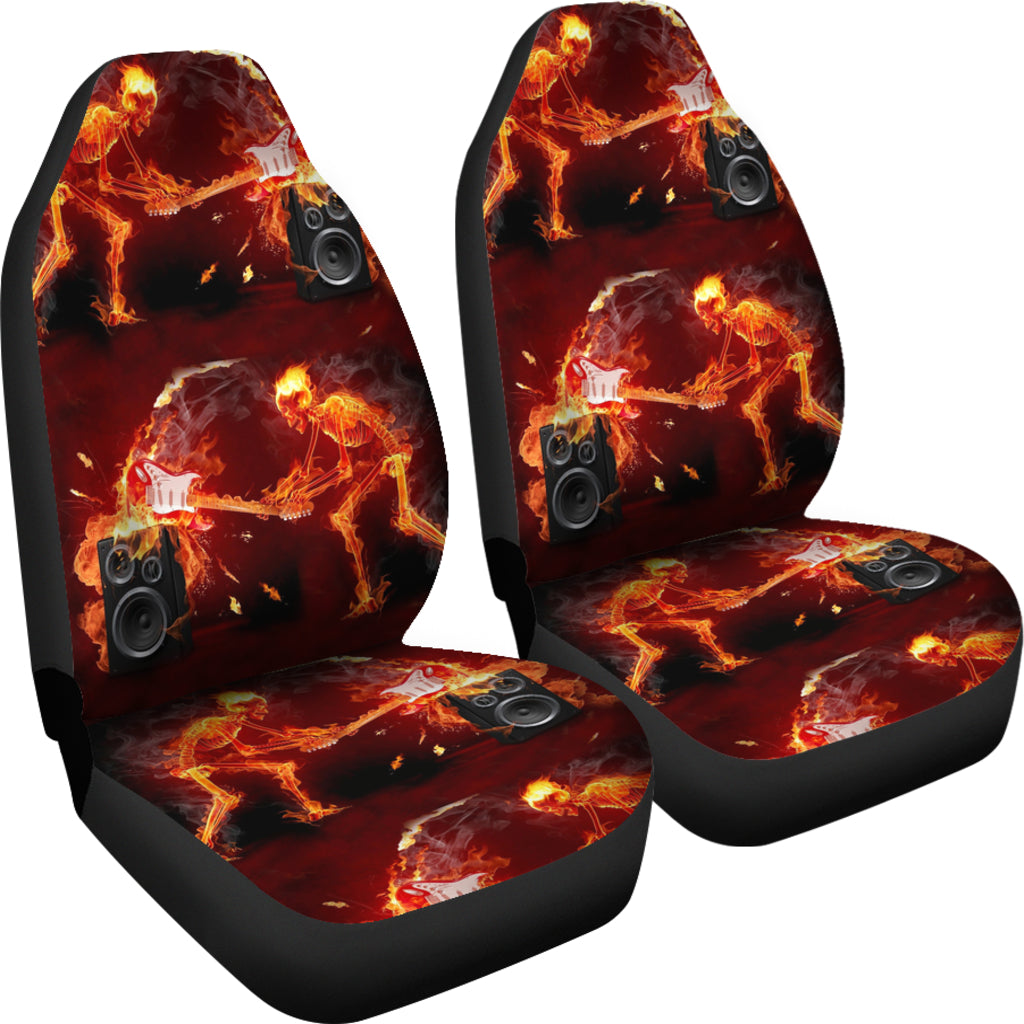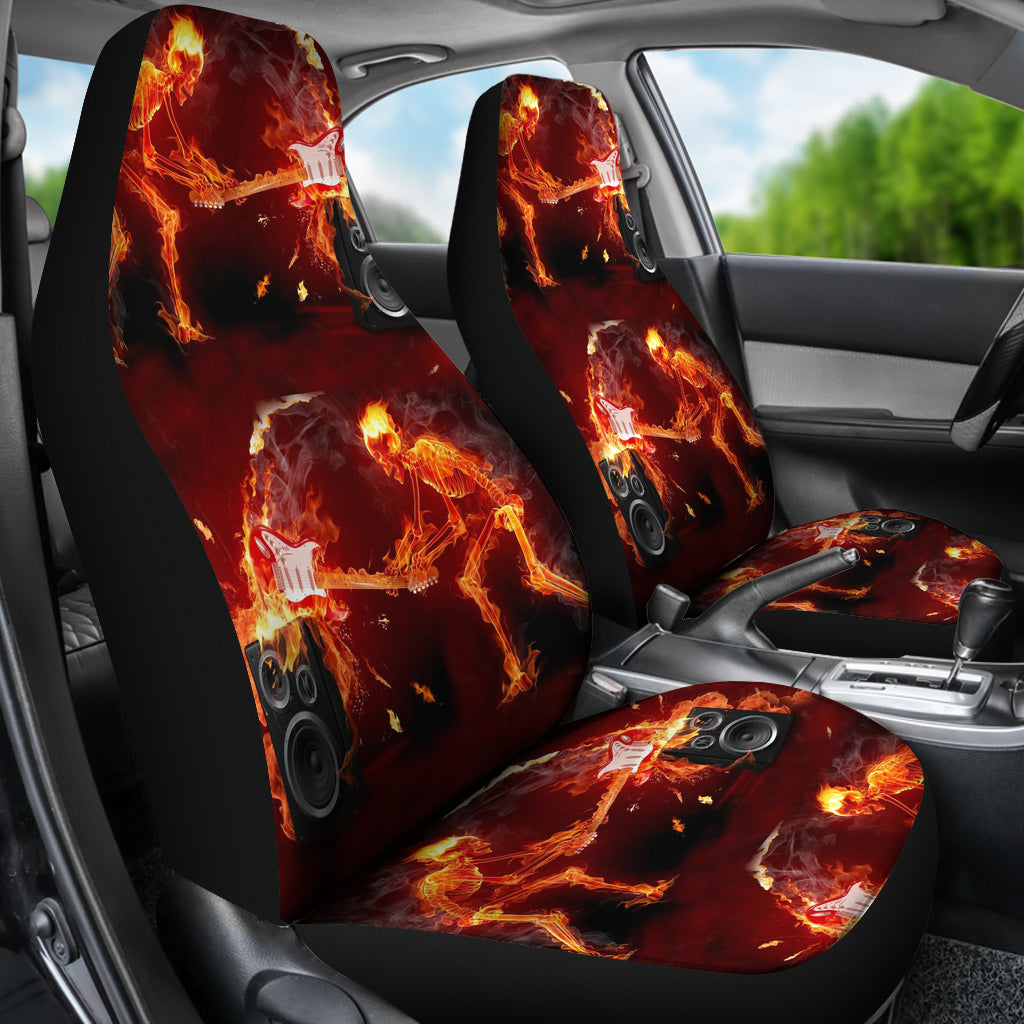 Set of 2 pcs - Skull Gothic Horror Flaming Fire Halloween skull car seat covers